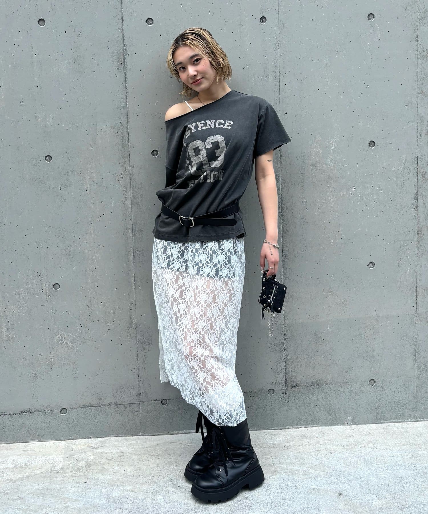 →トレンドのレースアイテムをレイヤードする事によって、一気に今年らしく着こなせます。
