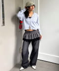 ・バンTやロゴTのカジュアルトップスに合わせて、甘辛ミックスコーデに!