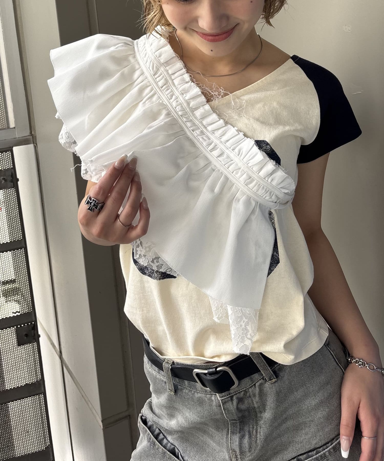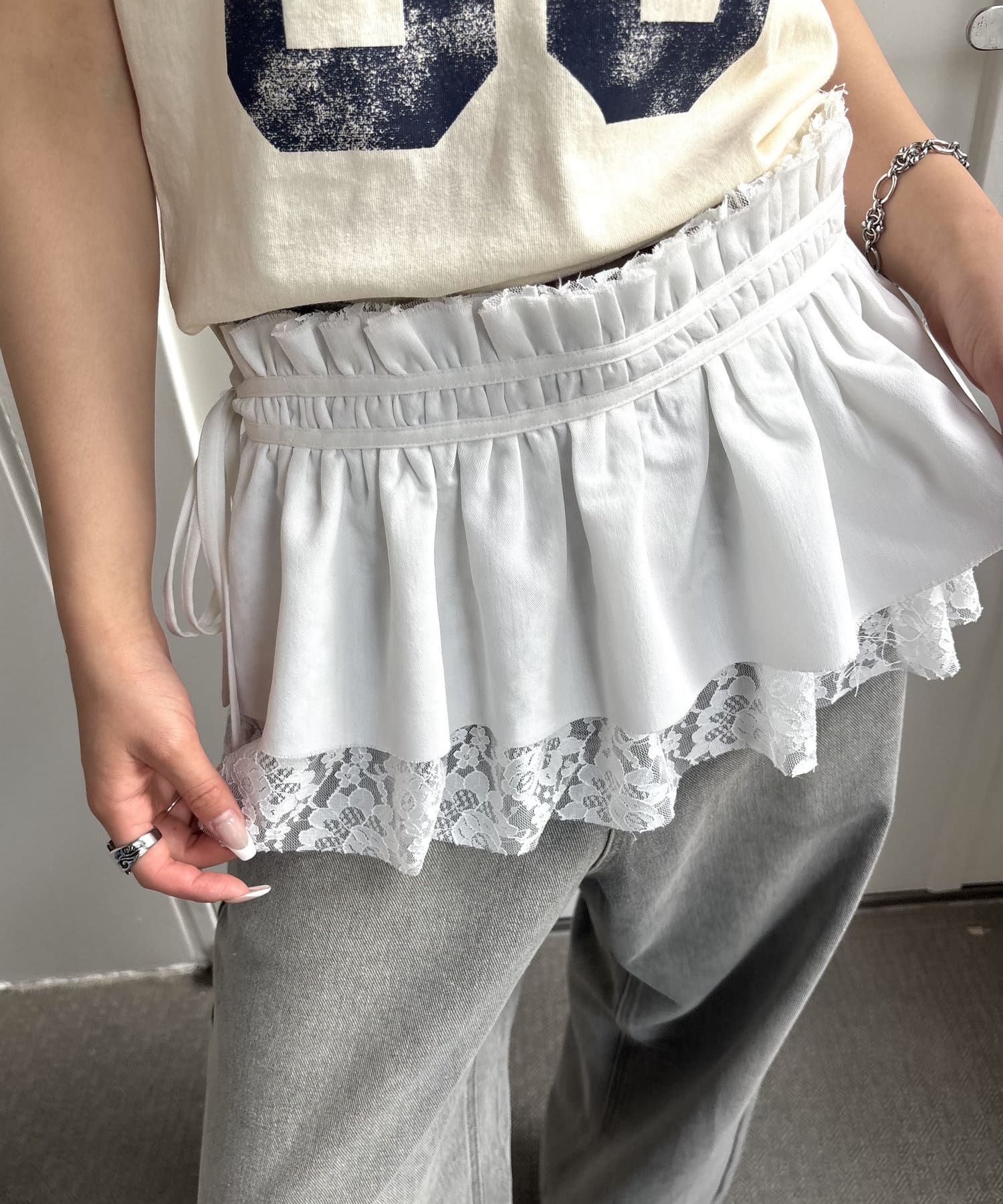TR素材とレースが合わさったレイヤードに大活躍の巻きベルト。