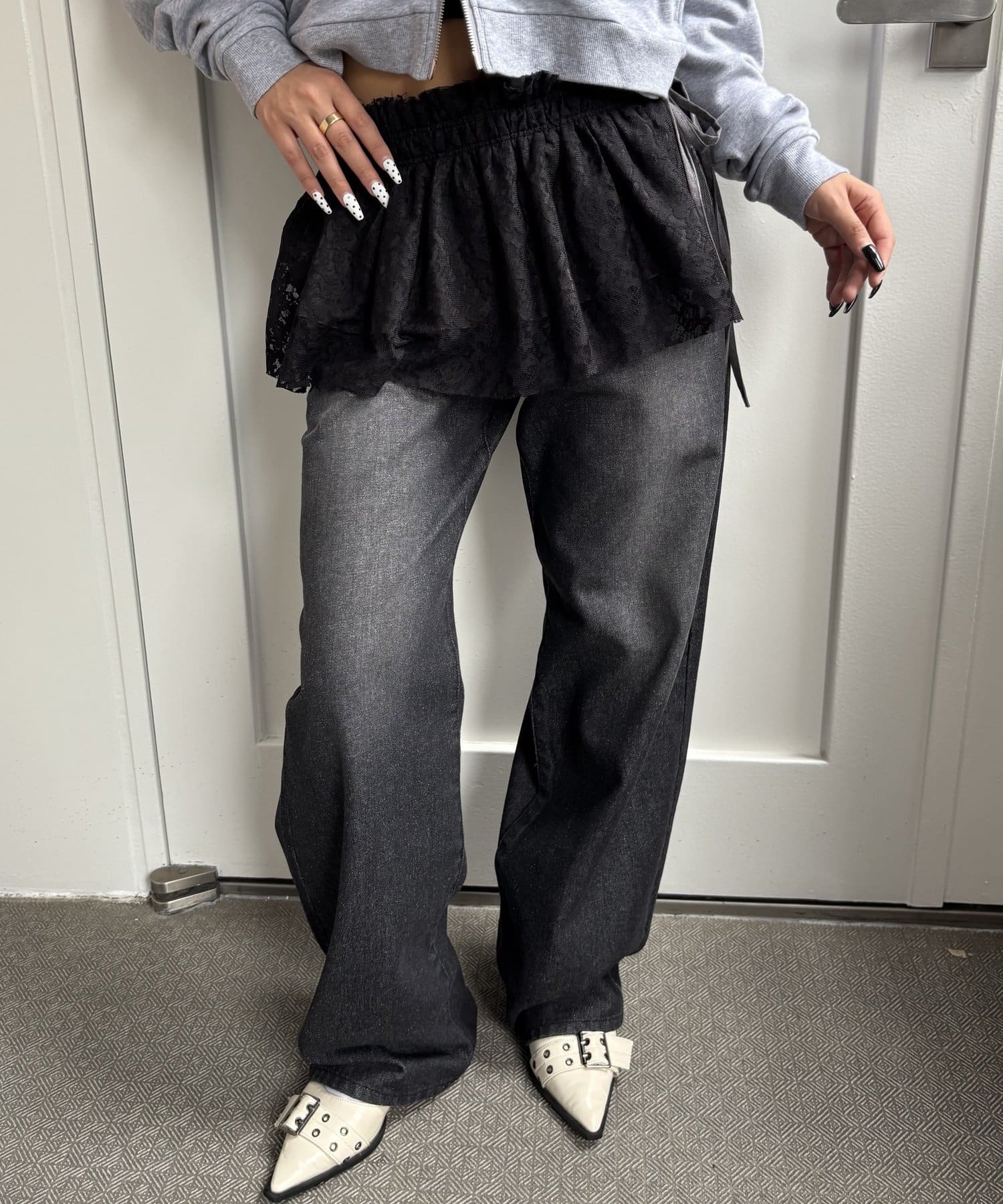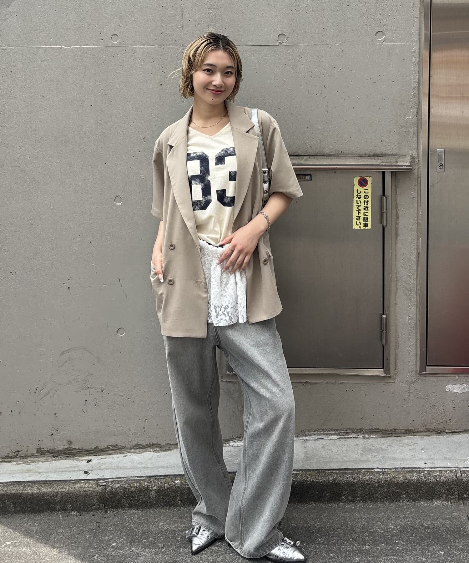 ・普段着ているデニムパンツにトップスのコーデにプラスして、トレンドコーデに!