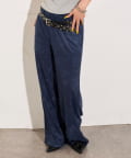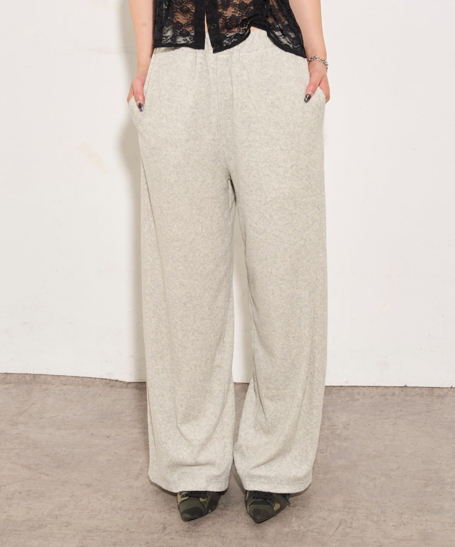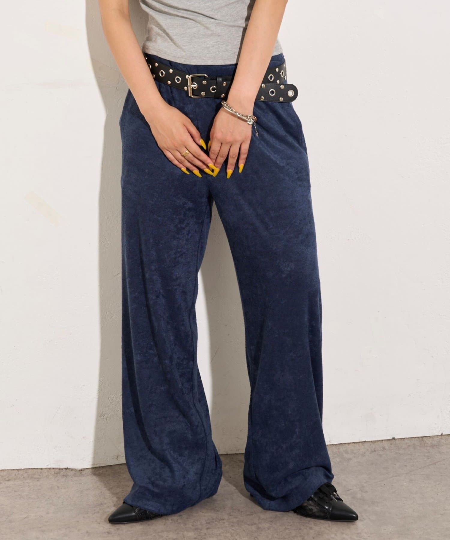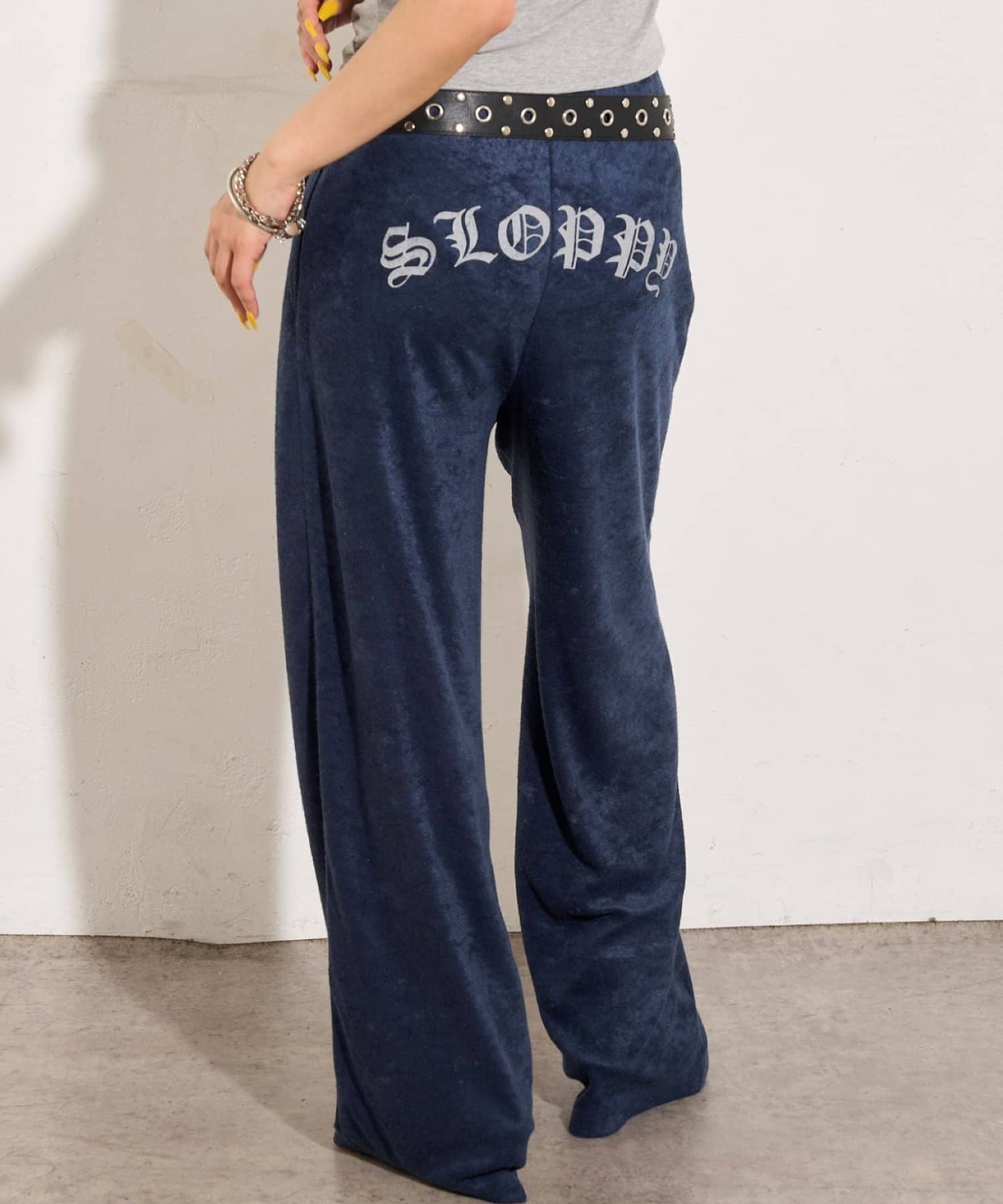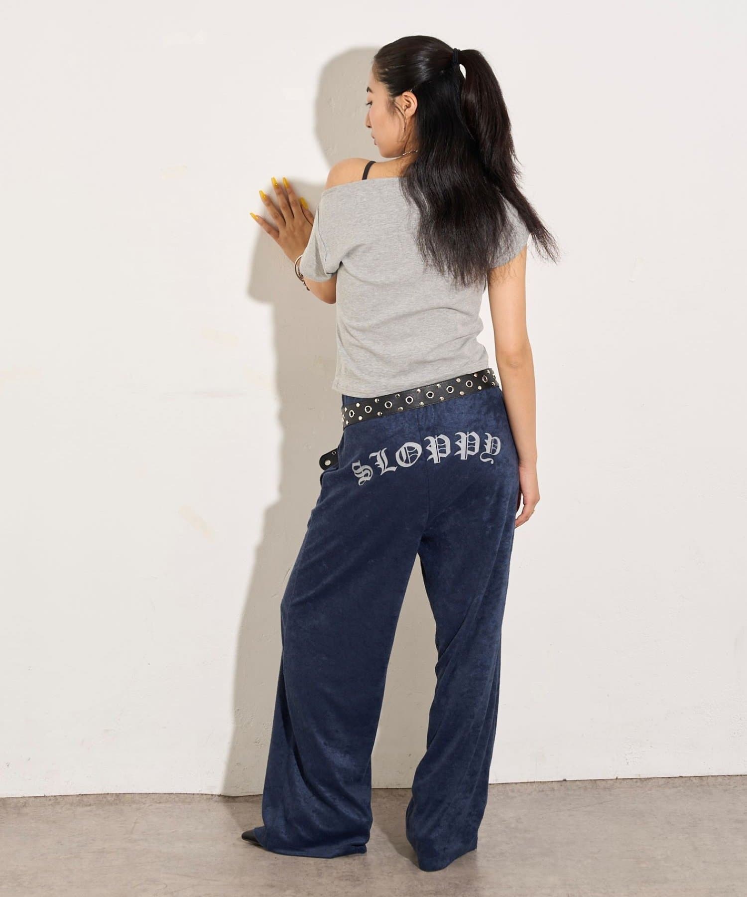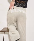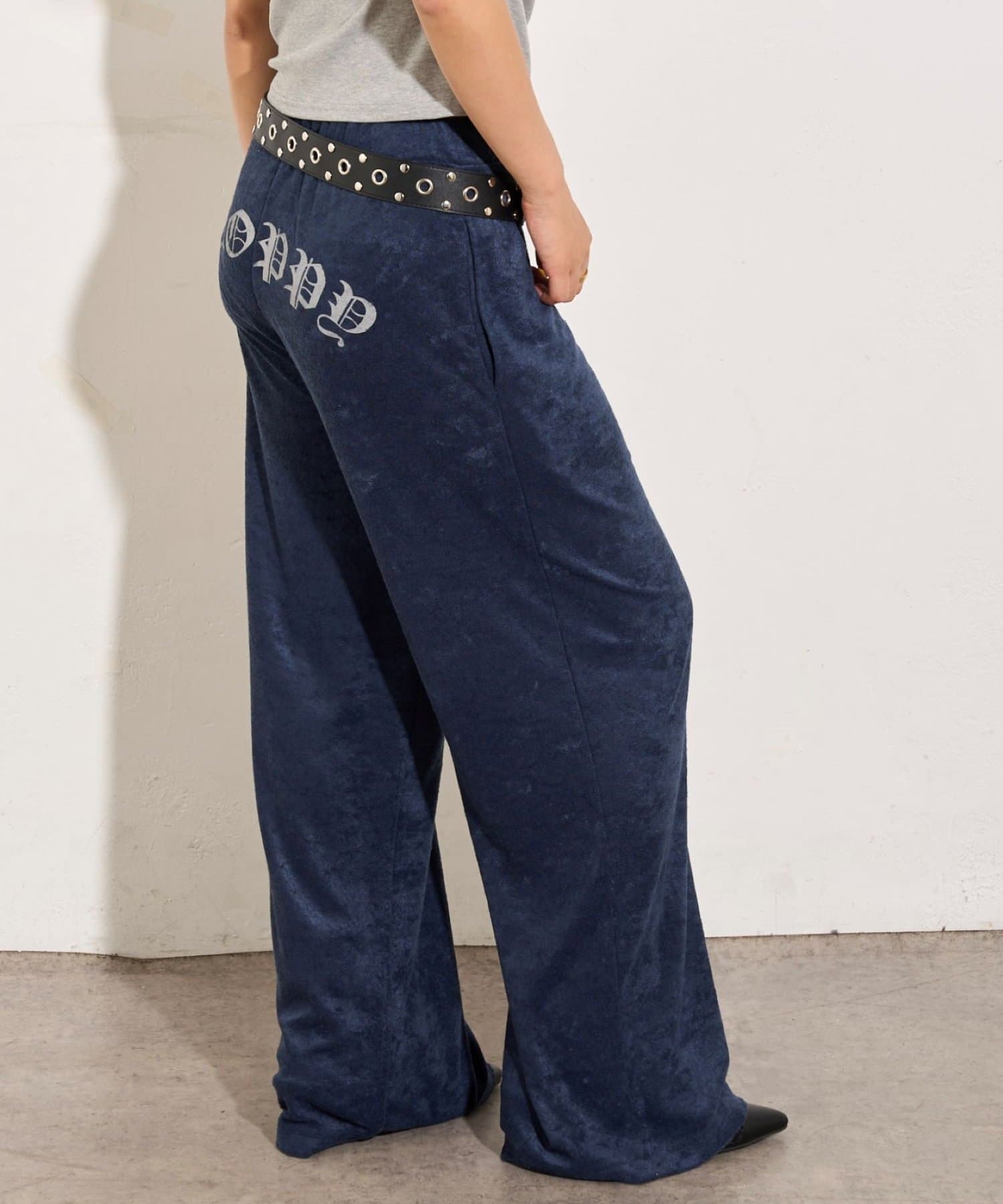 パイル素材で後ろのロゴが特徴のストレートパンツ。