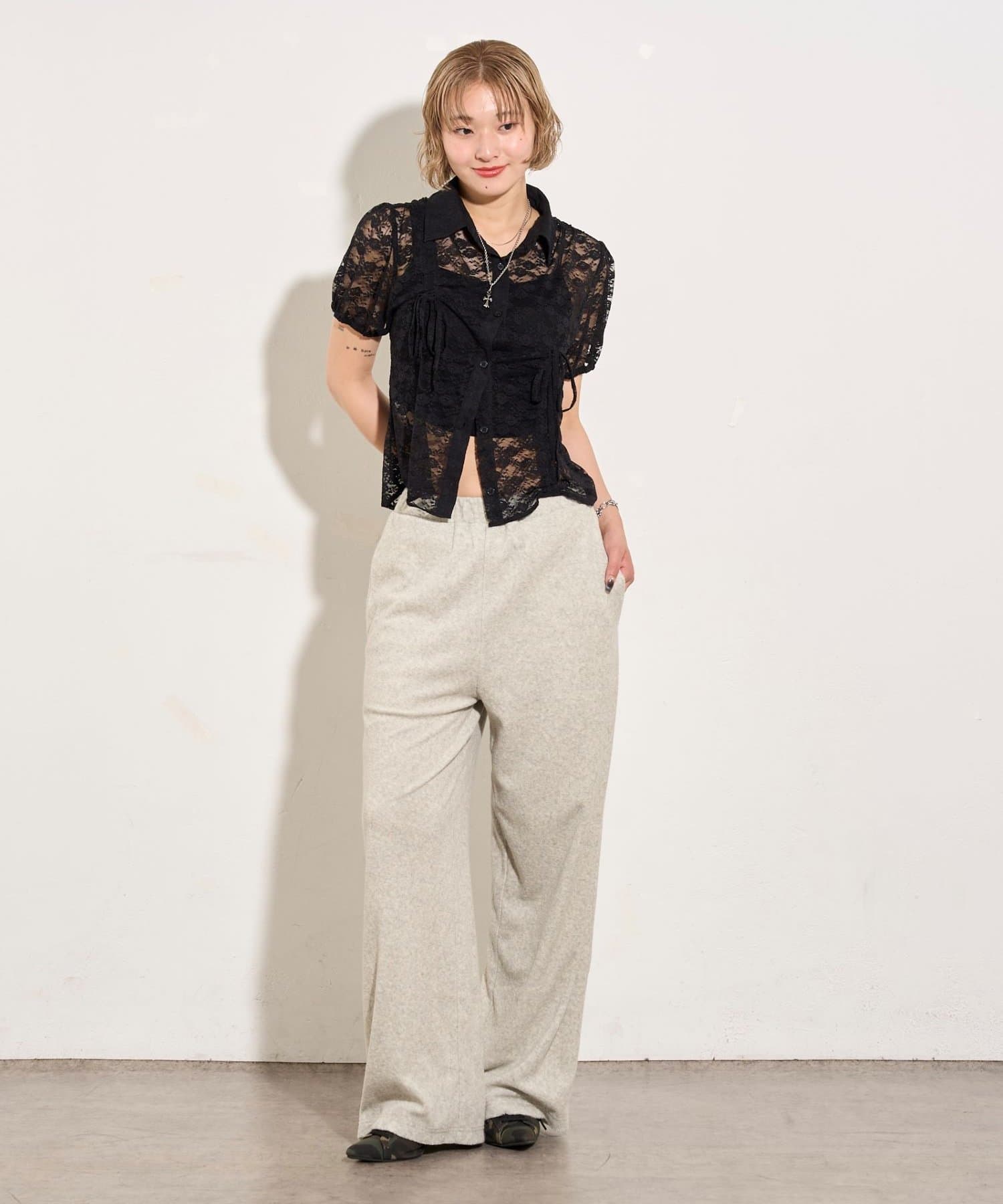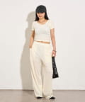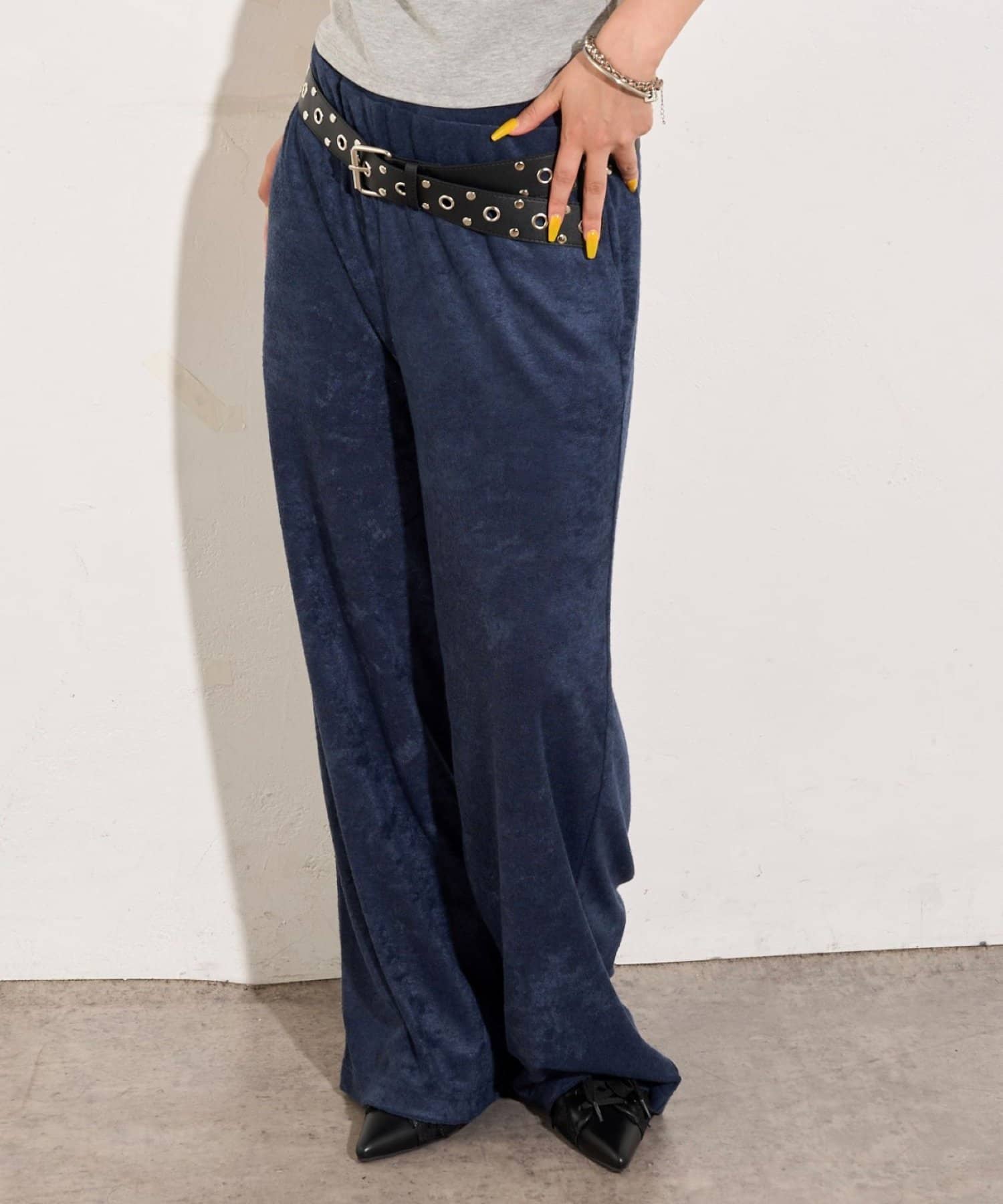 →パイル素材にラフさがあるので、綺麗めトップスと合わせてバランスを取るのがオススメです。