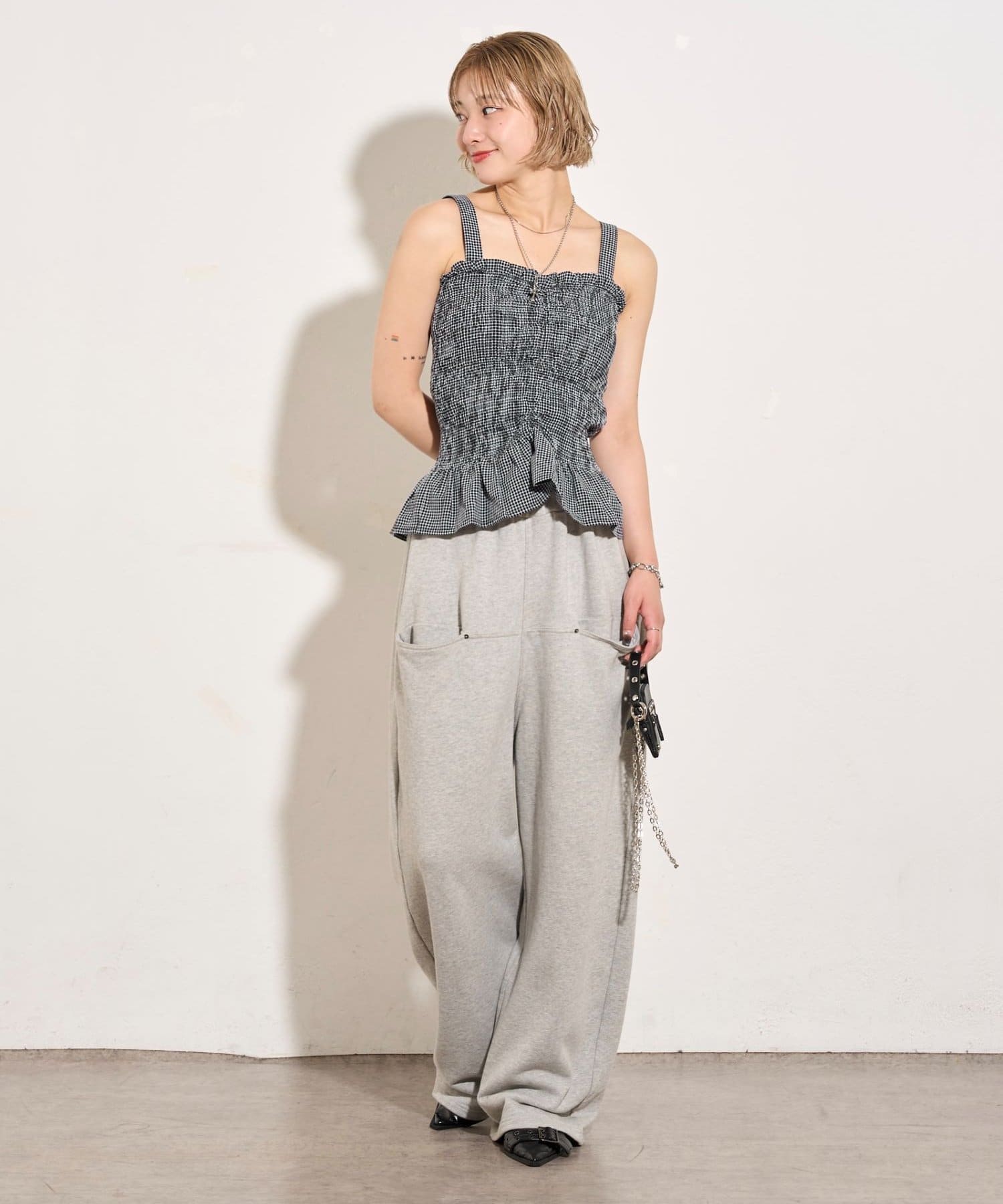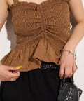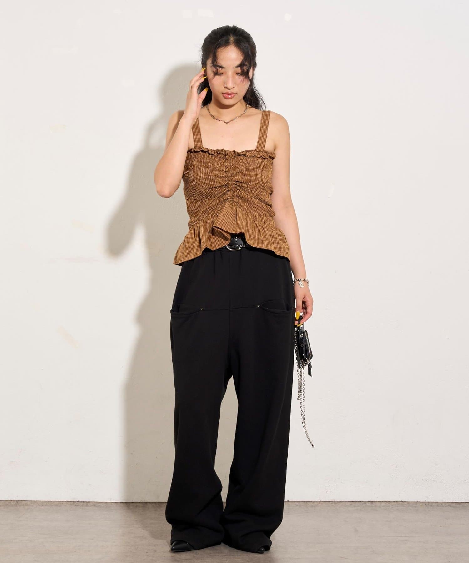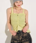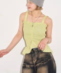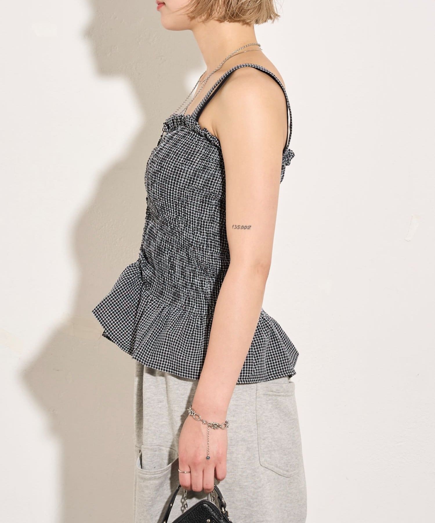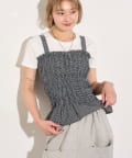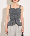 ・細かいギャザーのシャーリングがポイントのビスチェ。