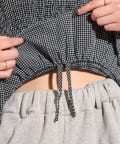 ・小さなチェック柄のデザインで、裾にフリルが付いているのもポイント。
