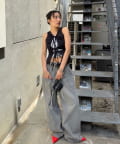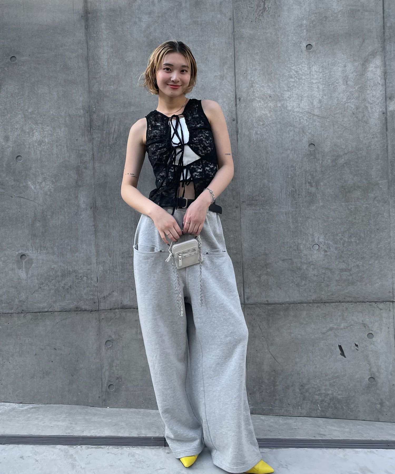 →スウェットパンツのラフさに、ジレのバランスが今季らしいオシャレな印象になります。