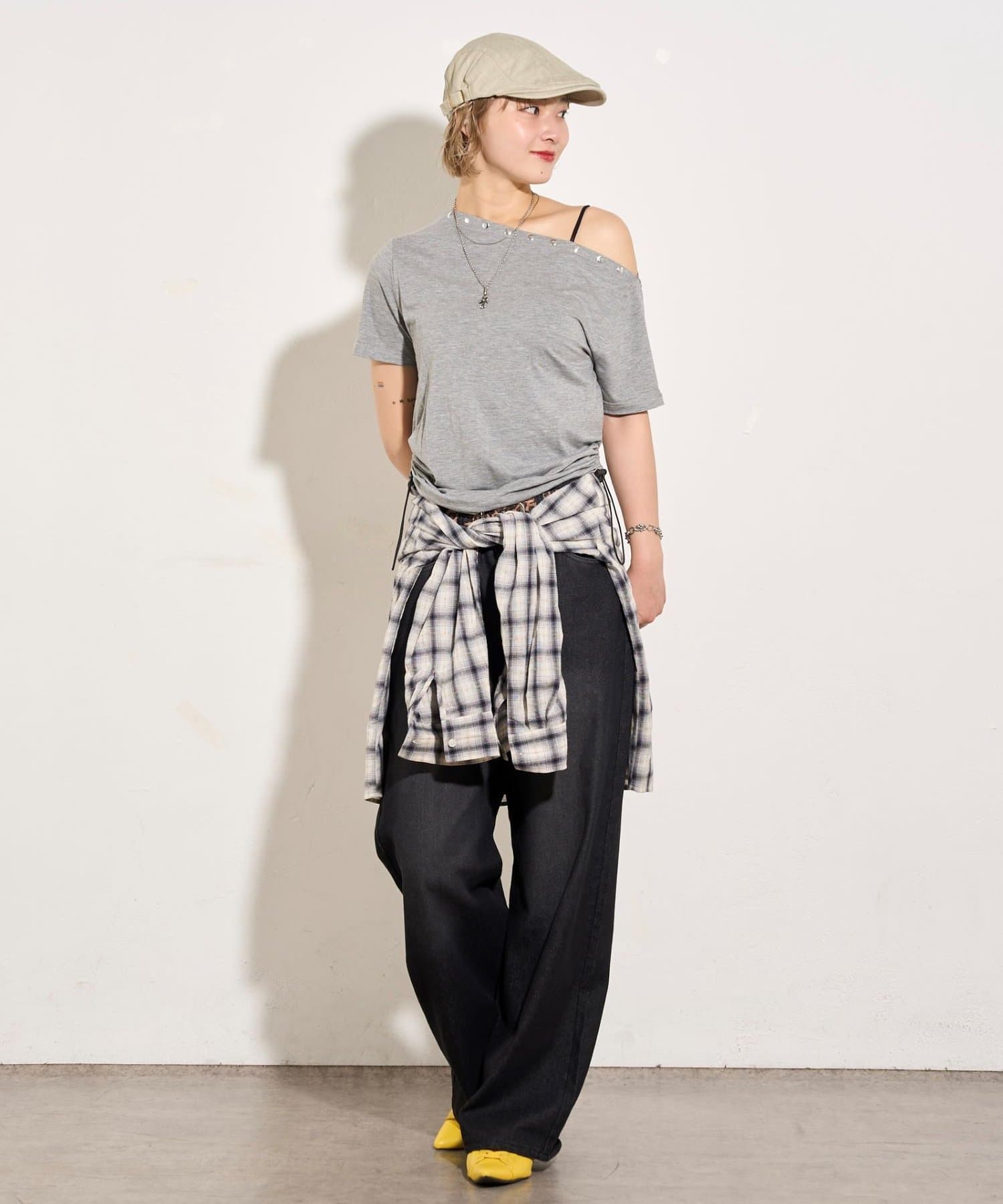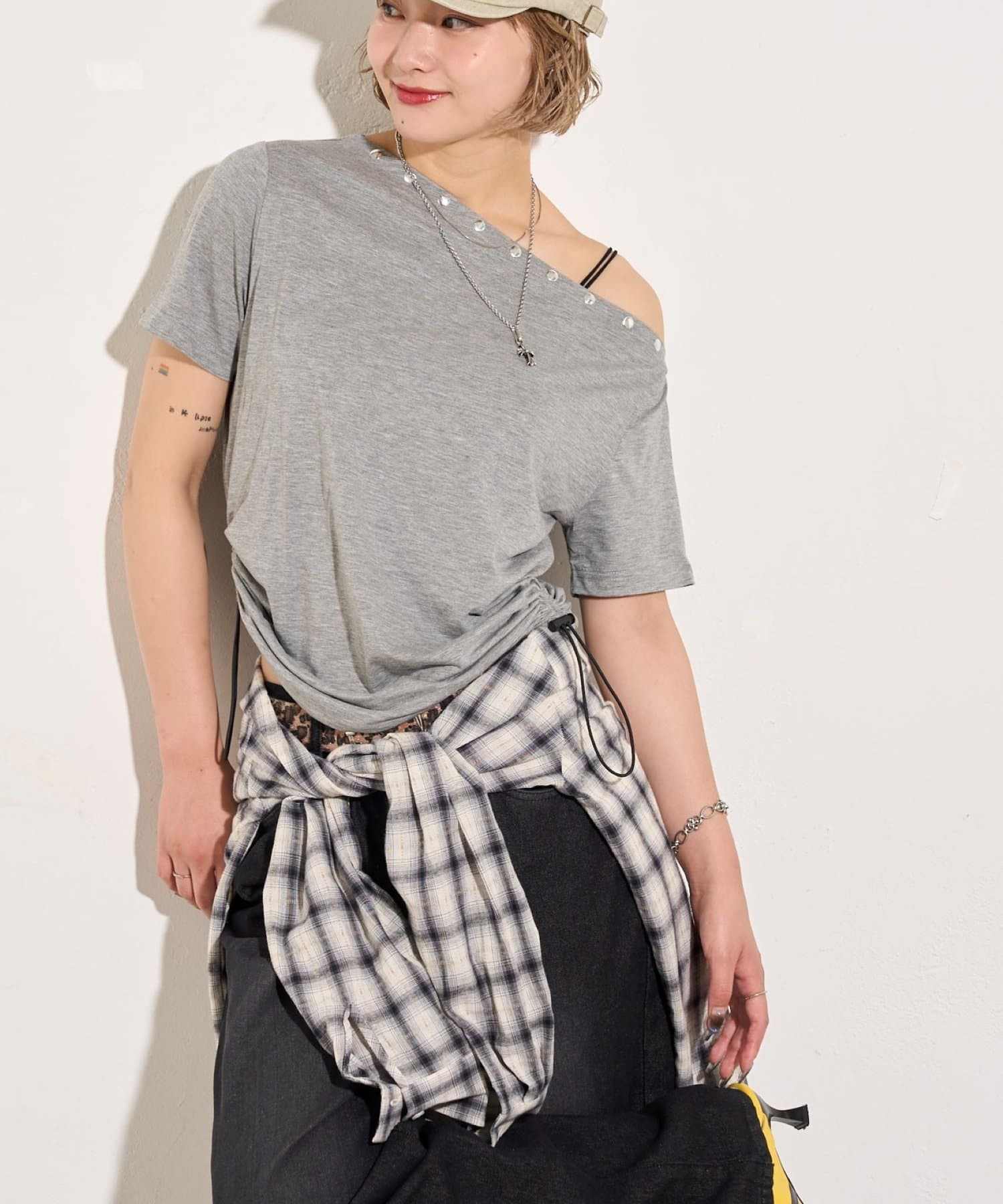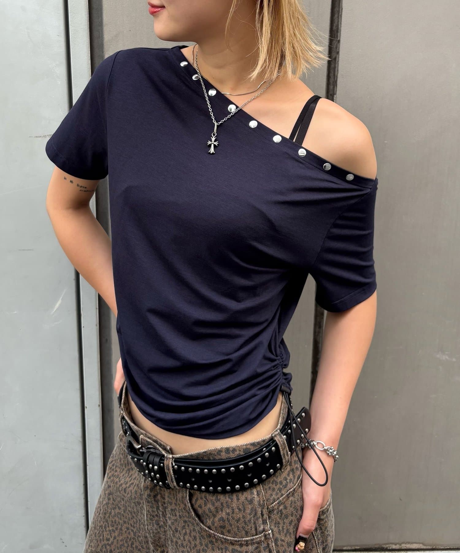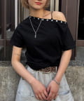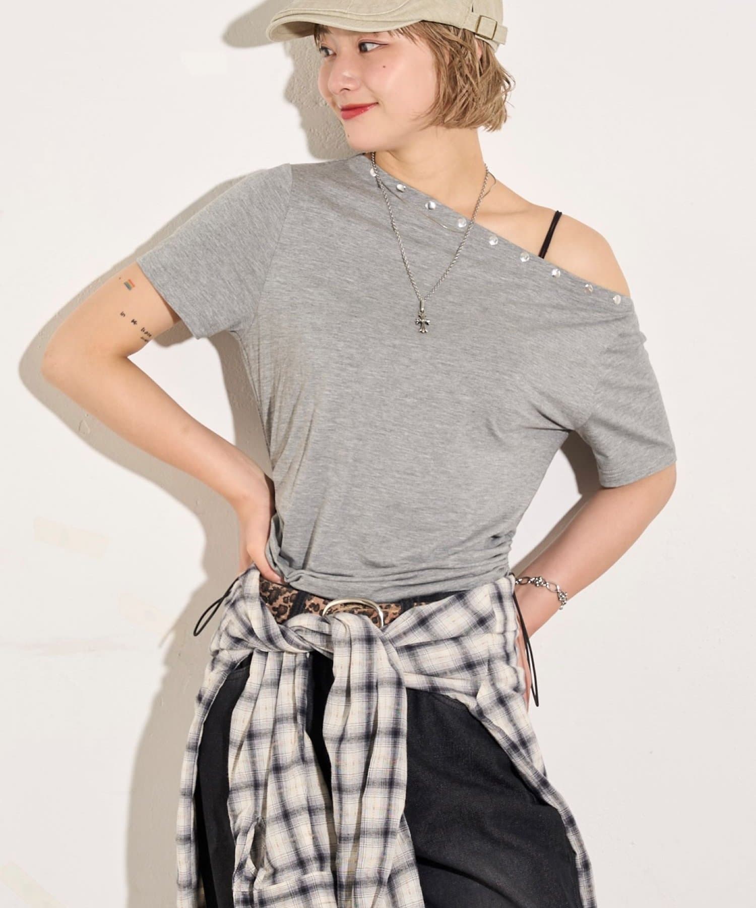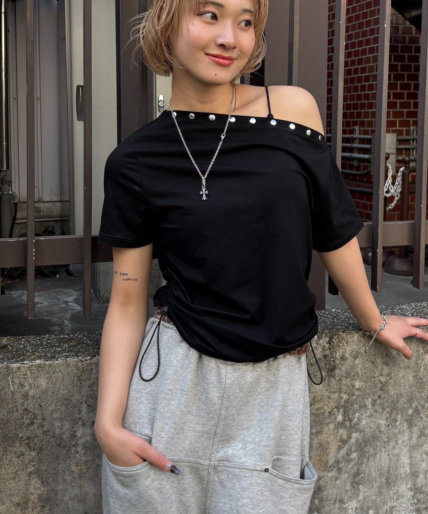 TOP > WHO’S WHO gallery > レディース > トップス > Tシャツ/カットソー > ワンオフショルスタッズドロストTEE