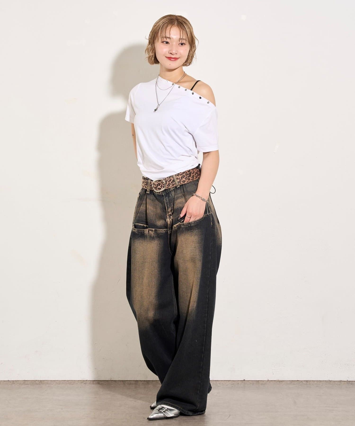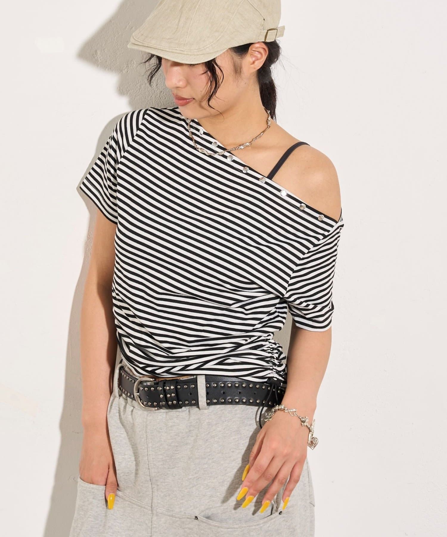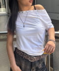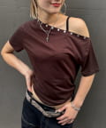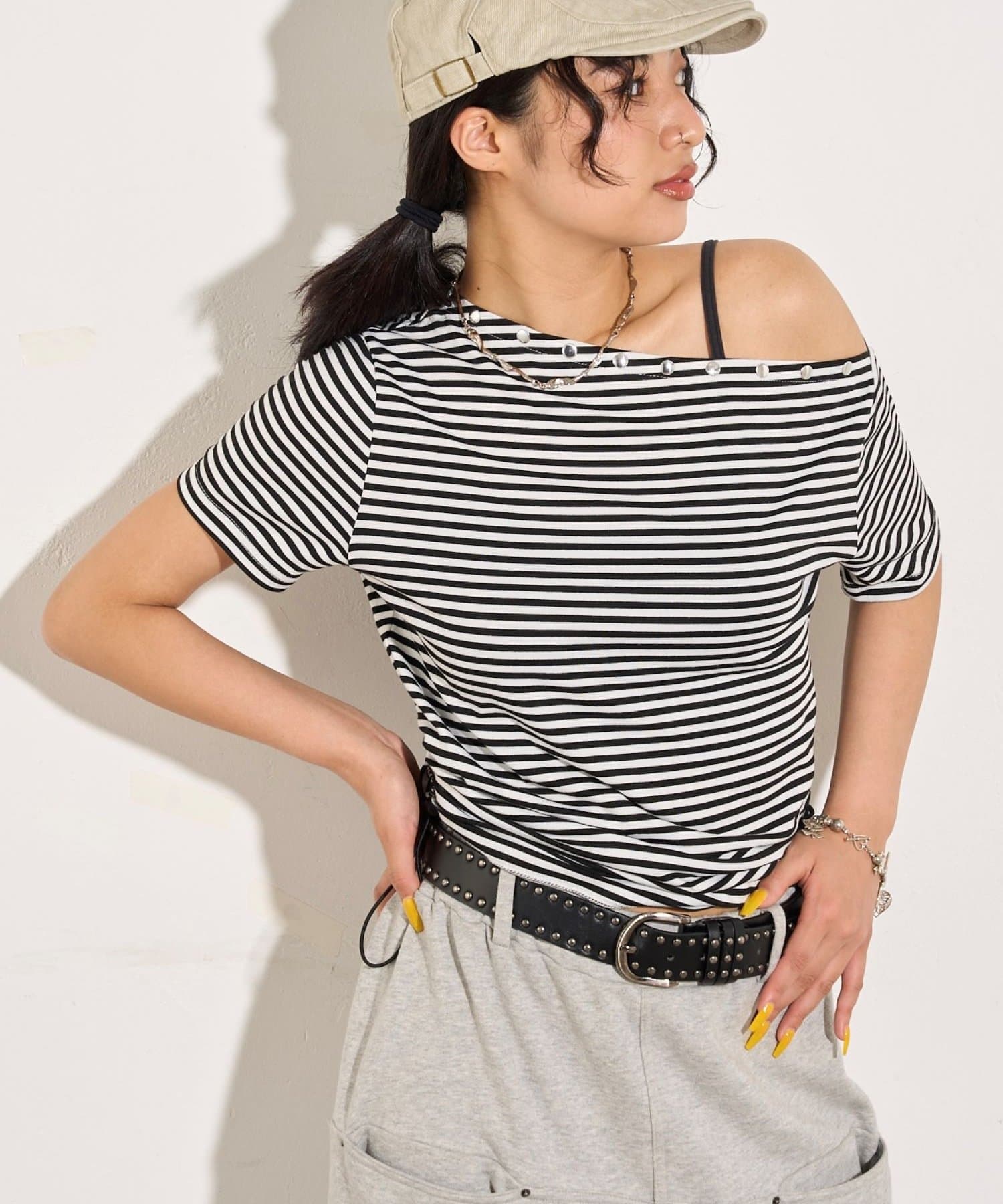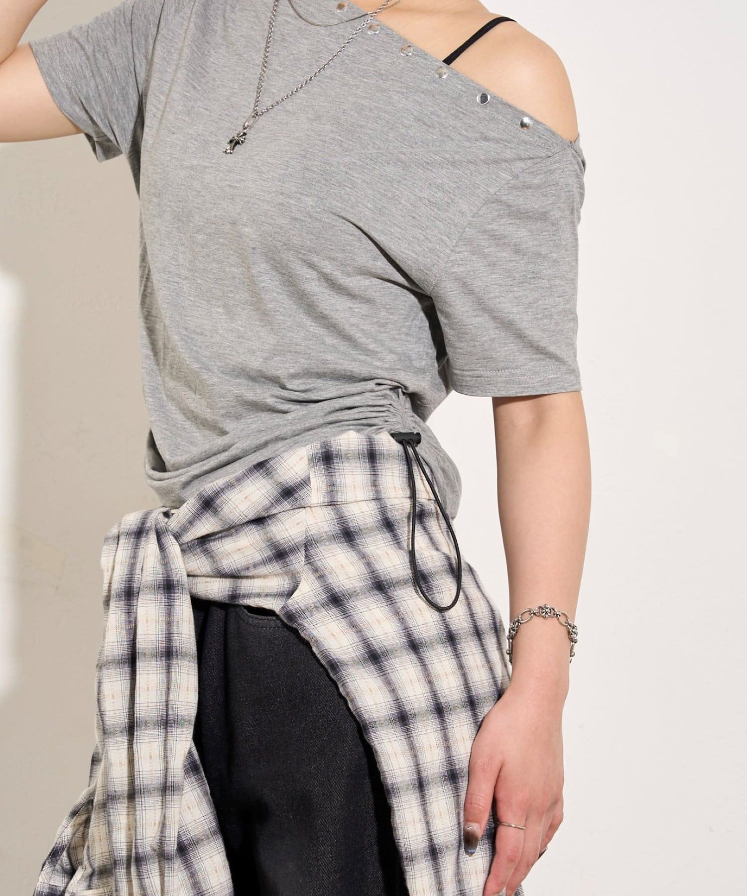 TOP > WHO’S WHO gallery > レディース > トップス > Tシャツ/カットソー > ワンオフショルスタッズドロストTEE