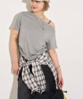 少し肩が出ていてもヘルシーに見える素敵なティーシャツでした。高身長でも丈も大丈夫でした。