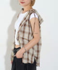 【WHO'S WHO gallery】チェックノースリーブフードシャツ