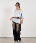 ロングパンツと合わせて、レイヤード風スタイルに。