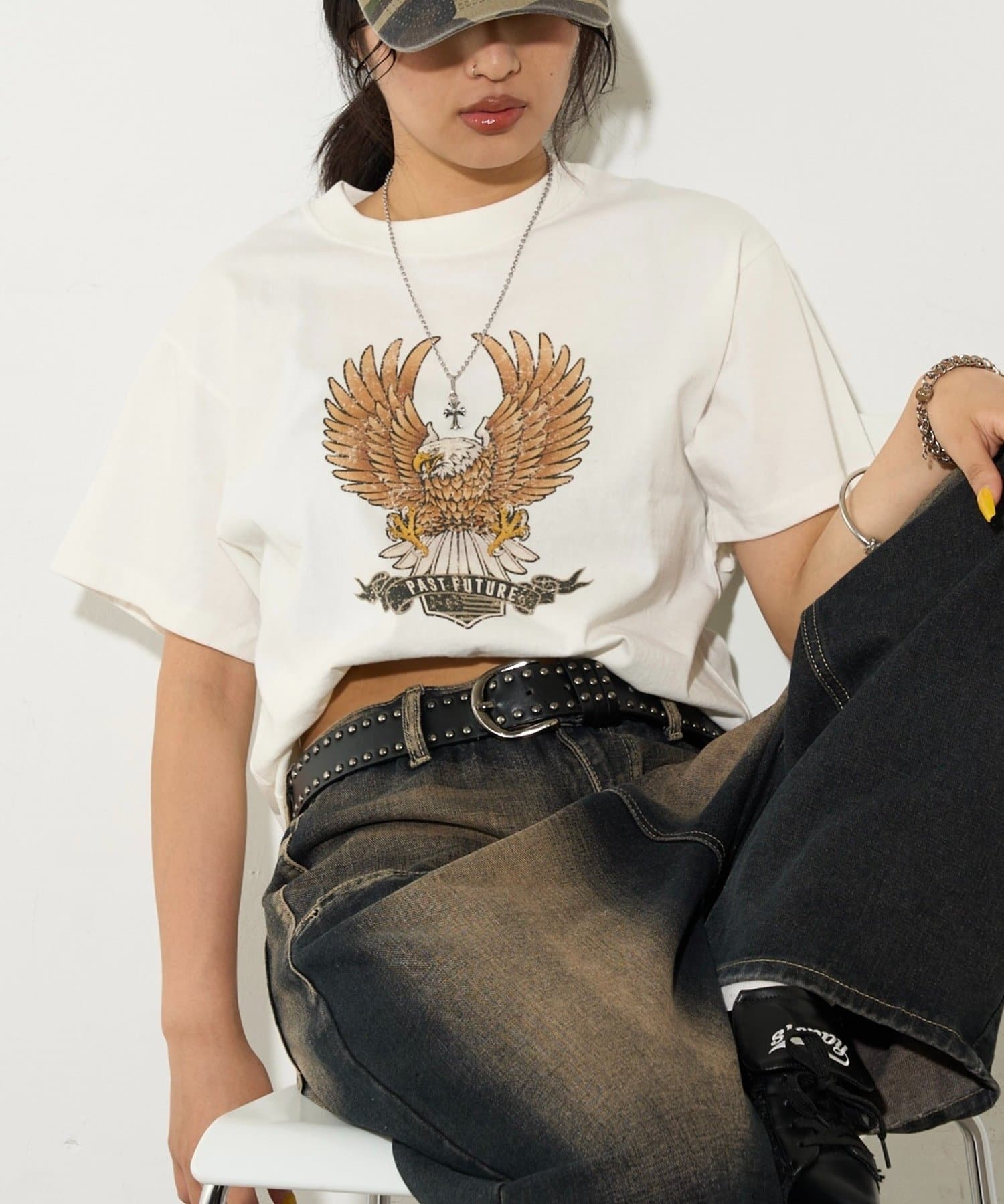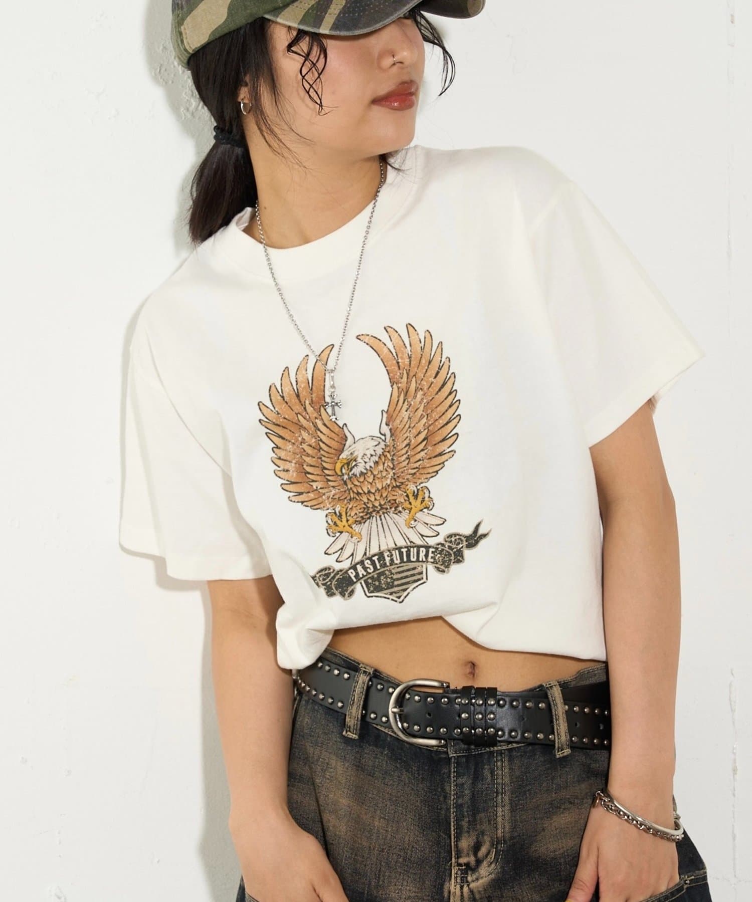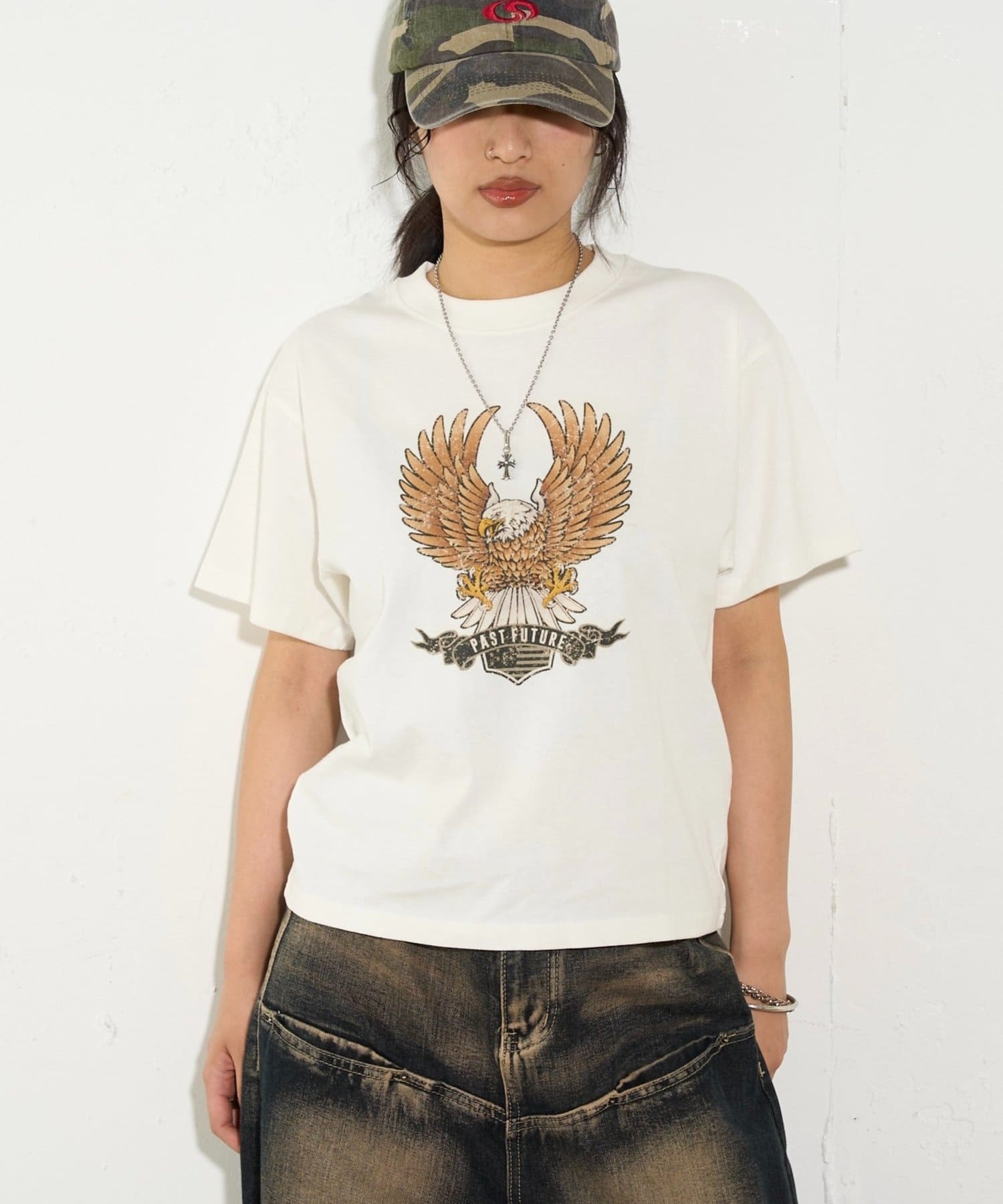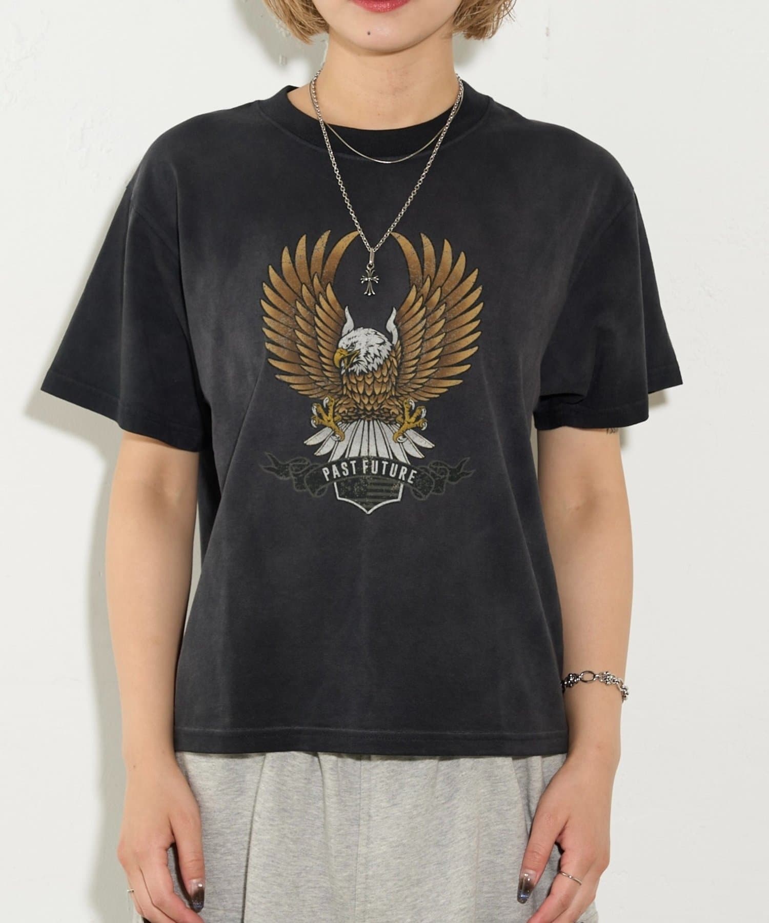 ・イーグルがデザインされた古着感漂う半袖TEE。
