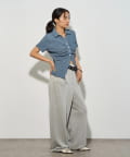 →大人っぽさのある半袖シャツにスウェットパンツを合わせるこのバランスが今年っぽいスタイルになります。
