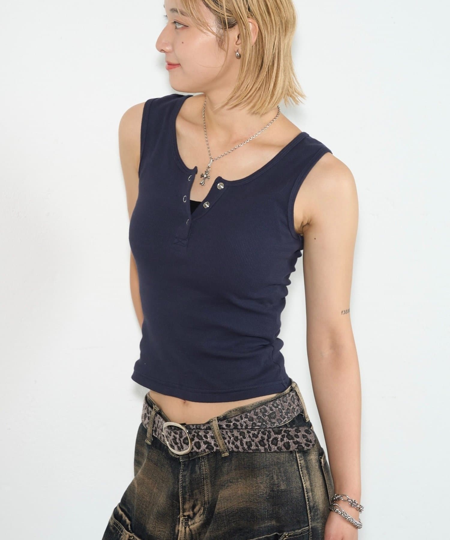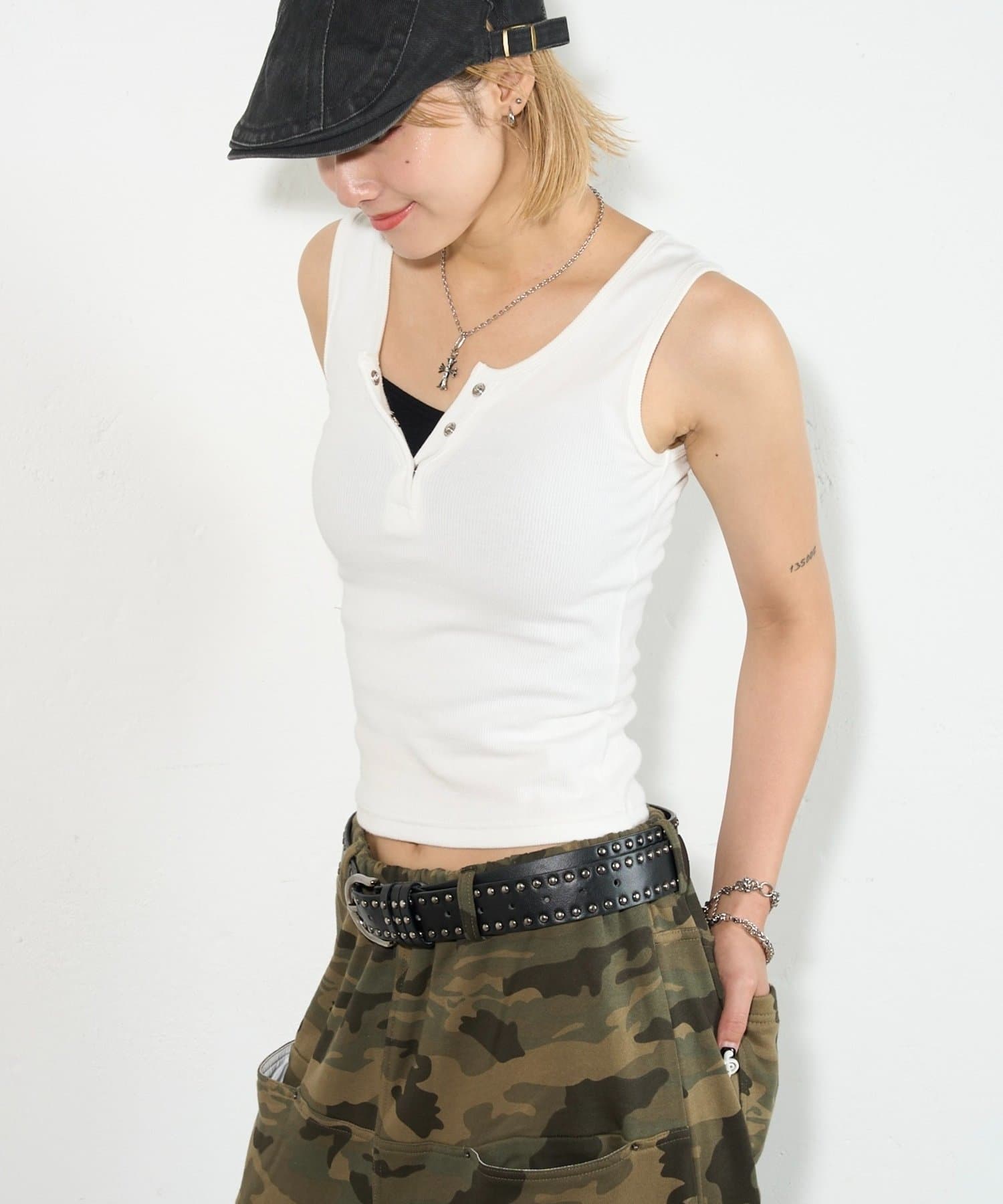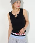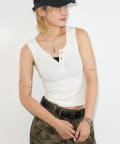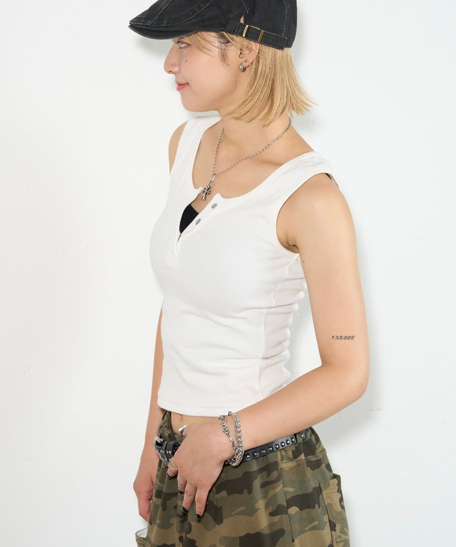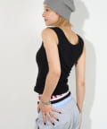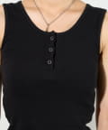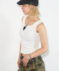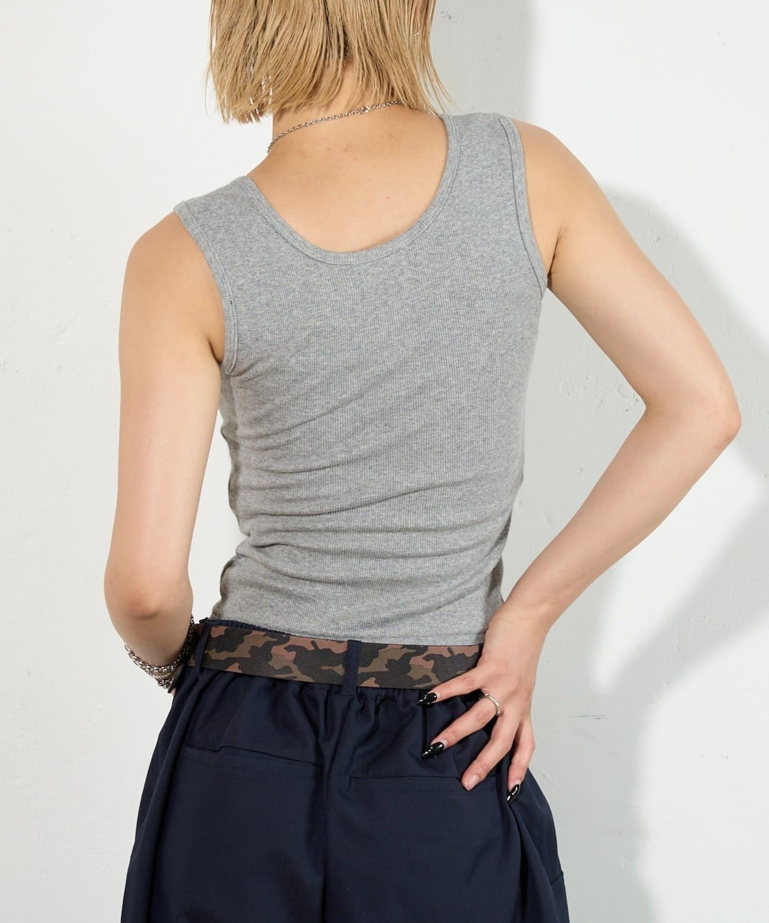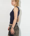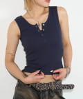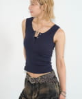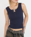 ・リングドットを少し開けると抜け感が出て、こなれ感を演出してくれるタンクトップ。