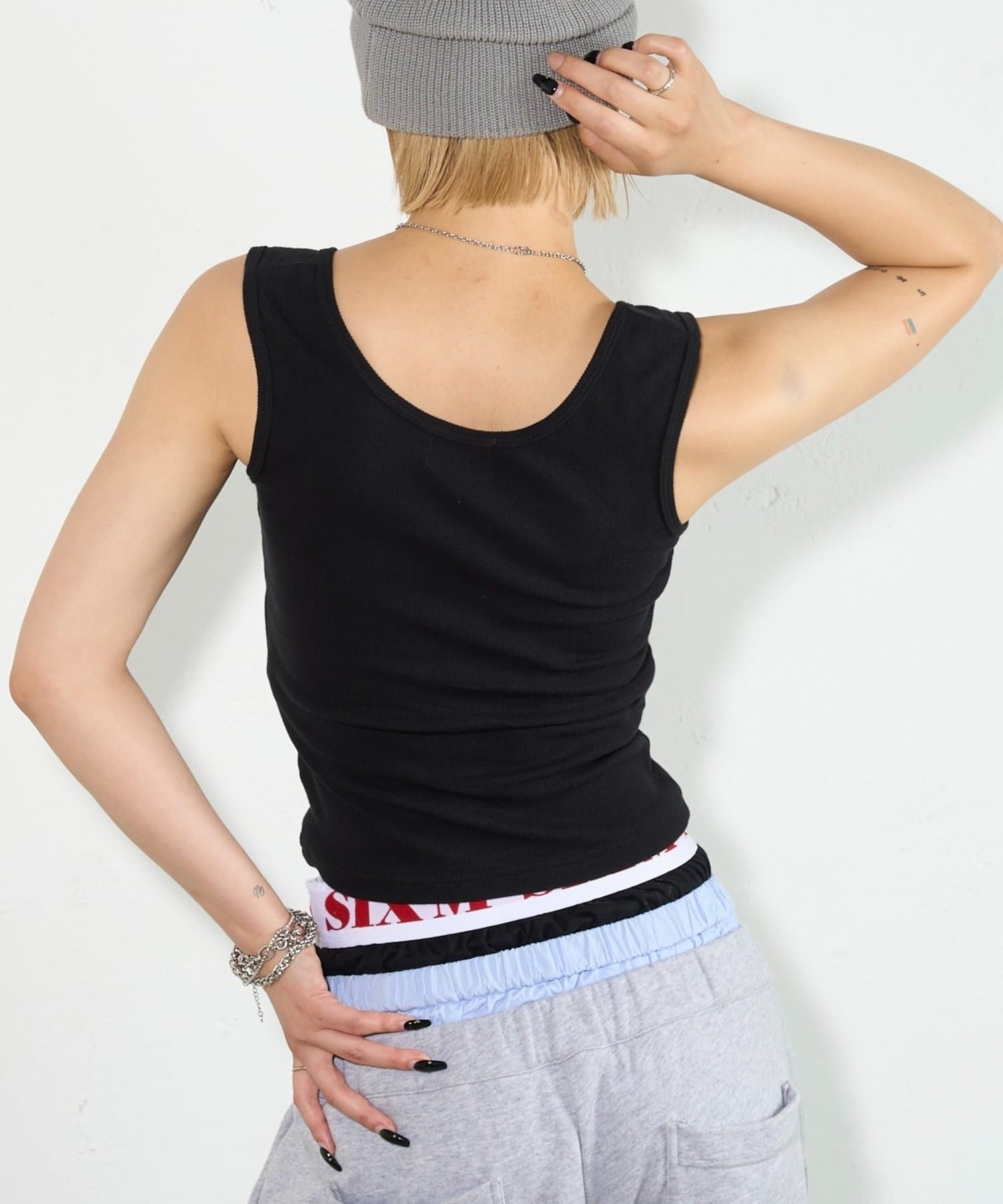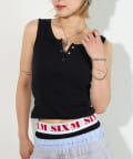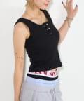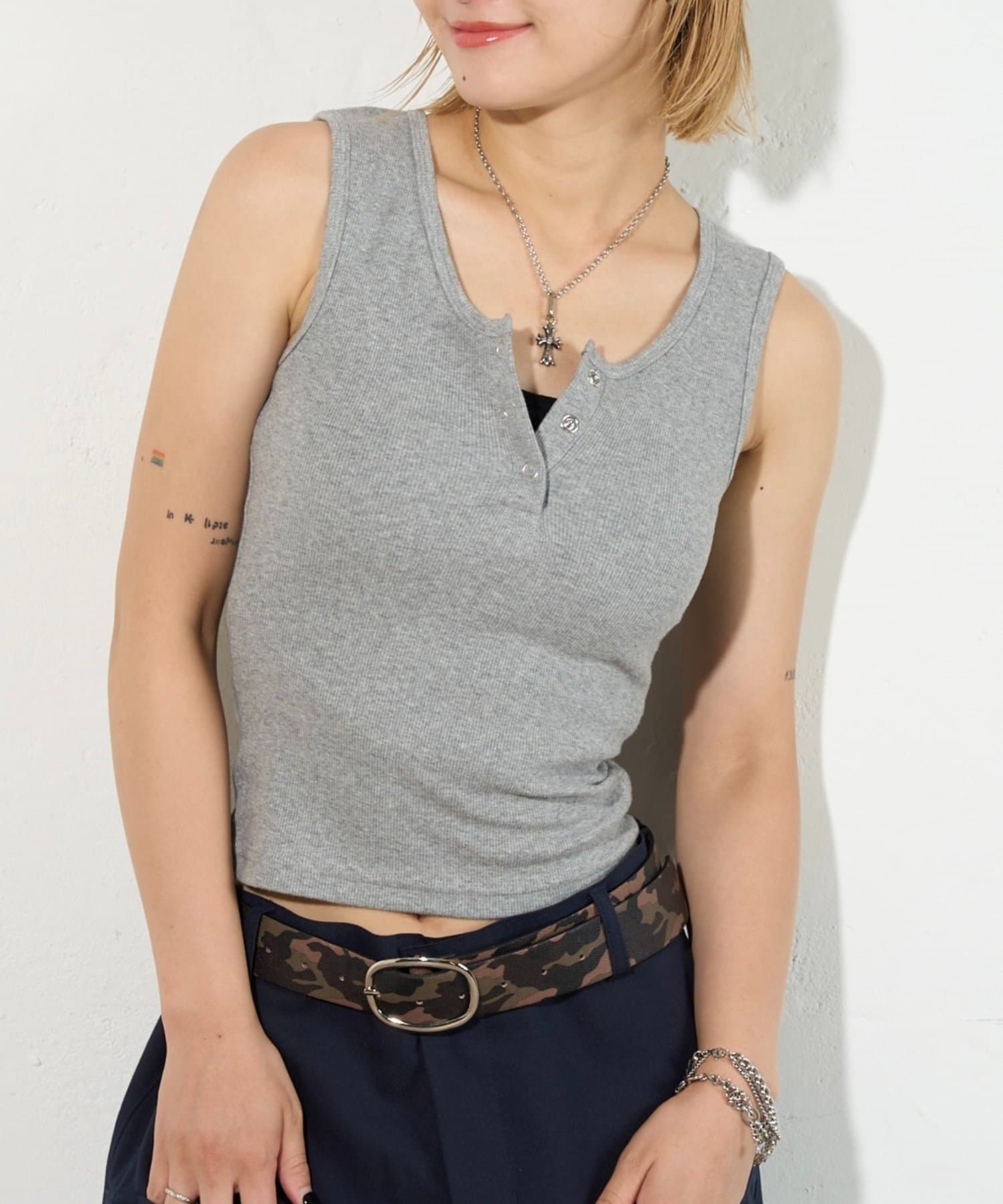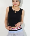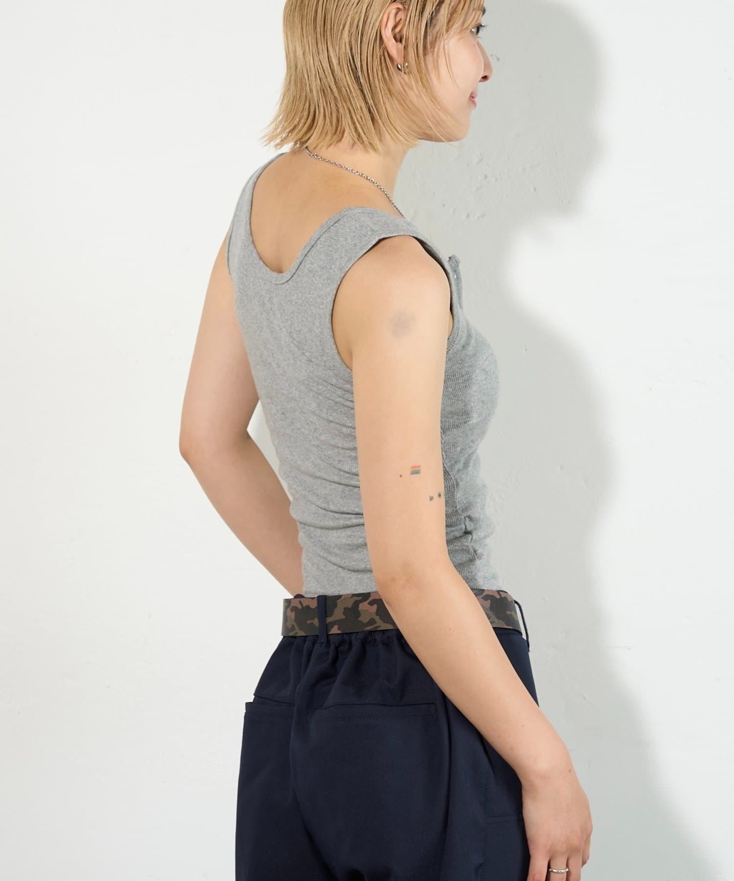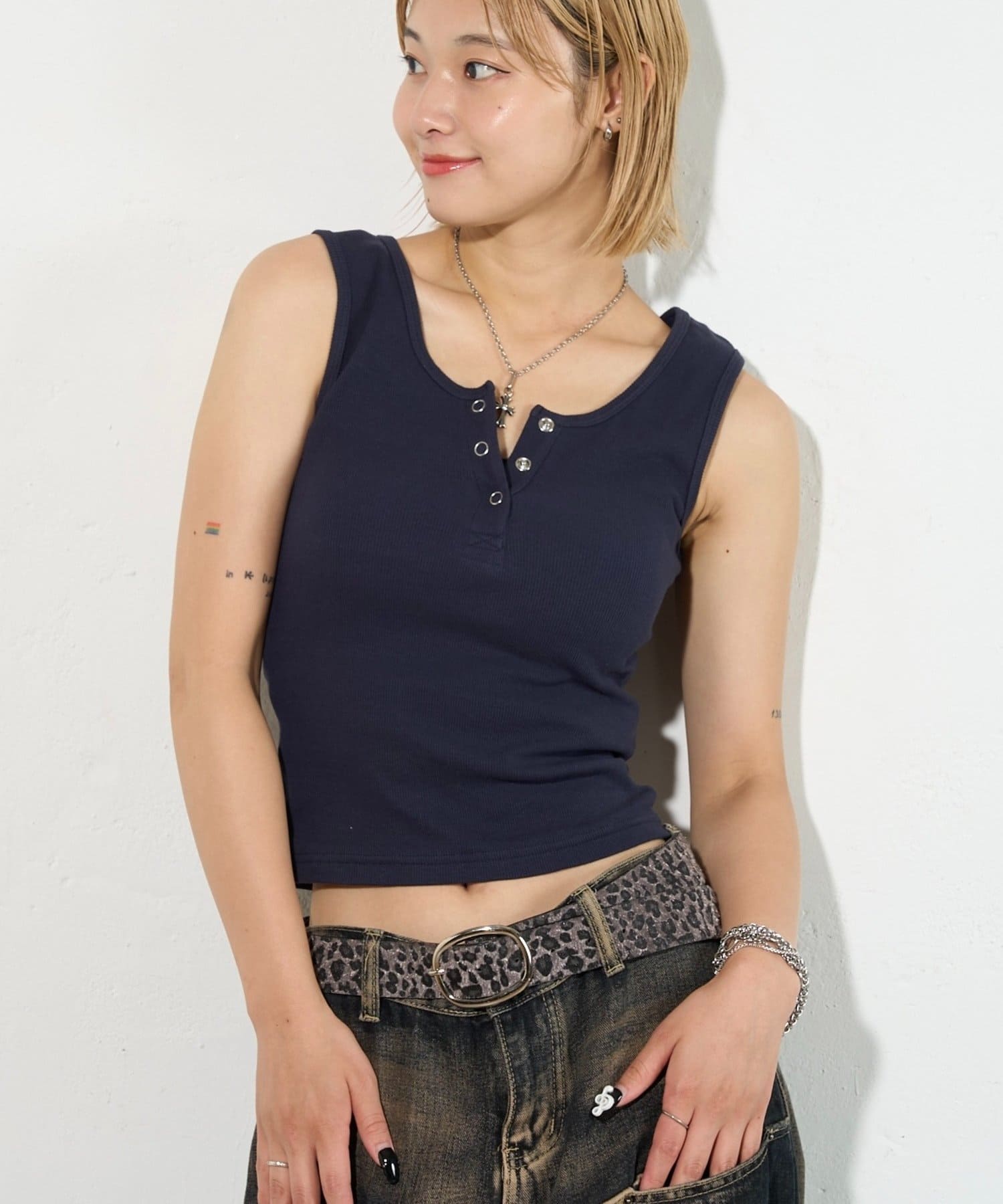 ・リングドットを少し開けると抜け感が出て、こなれ感を演出してくれるタンクトップ。