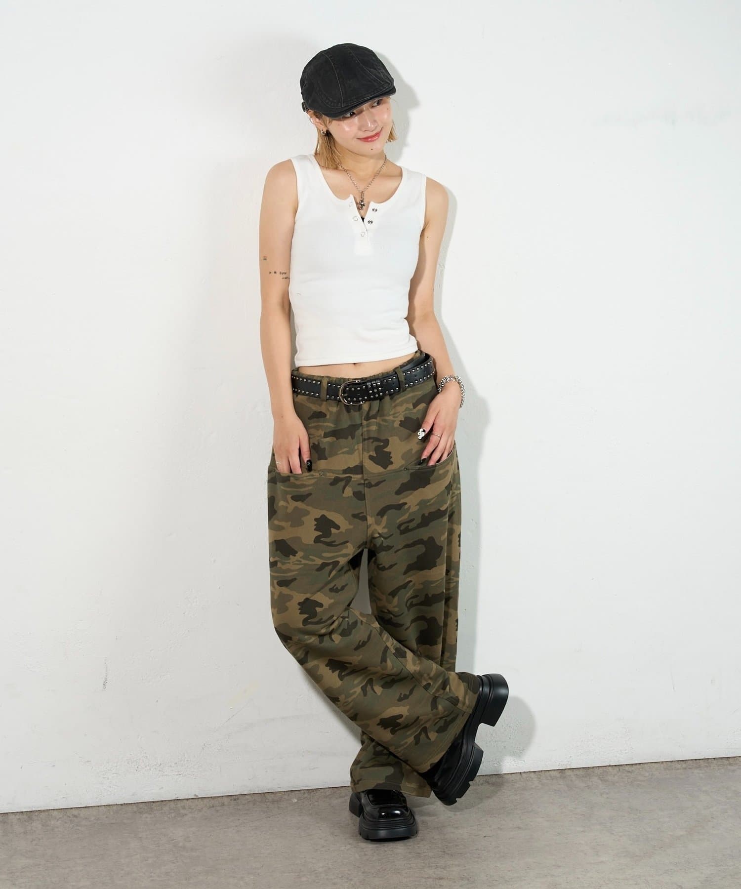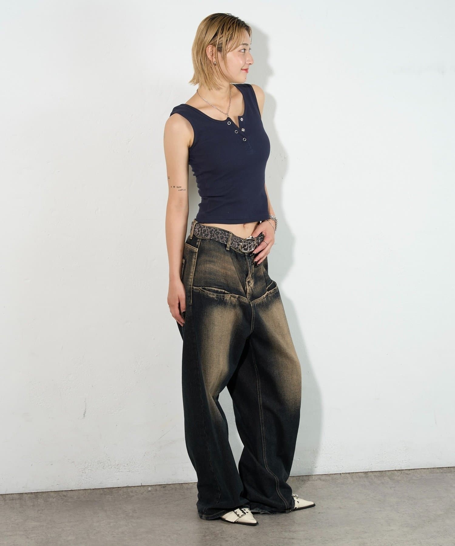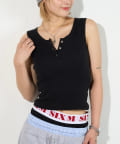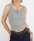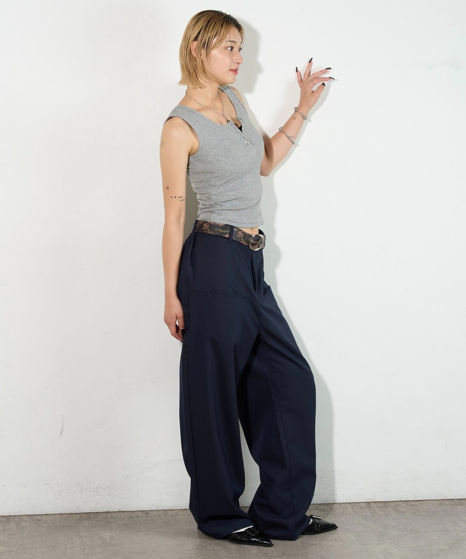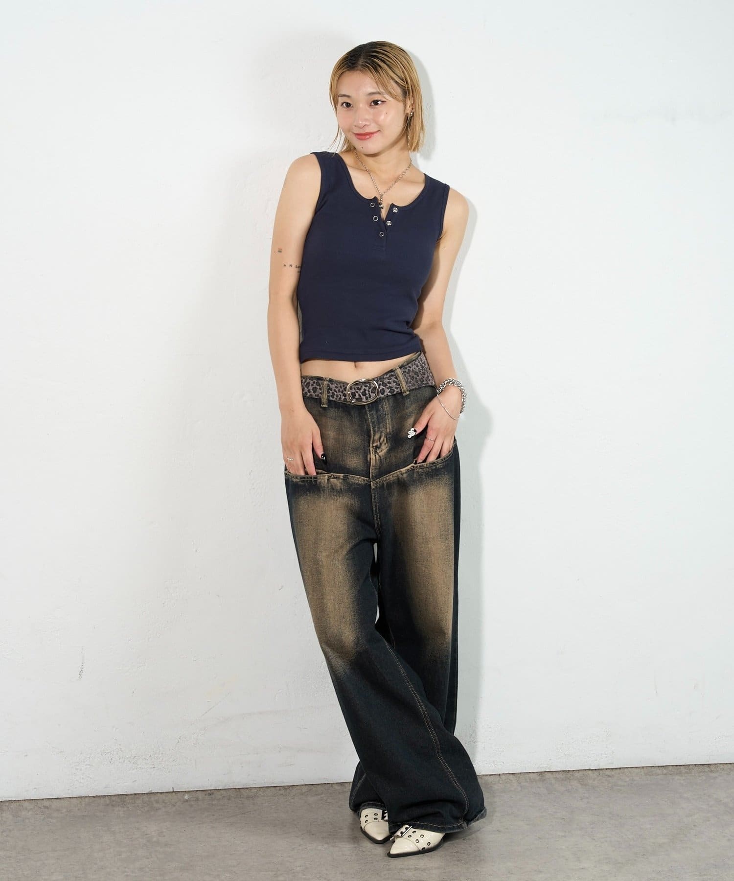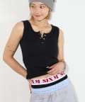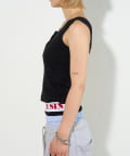 ・リングドットを少し開けると抜け感が出て、こなれ感を演出してくれるタンクトップ。