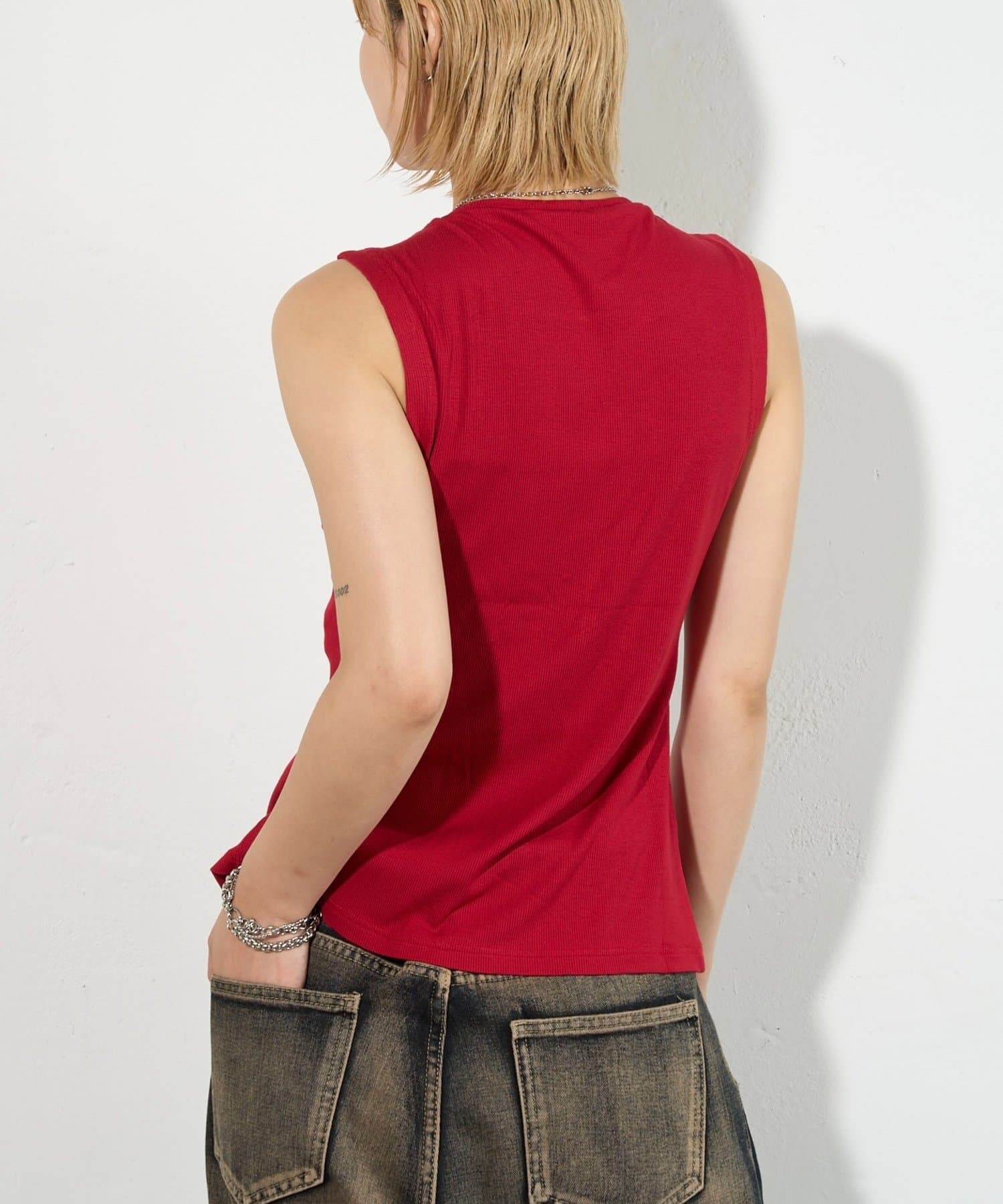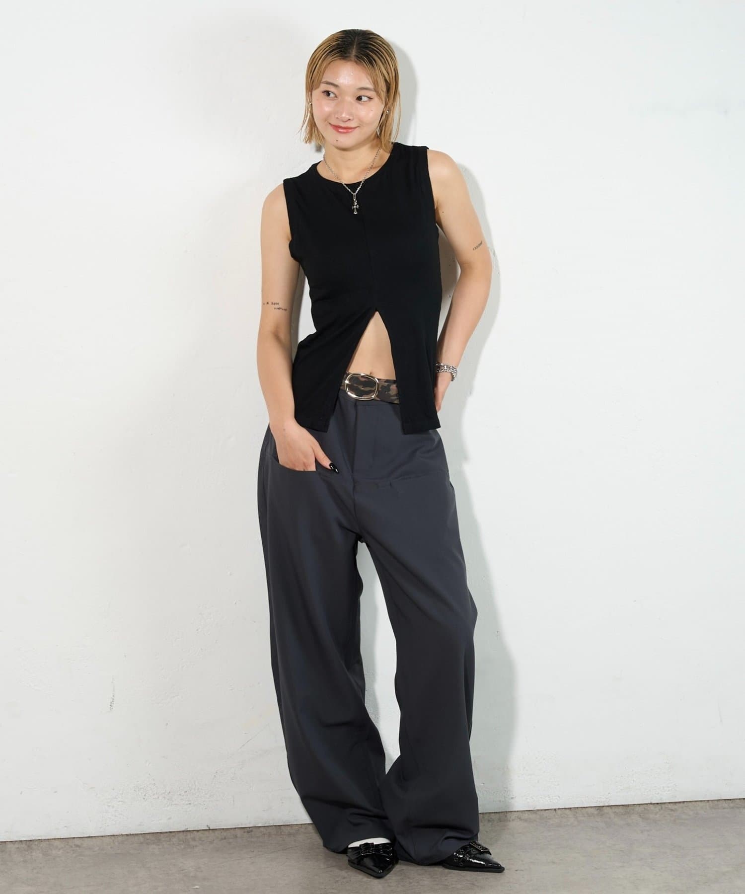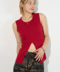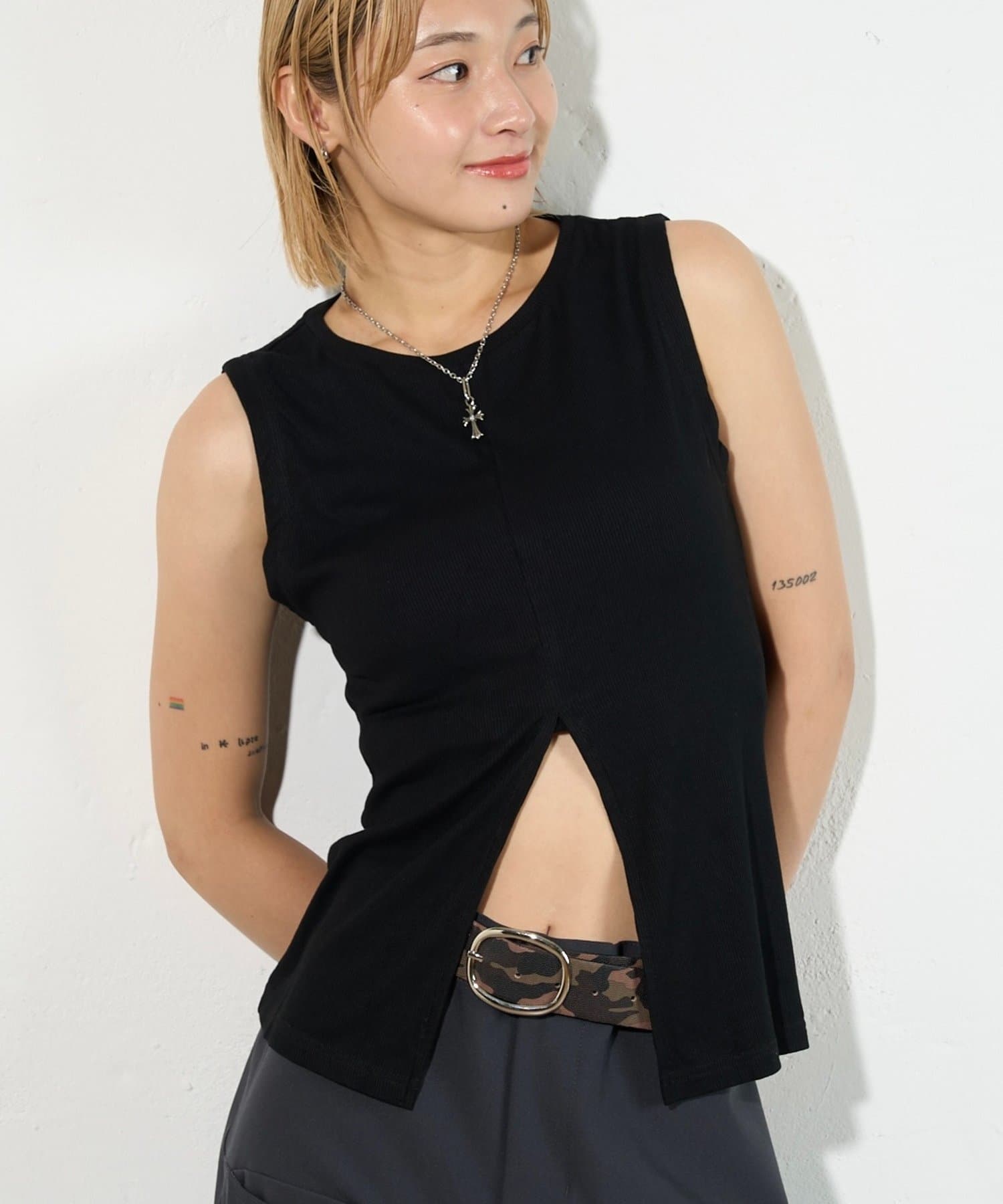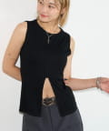 ・定番のリブ素材にトレンドのスリットデザインをプラスした、着回し力抜群のノースリーブトップス。