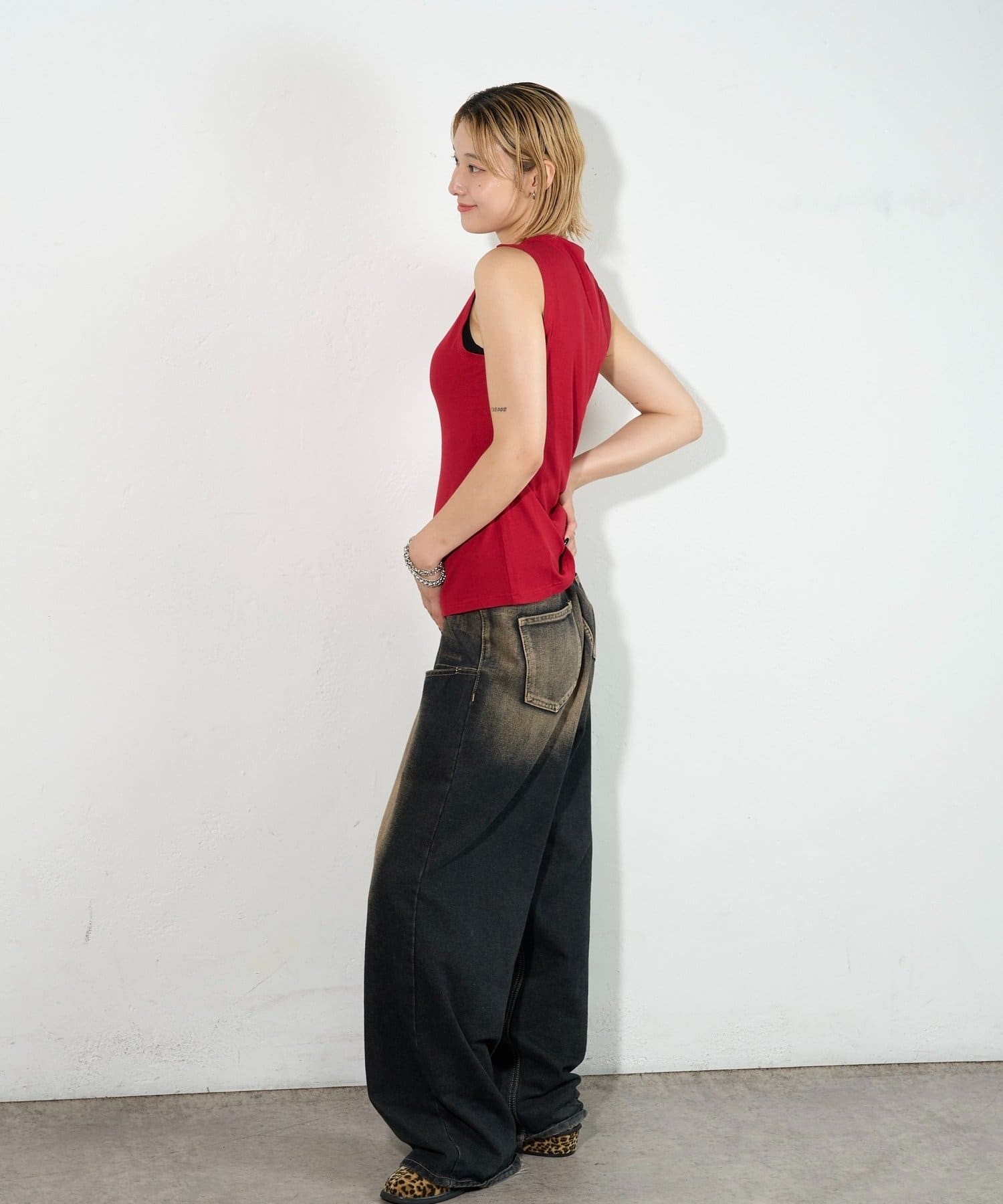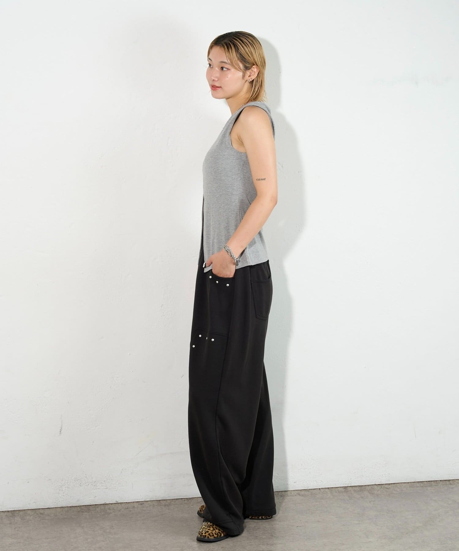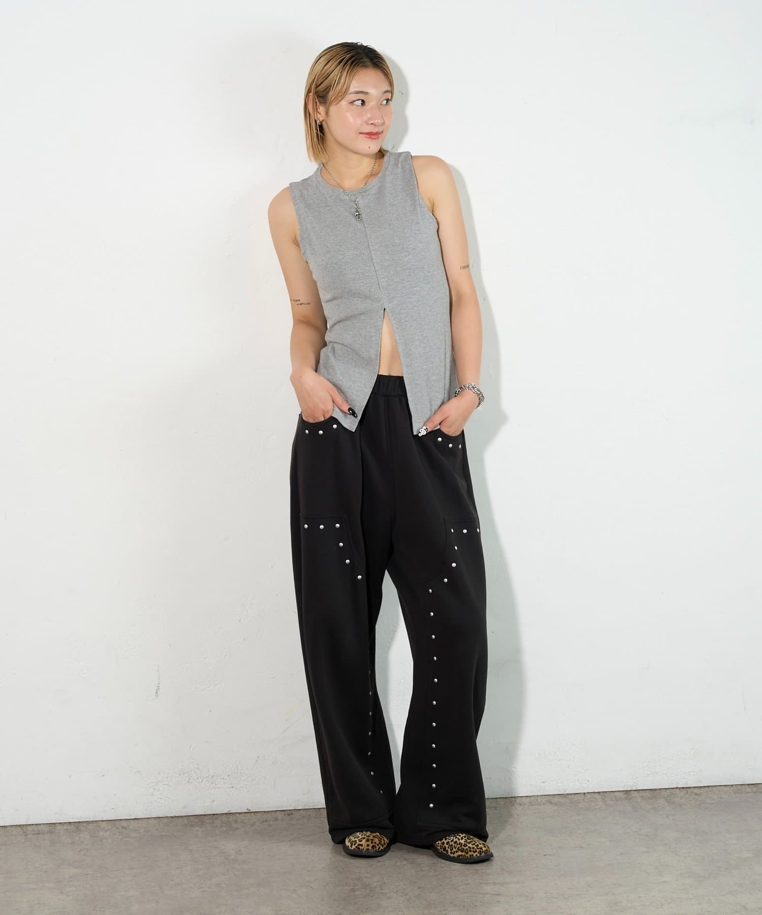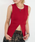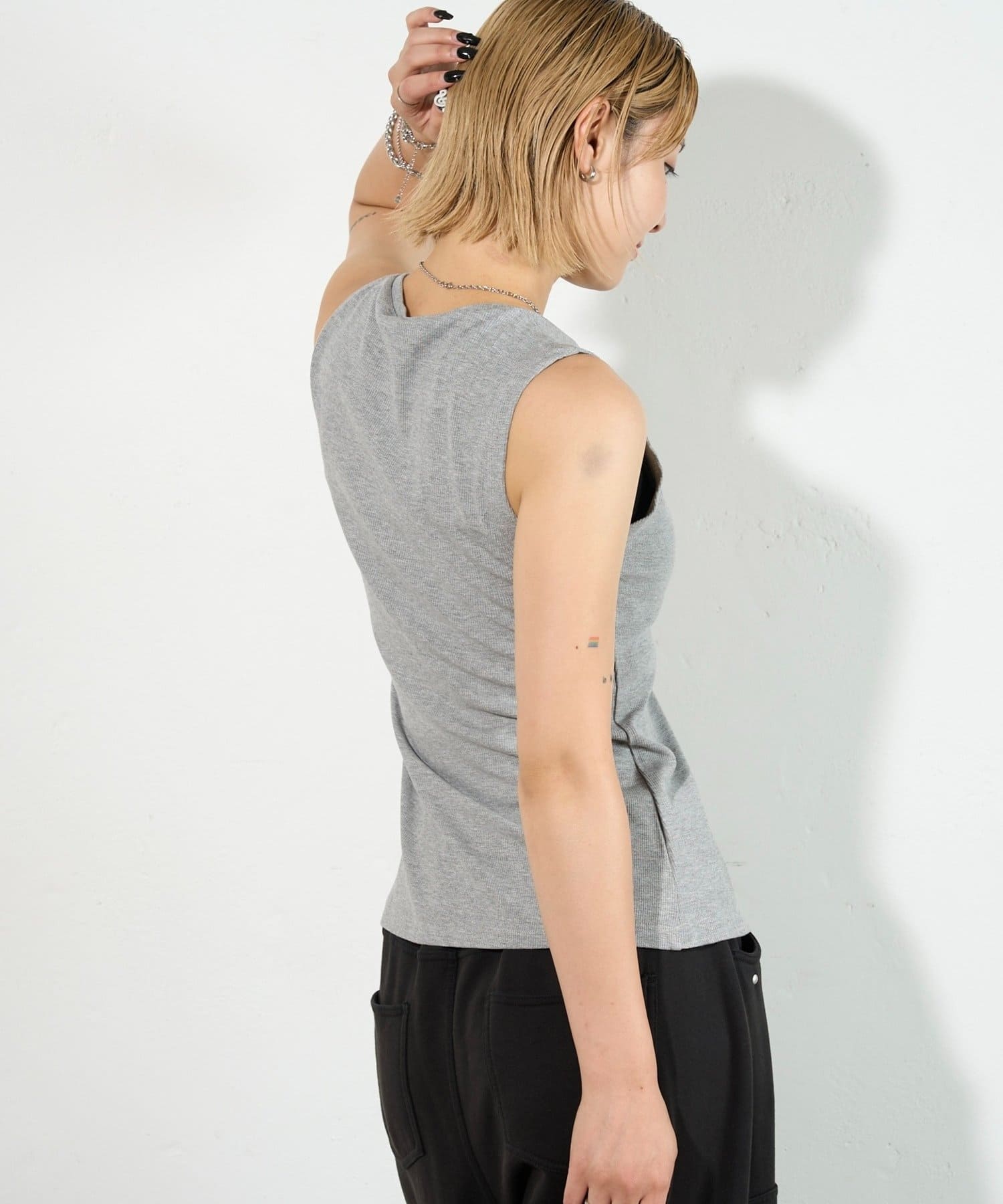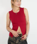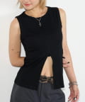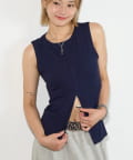 ・定番のリブ素材にトレンドのスリットデザインをプラスした、着回し力抜群のノースリーブトップス。