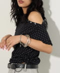 ・トレンドになりつつある、存在感のある大きめバングル。