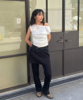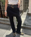 ・パンツはフレアシルエットで、スカートでレイヤードでき気になるヒップ周りもカバーしてくれます。