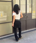 ・伸縮性のあるリブ素材で、ストレスフリーな穿き心地です。