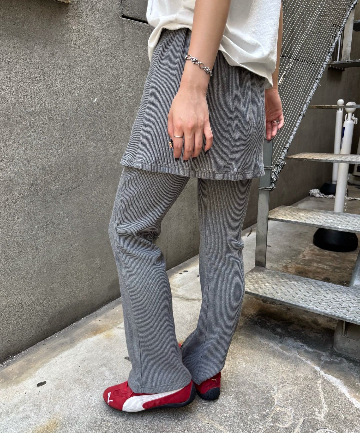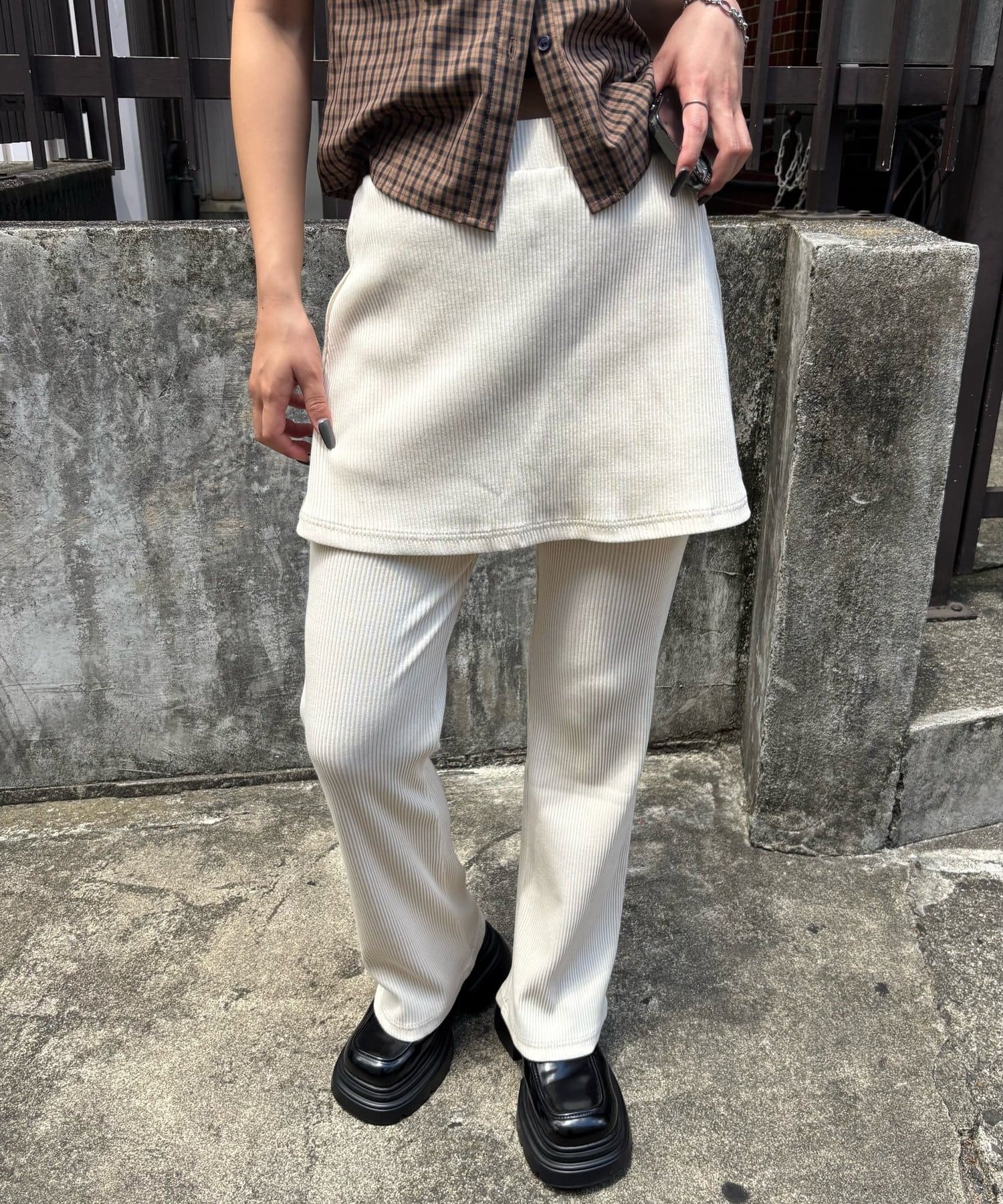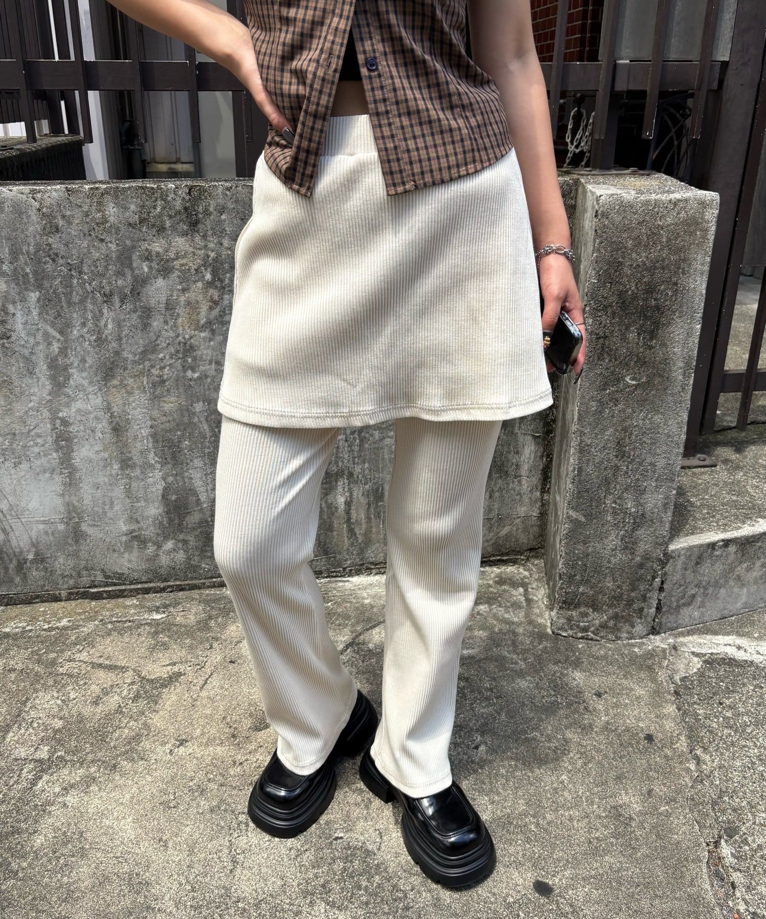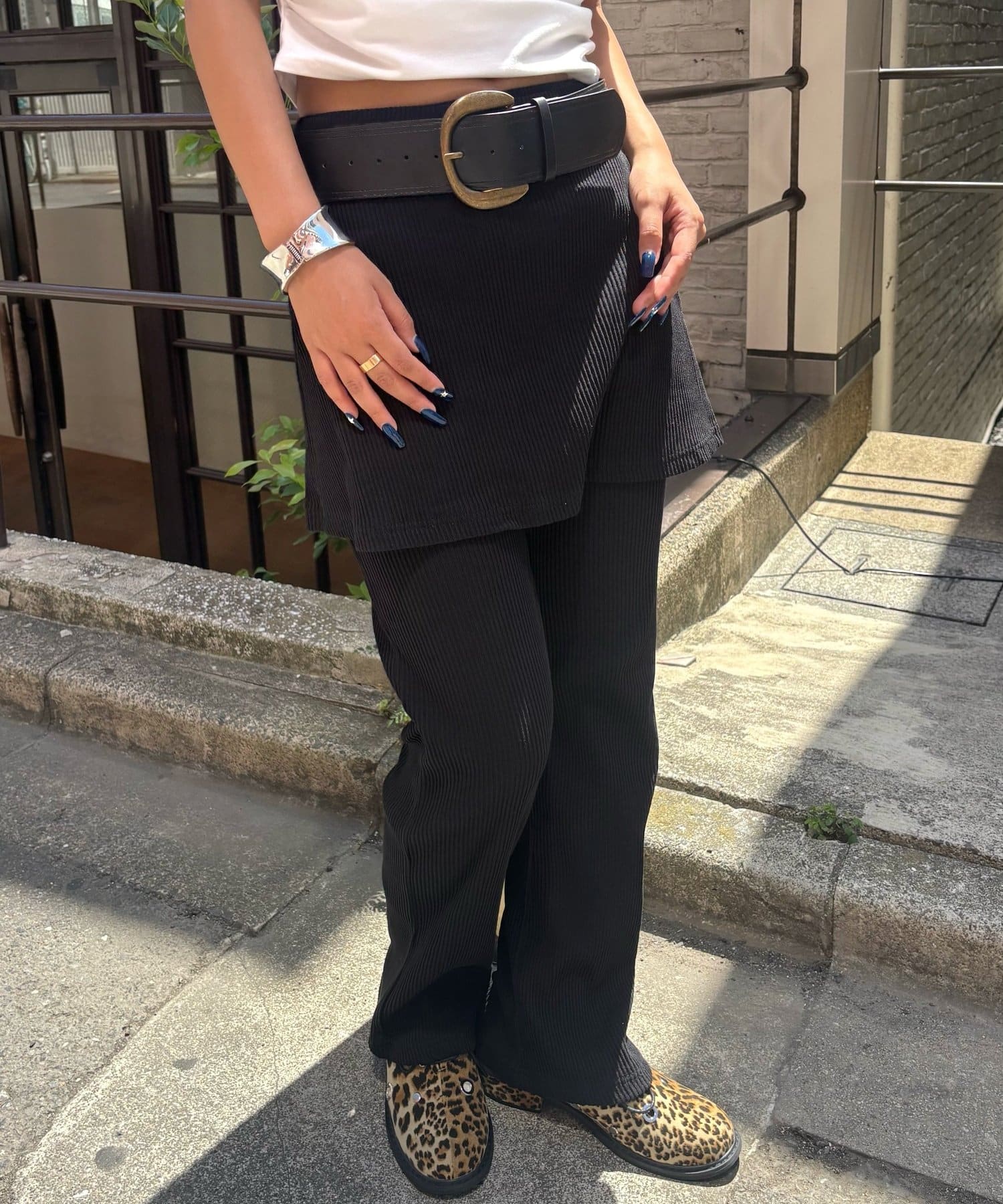 トレンドのレイヤードスタイルが1枚で完成するスカートパンツ