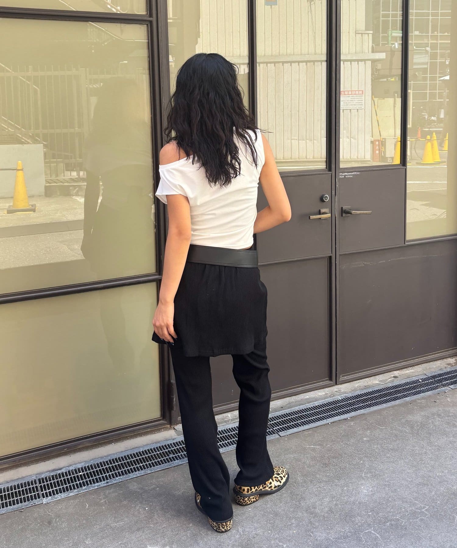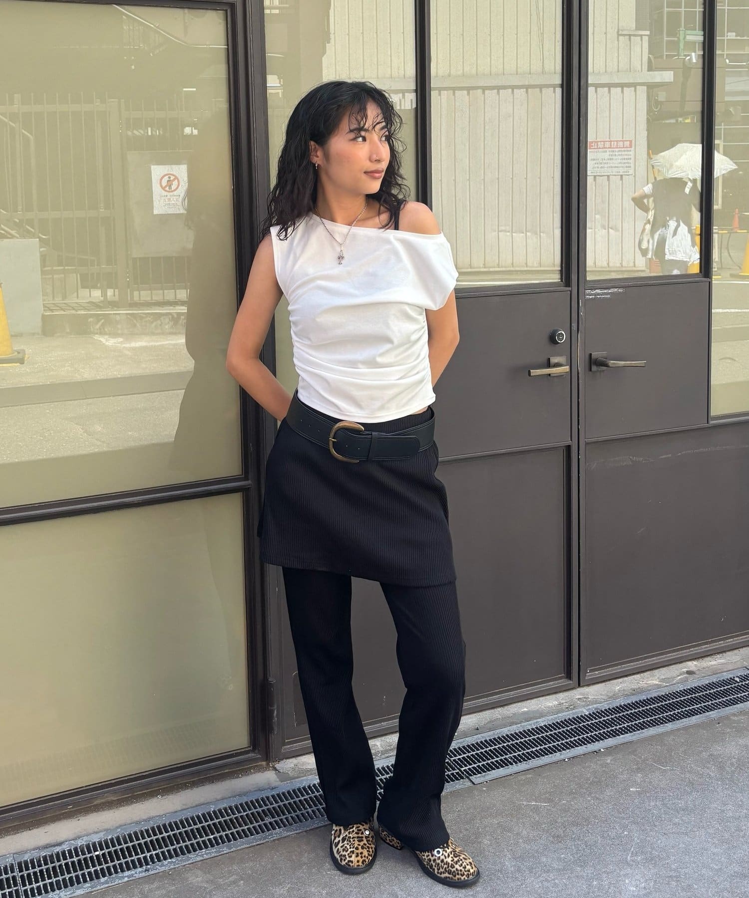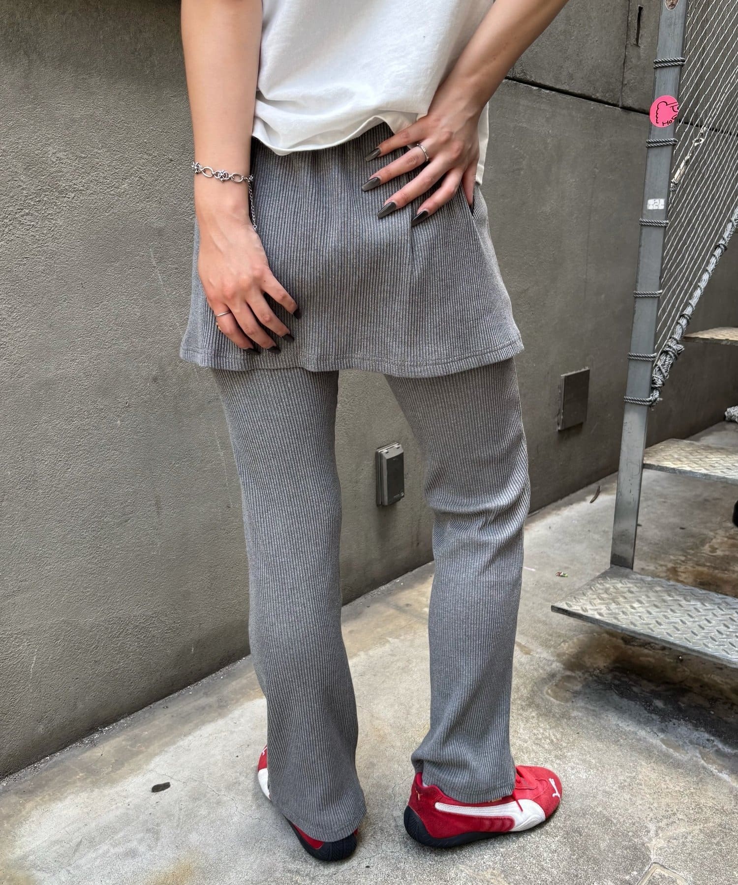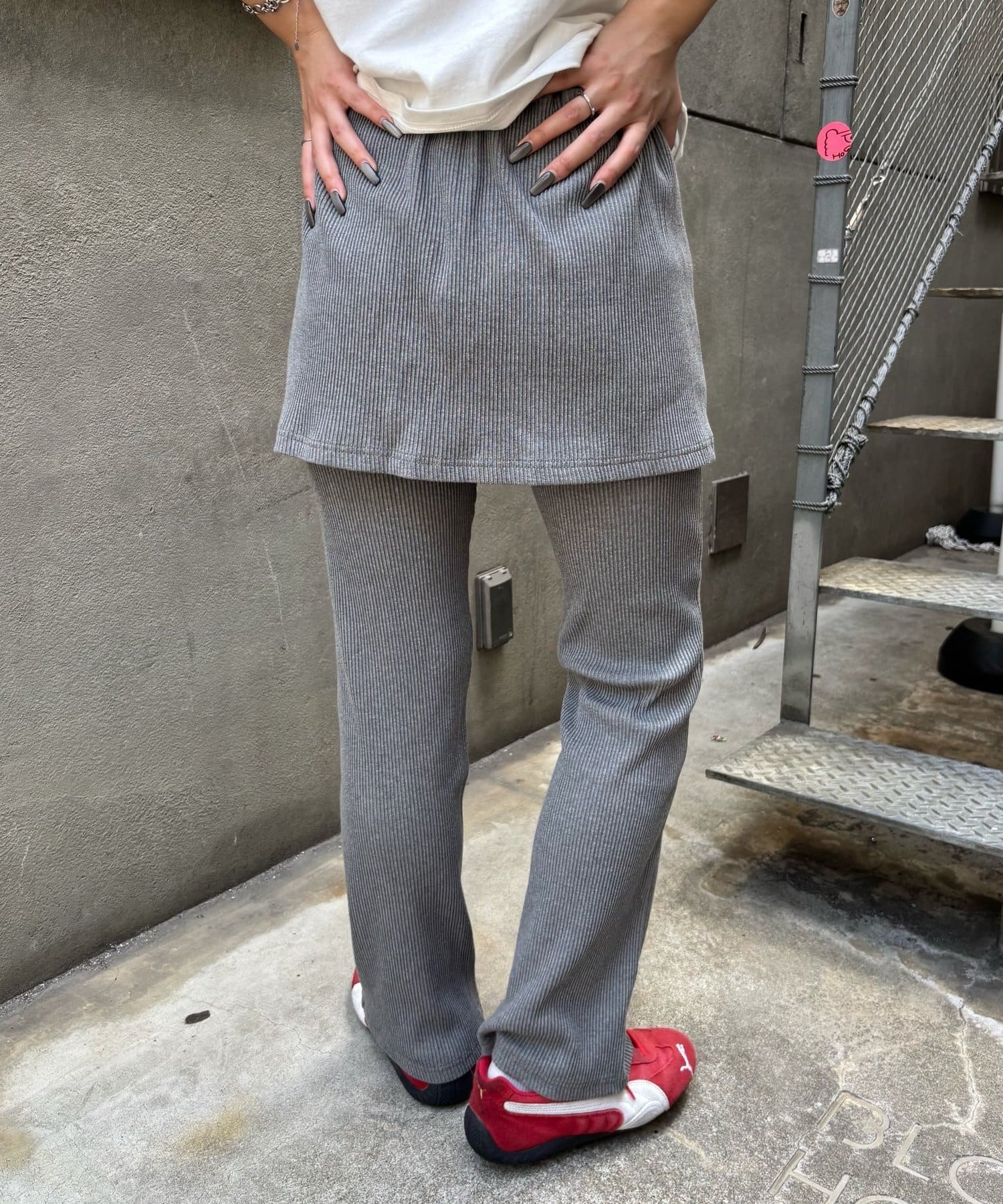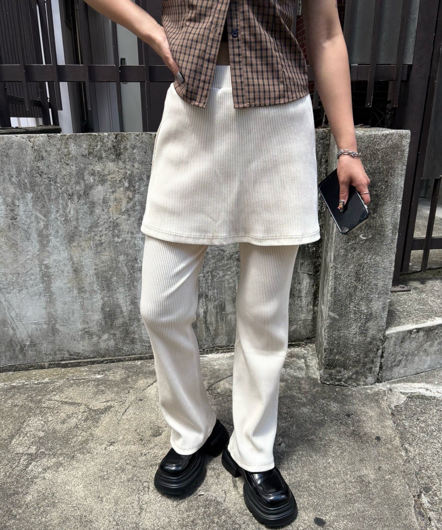 トレンドのレイヤードスタイルが1枚で完成するスカートパンツ