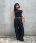 ・ウエスト周りをすっきりと見せてくれるデザイン。