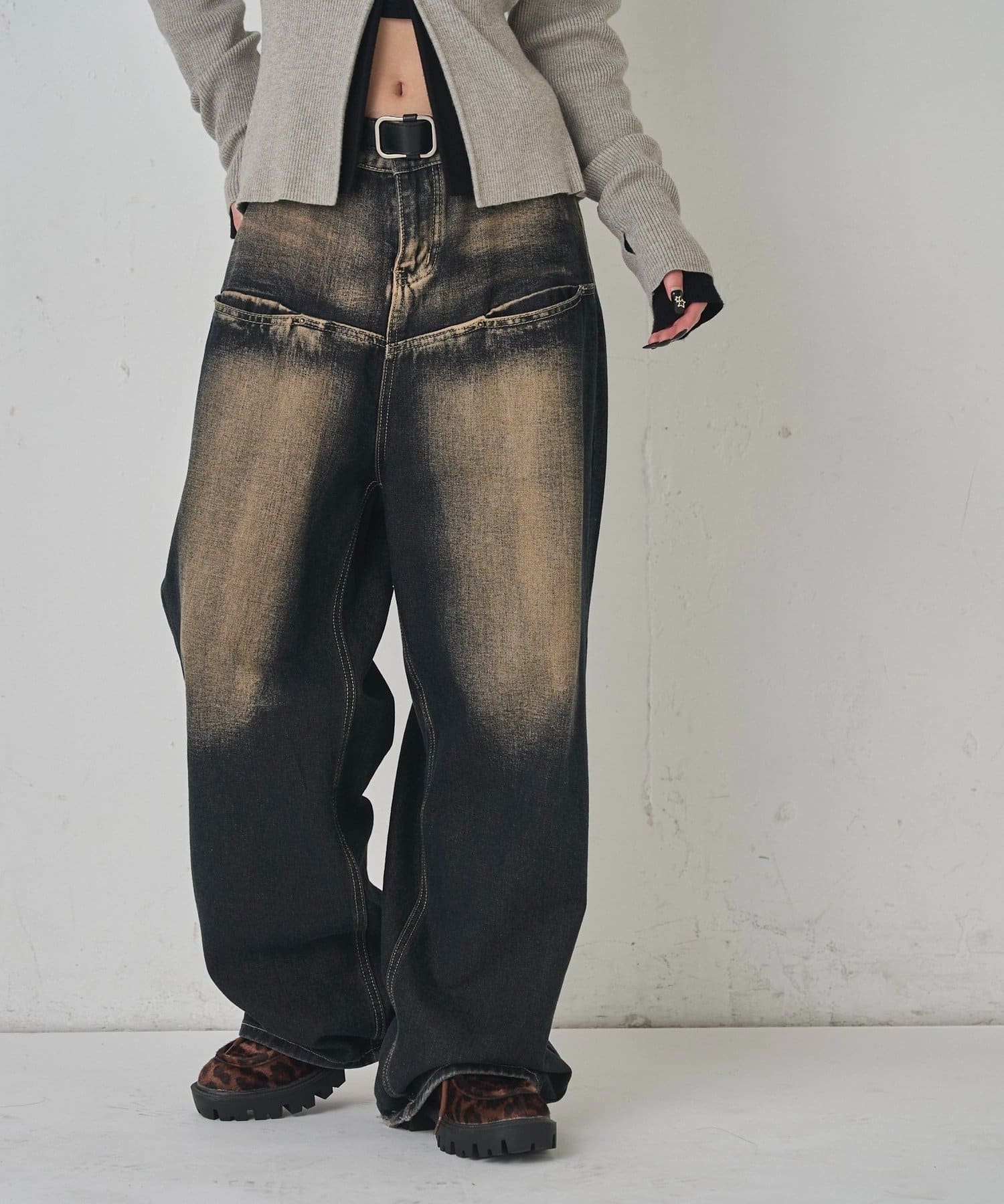 ・ワイドなシルエットなので、体のラインが出るコンパクトなトップスや、ミニ丈のアウター合わせがおすすめです。
