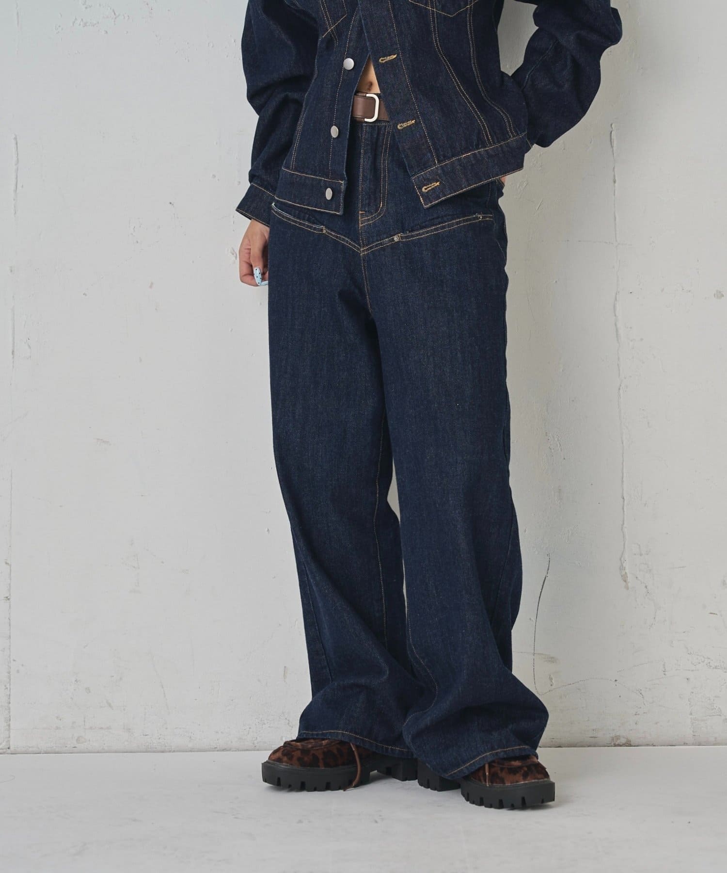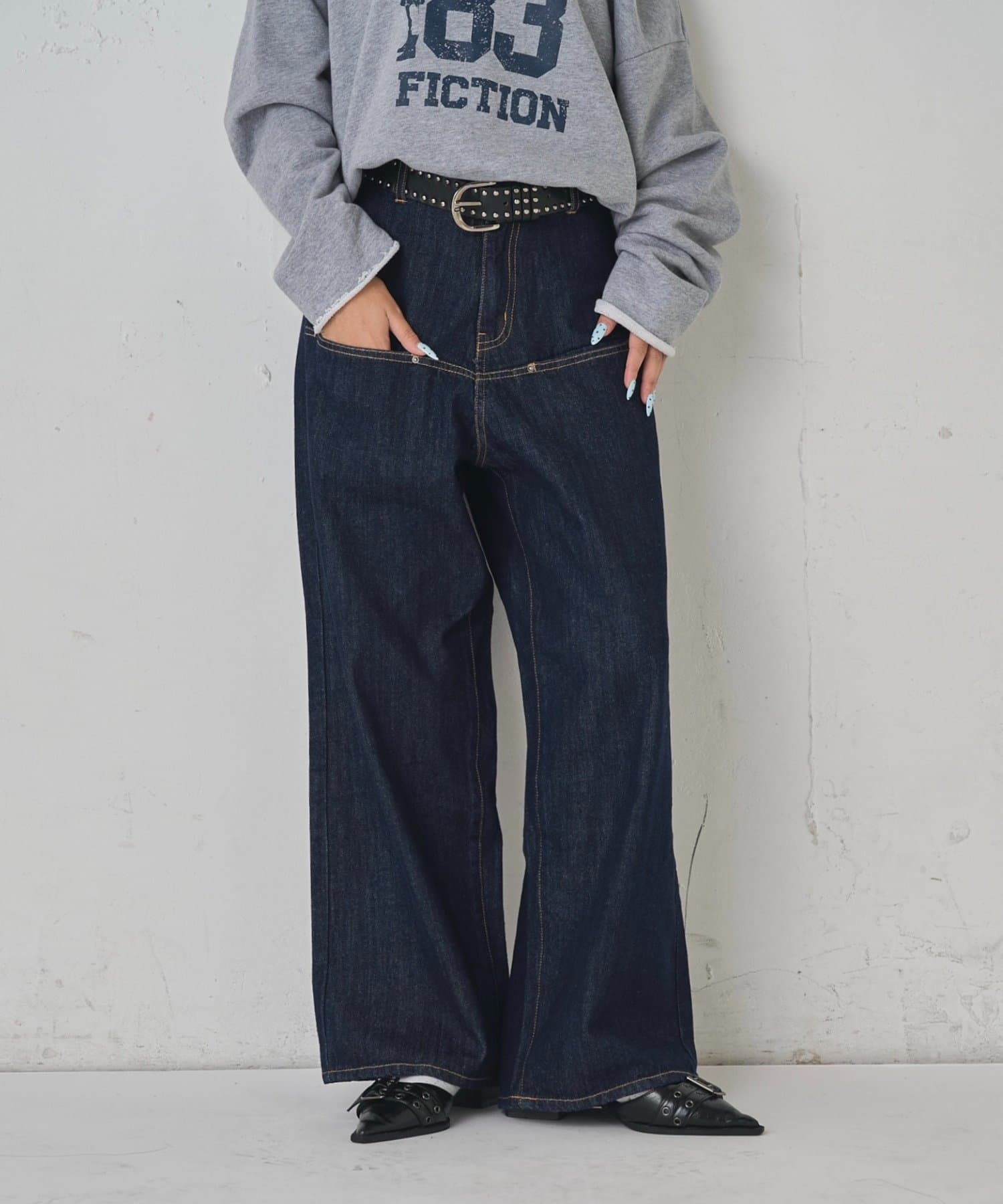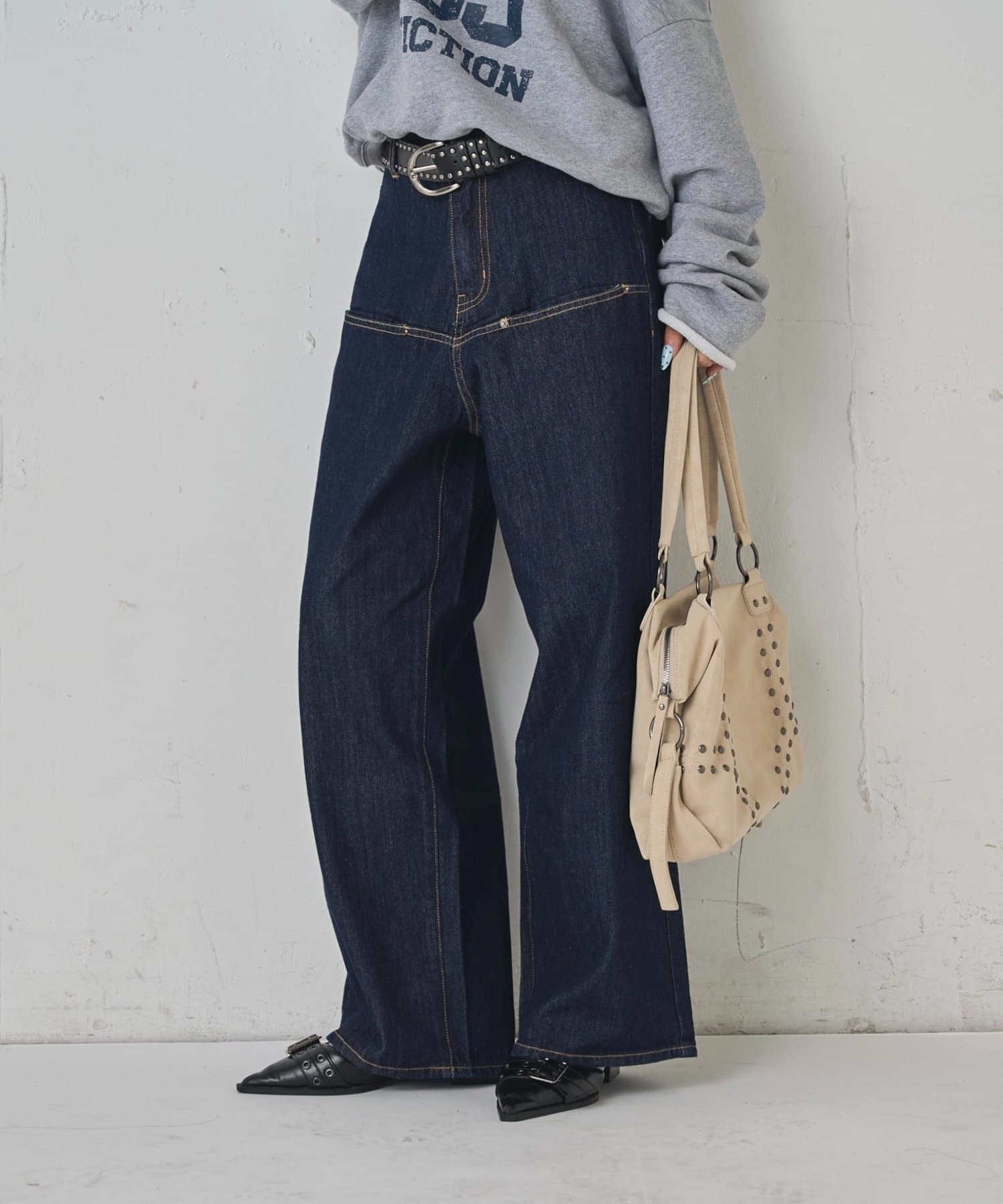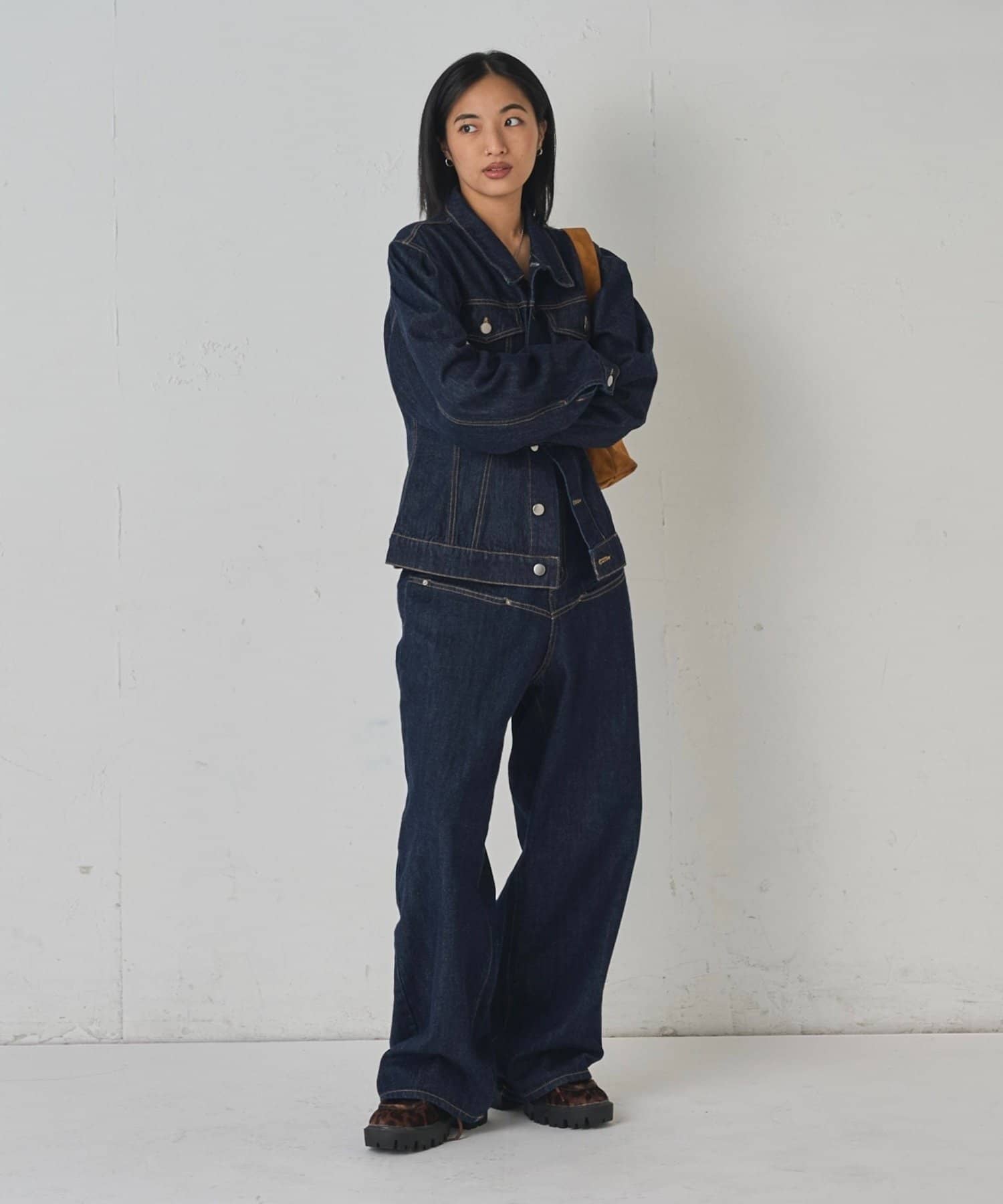 スラッシュポケットが特徴的な、スタイリッシュなデニム。