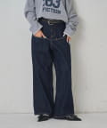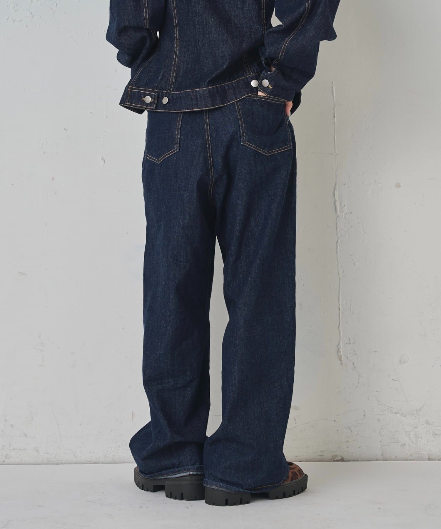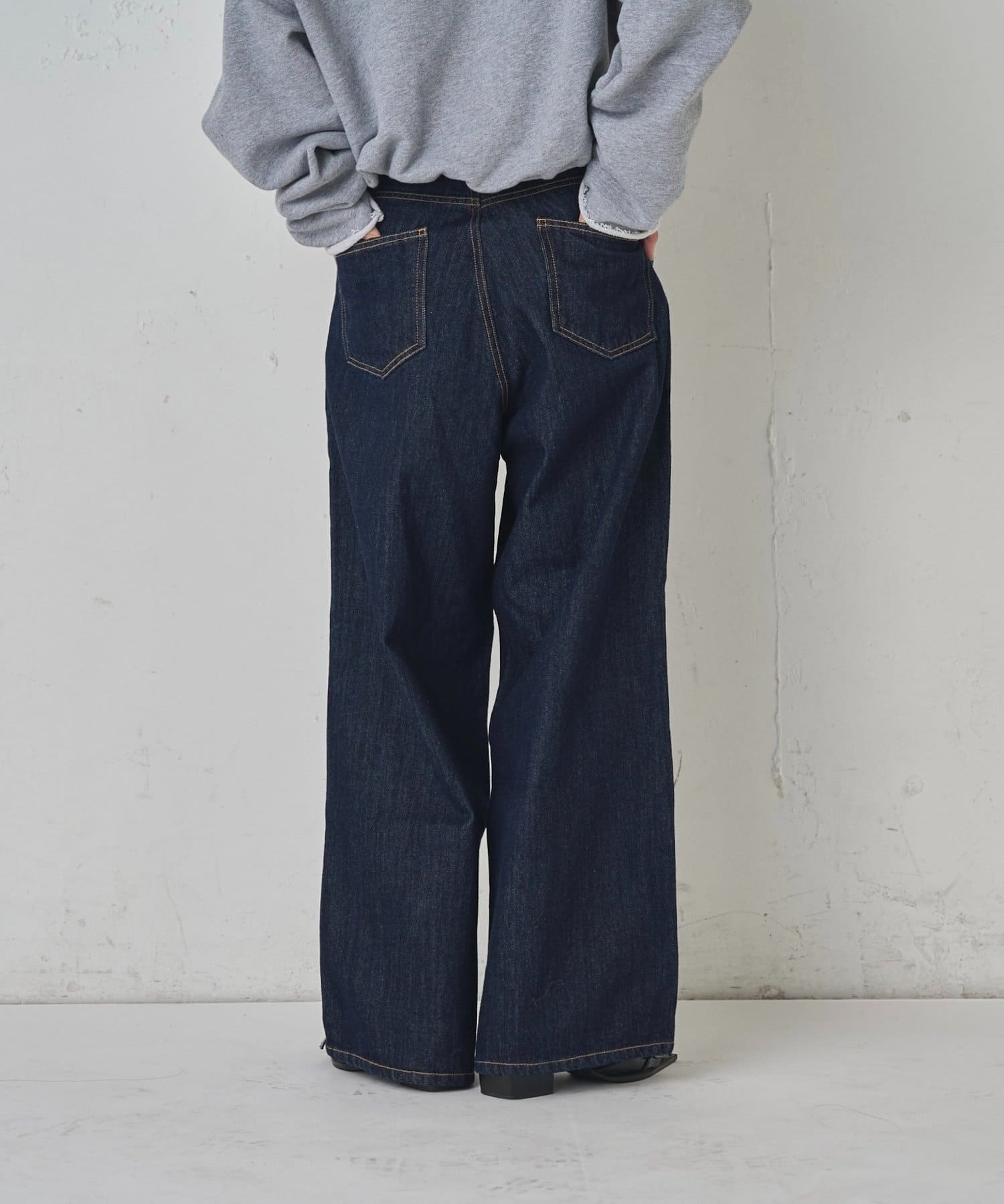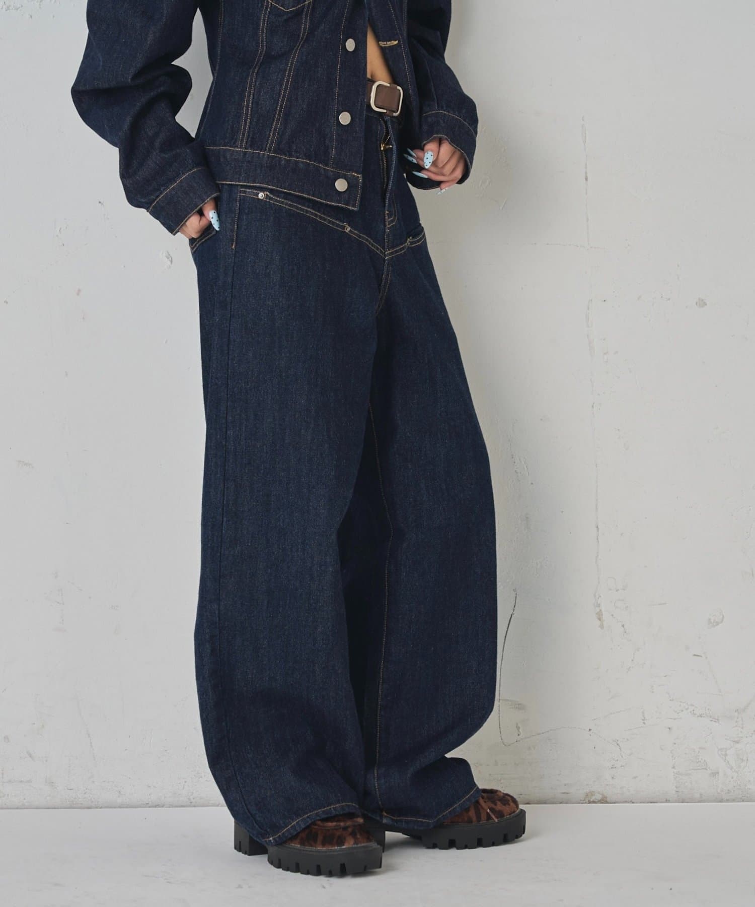スラッシュポケットが特徴的な、スタイリッシュなデニム。