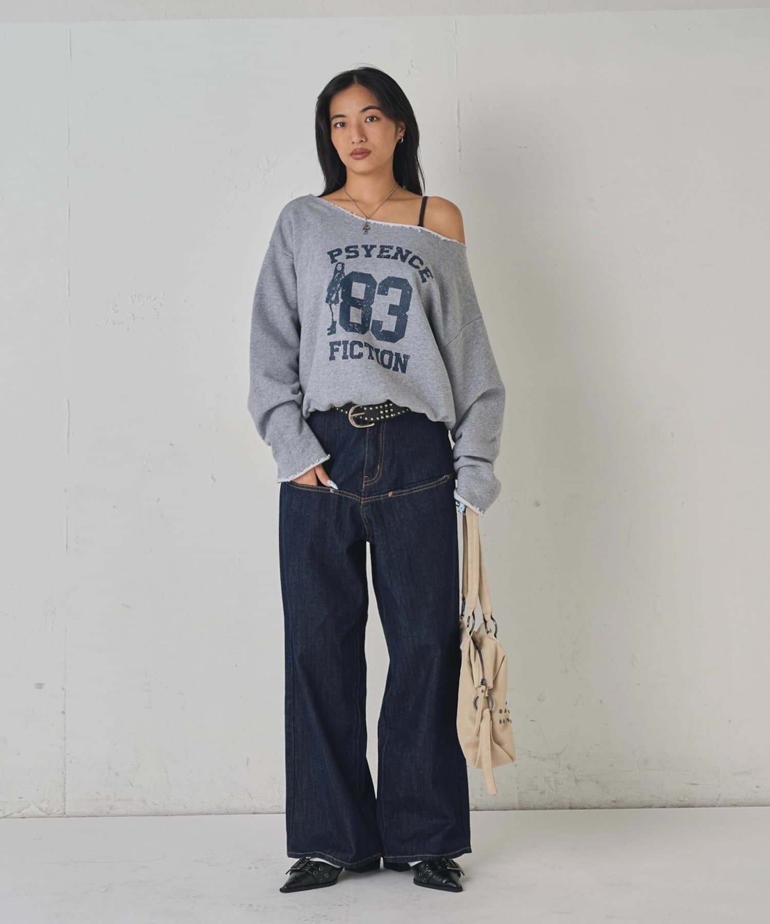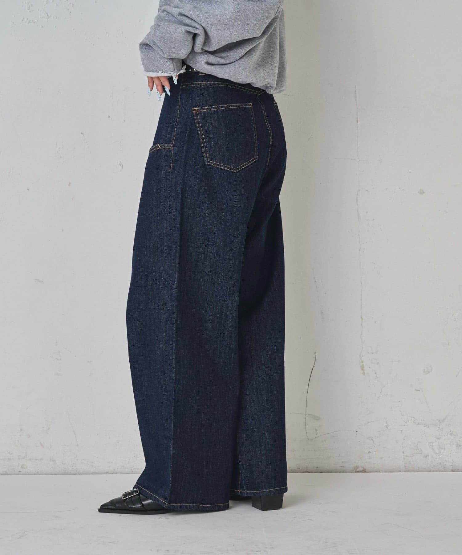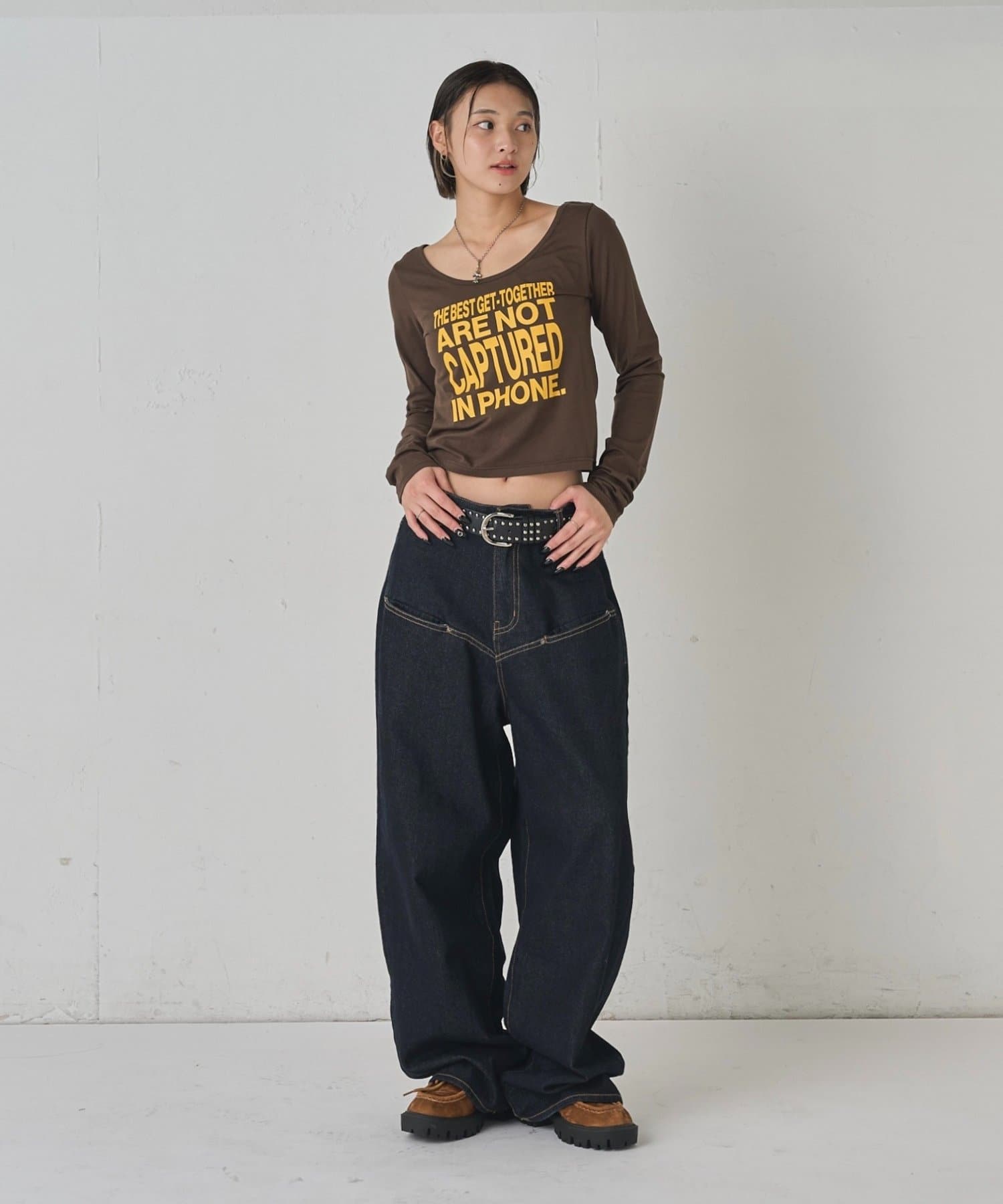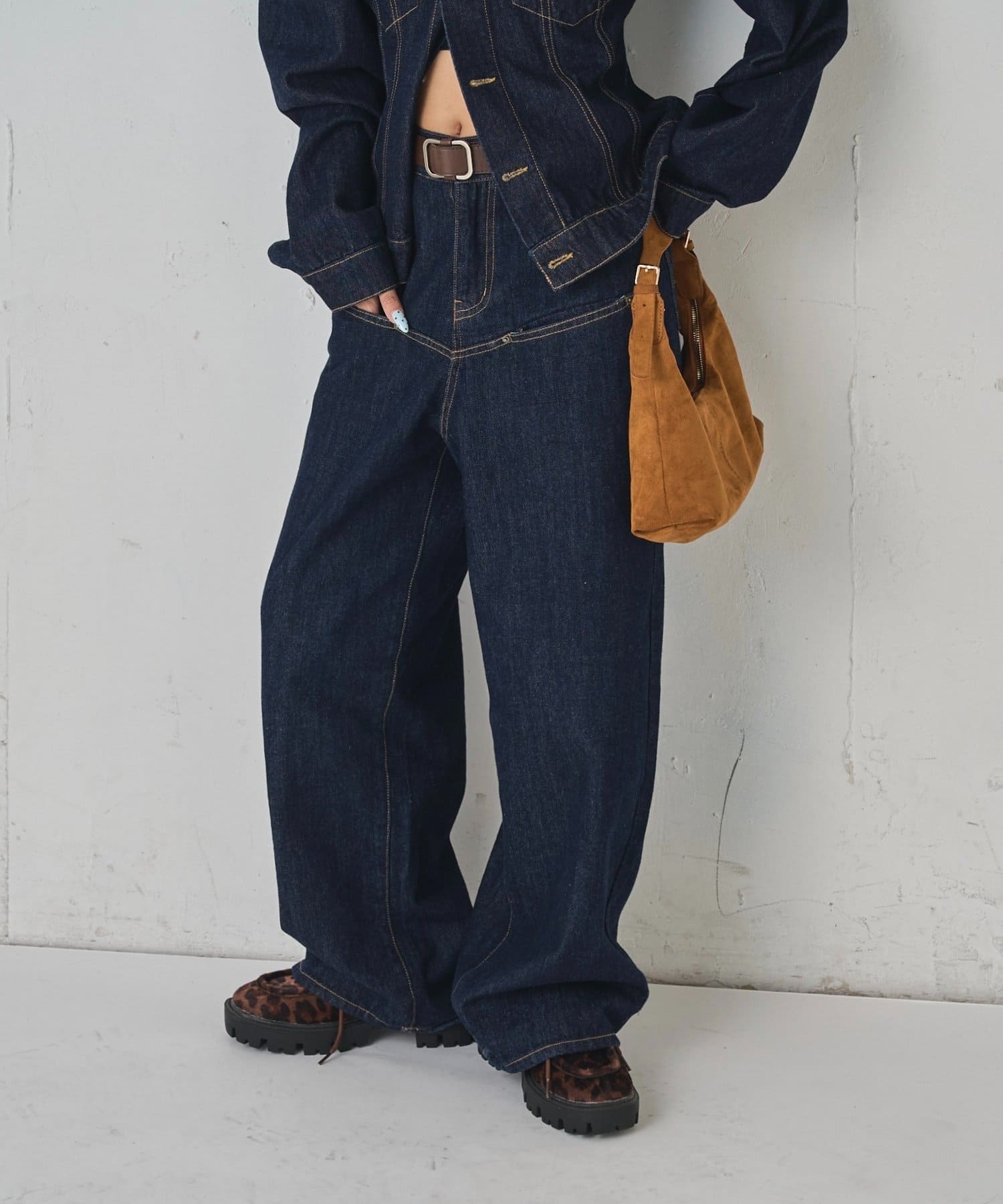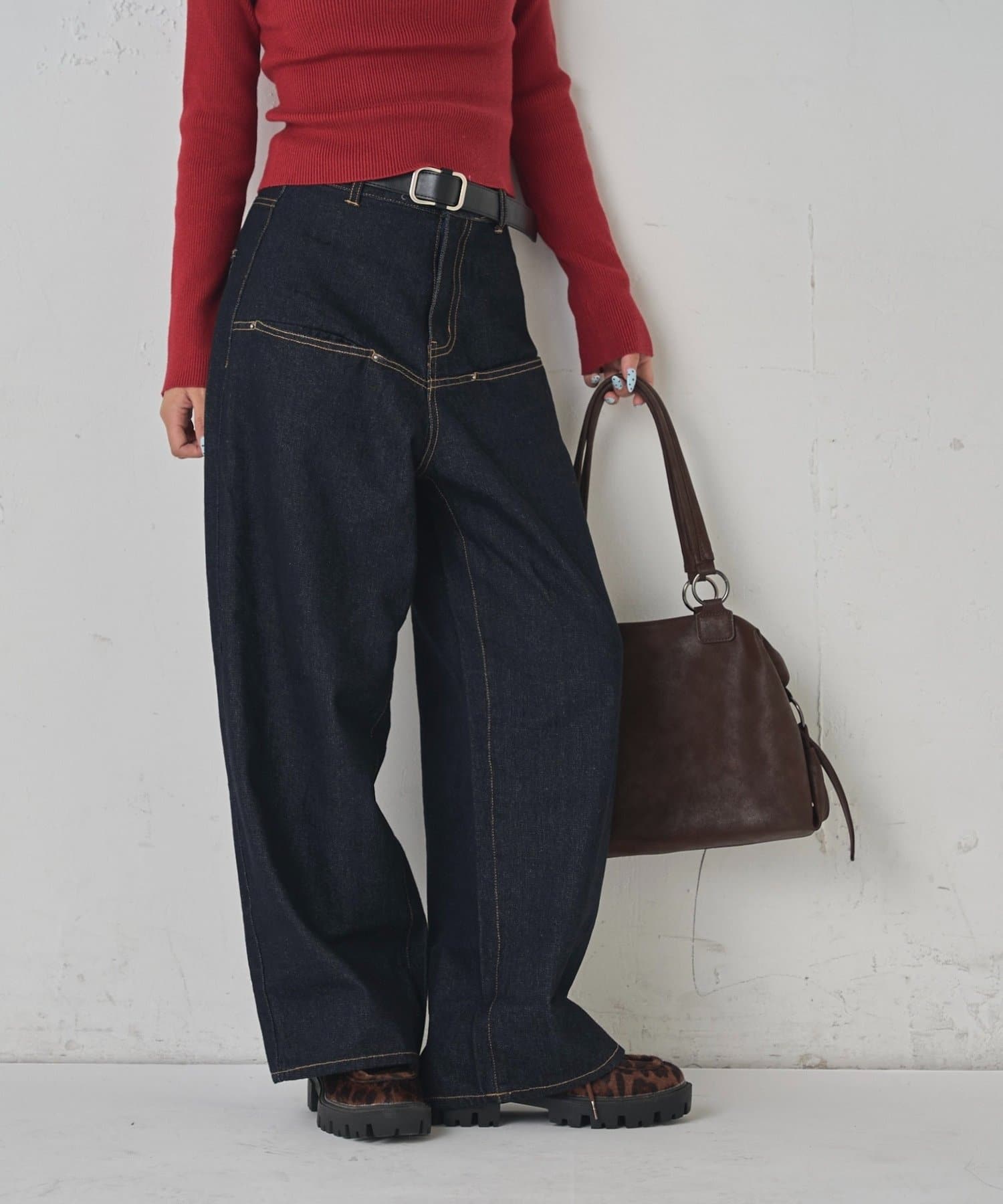 ・ワイドなシルエットなので、体のラインが出るコンパクトなトップスや、ミニ丈のアウター合わせがおすすめです。