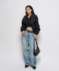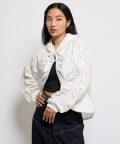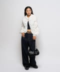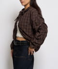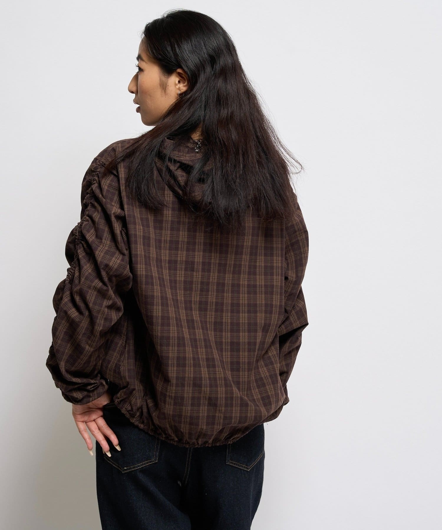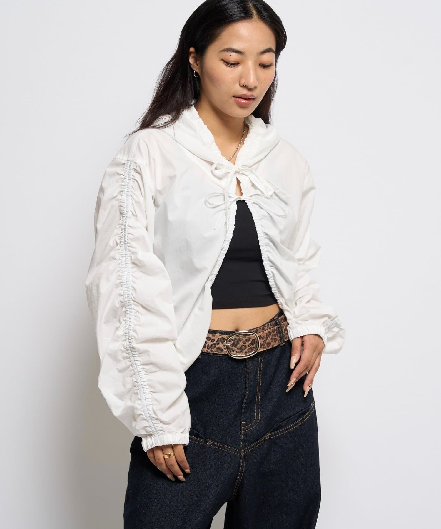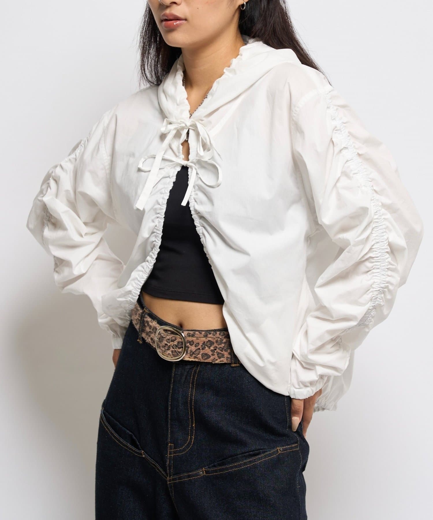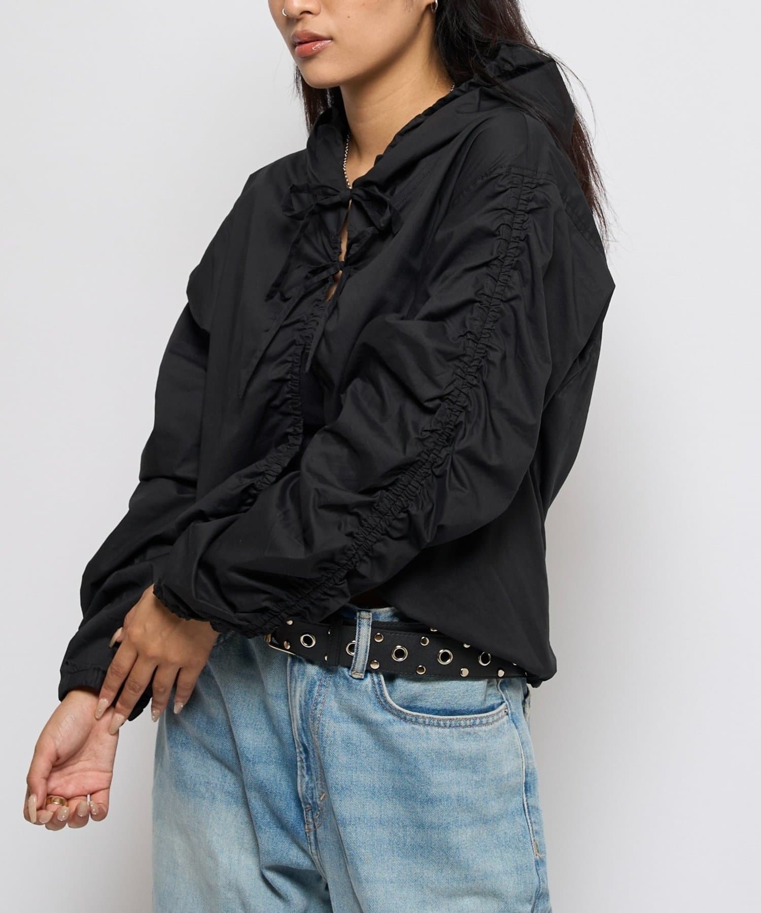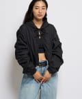 ・ギャザーを沢山使った、ふんわりシルエットが特徴のシャツブルゾン。