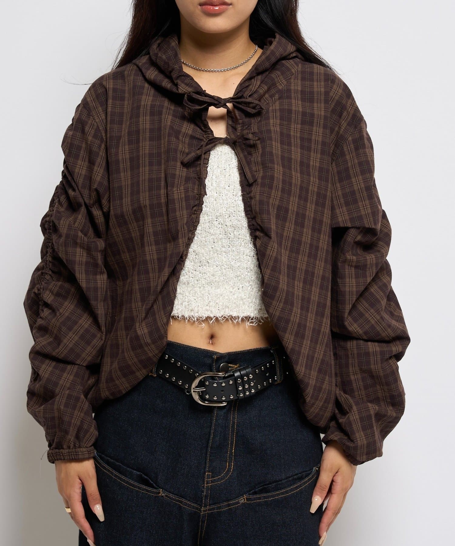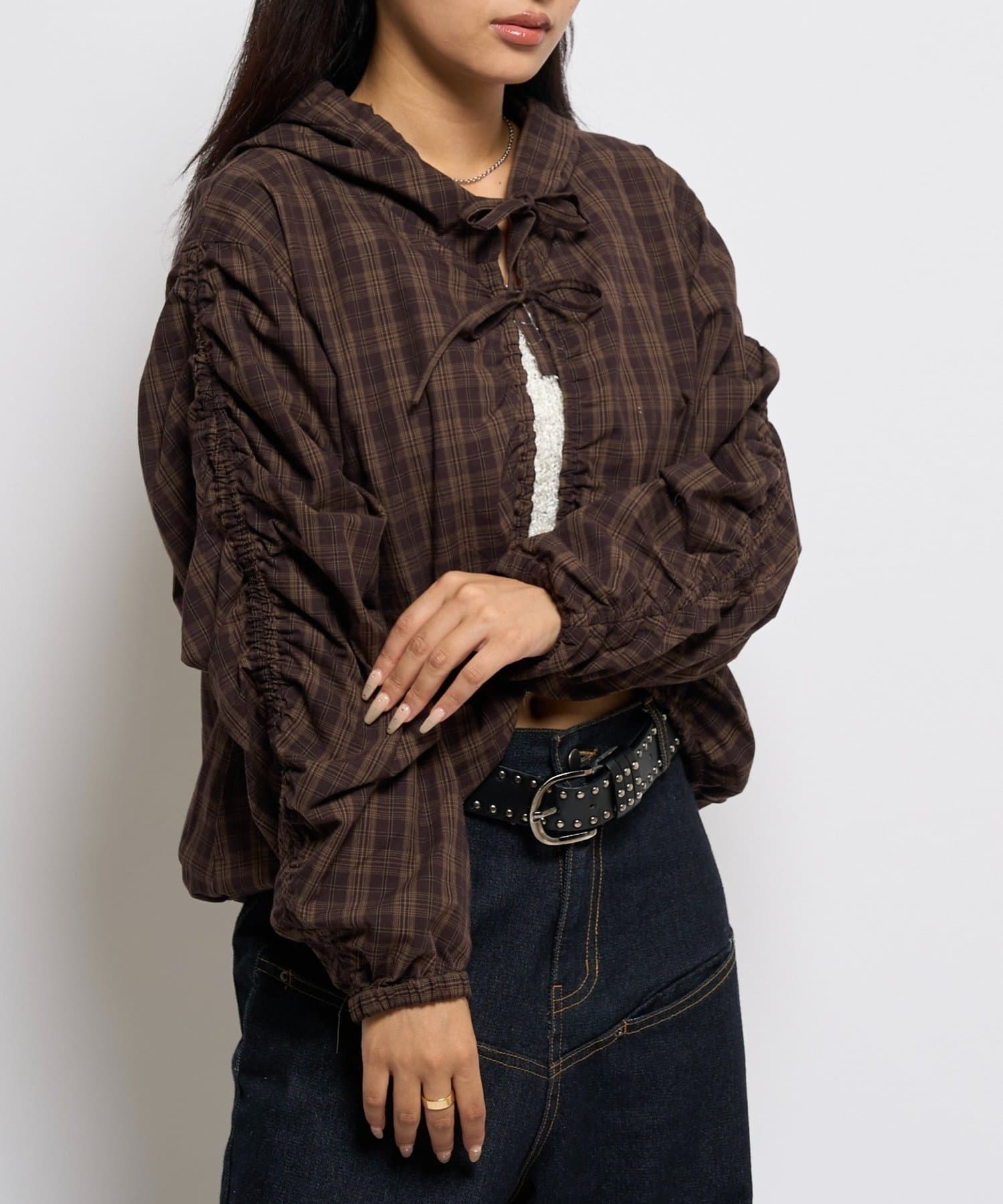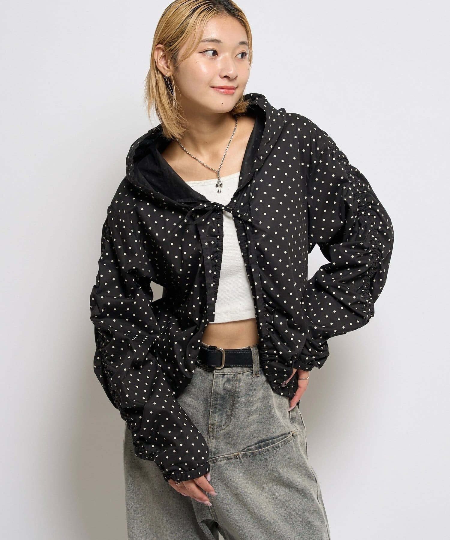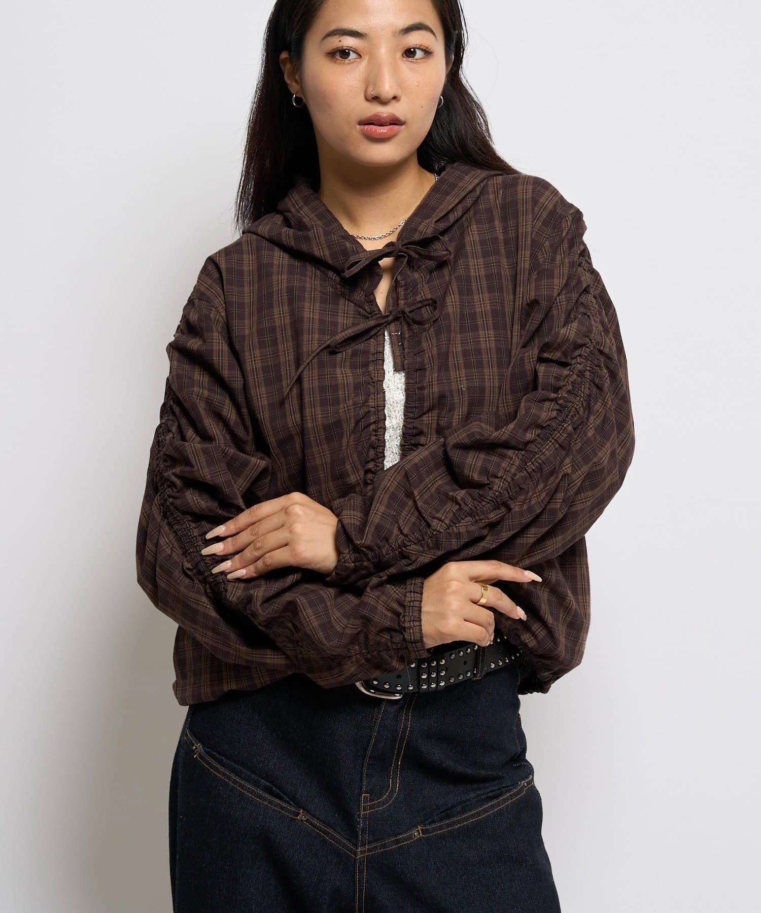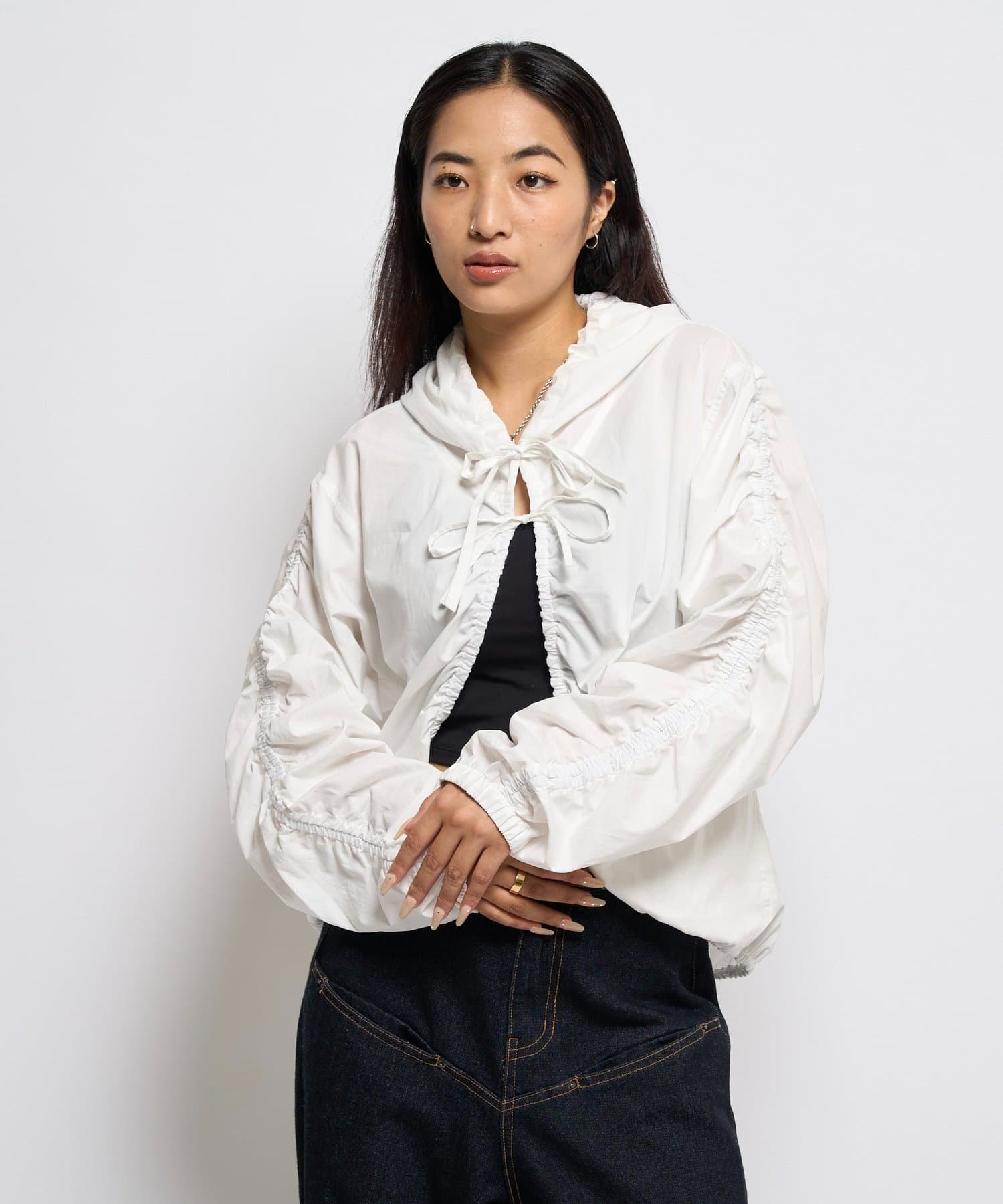・フードパーカーとしてカジュアルにも、ブラウスとしてキレイめにも見せれる万能アイテム。