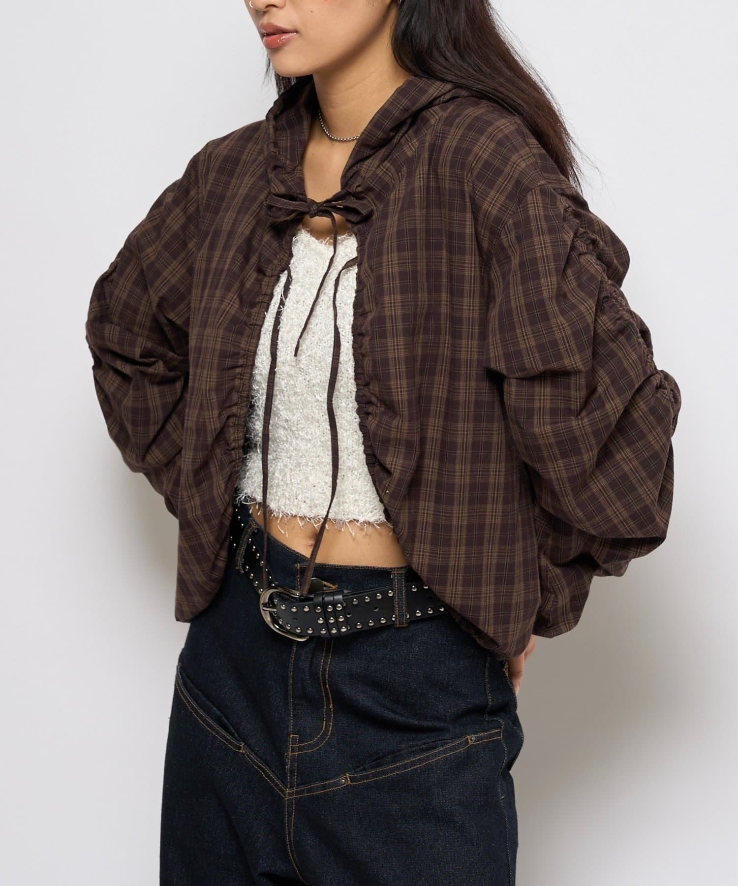 【WHO'S WHO gallery】ギャザーフードシャツブルゾン