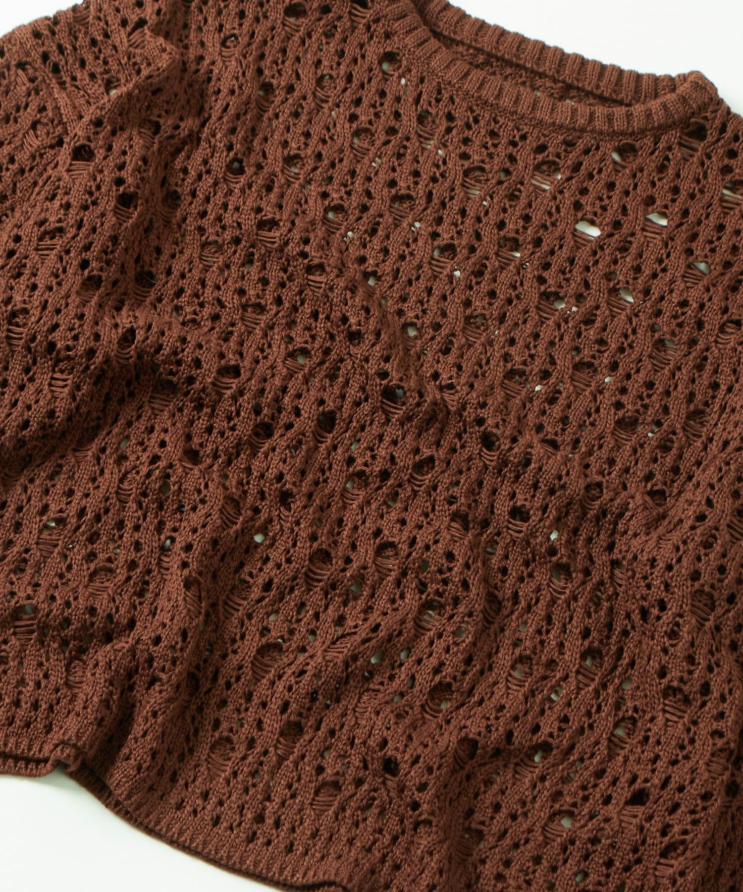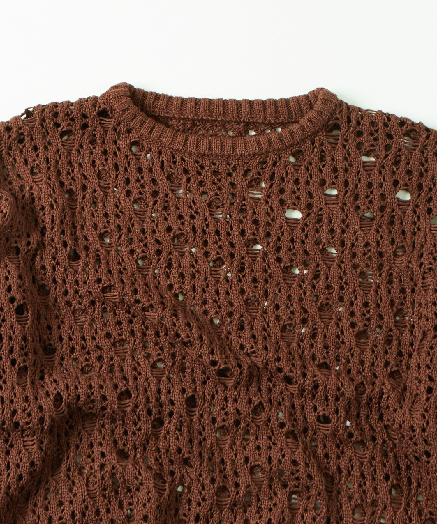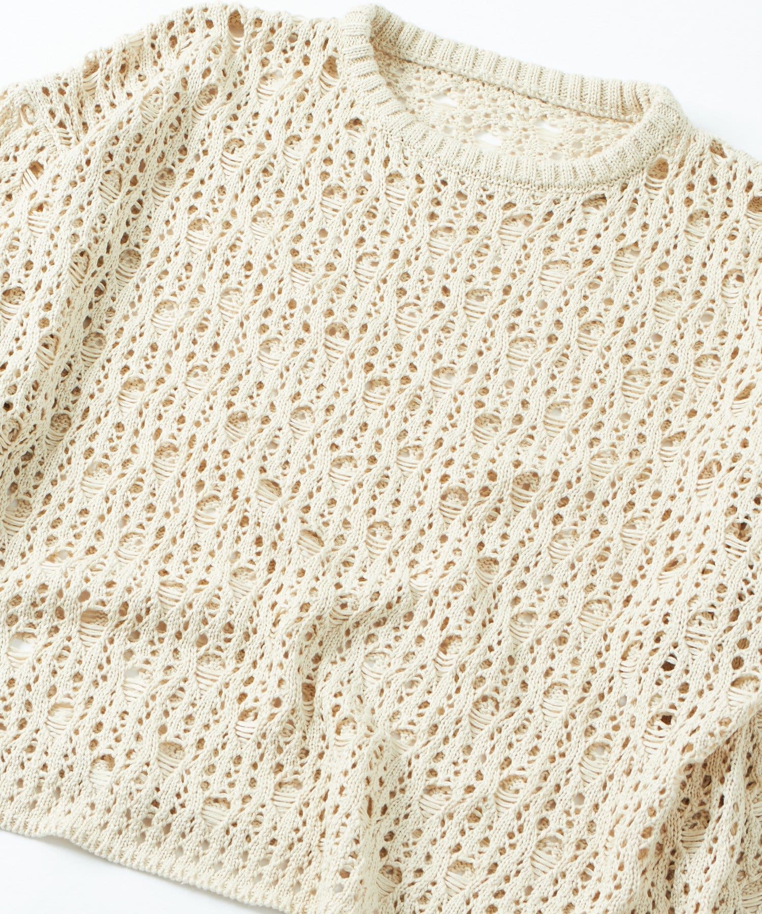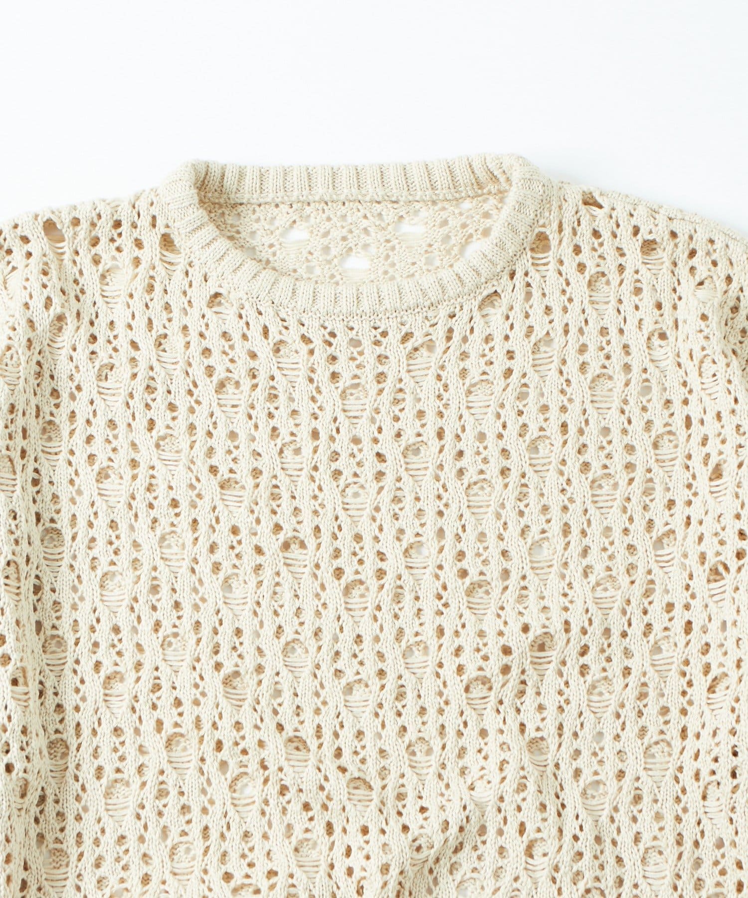 【WHO'S WHO gallery】透かし編みオフショルルーズニット