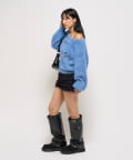 ・ミニのボトムスとブーツで甘辛ミックスコーデ。