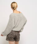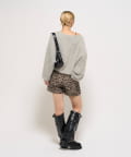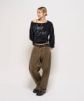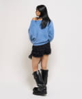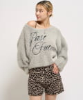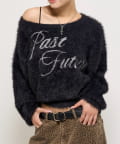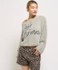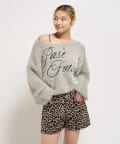 ・カジュアルなロゴデザインながらも、シャギー素材とオフショルデザインで女性らしさをプラス。