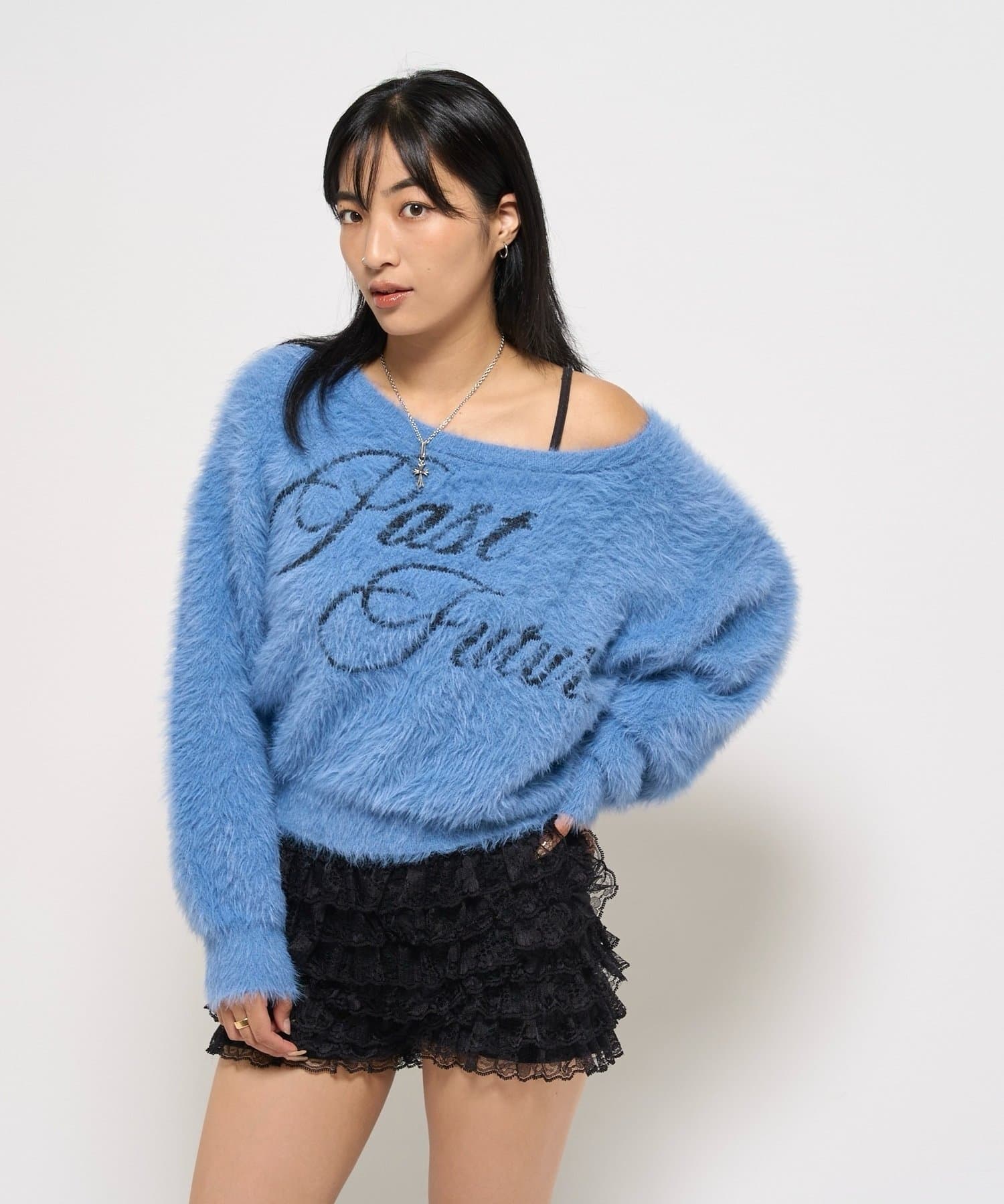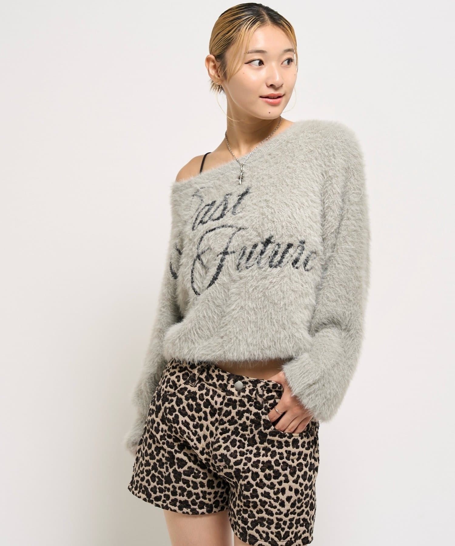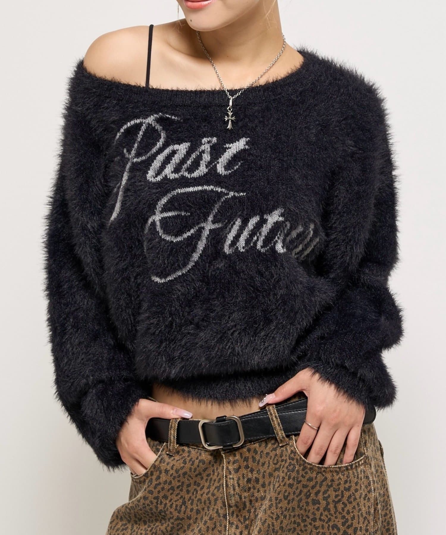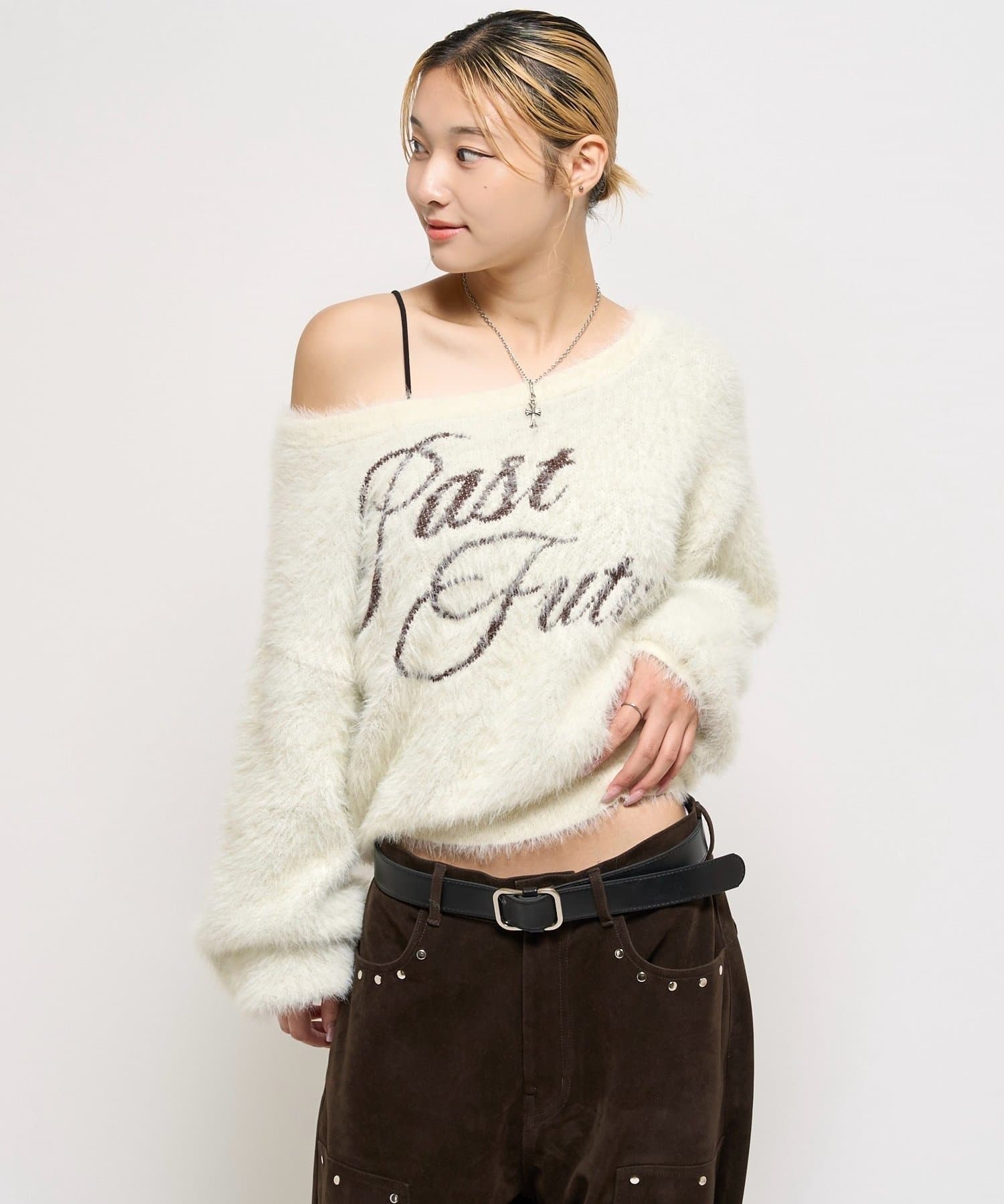 ふわふわシャギーが可愛い!秋冬活躍間違いなしの ロゴオフショルニット。