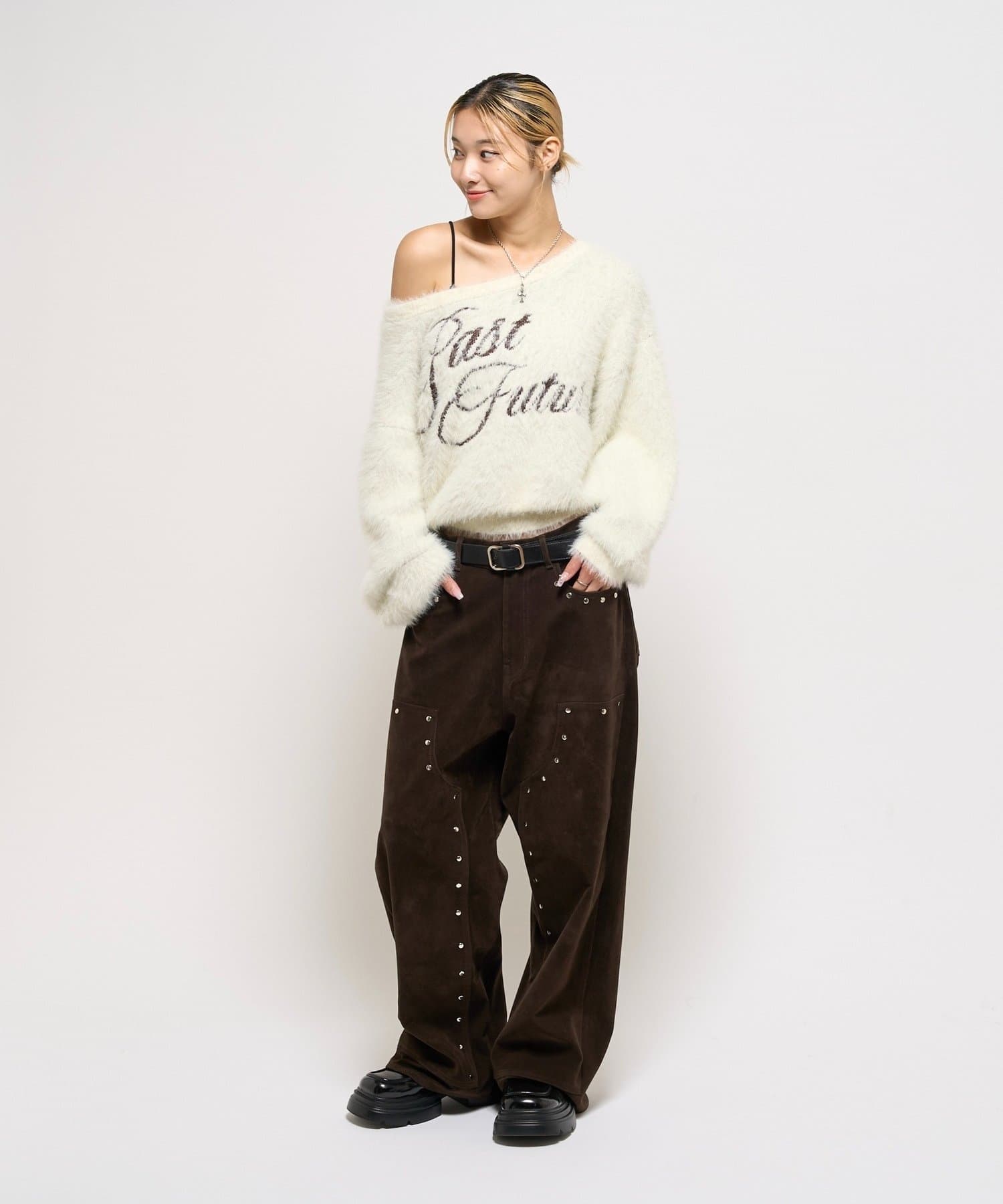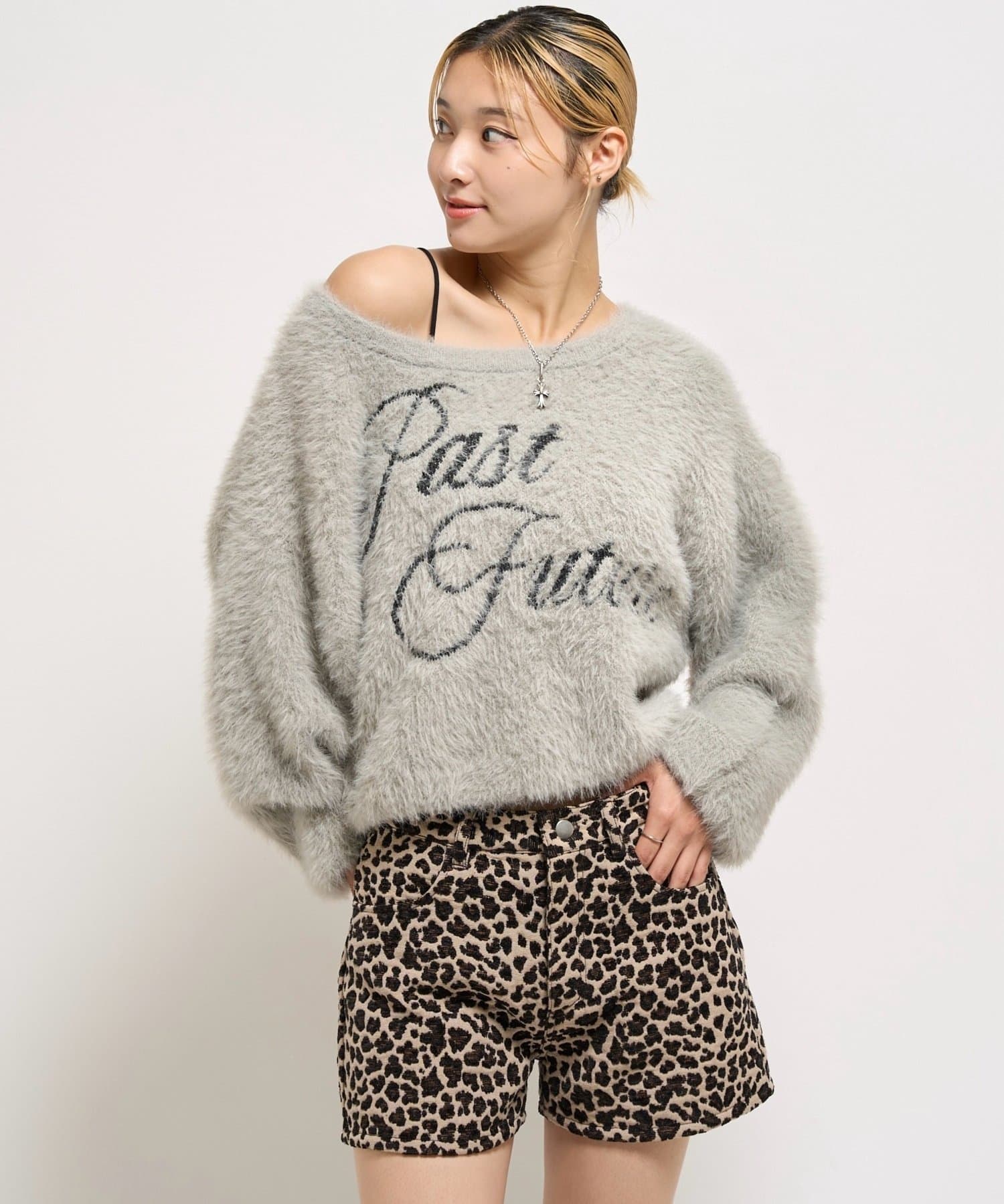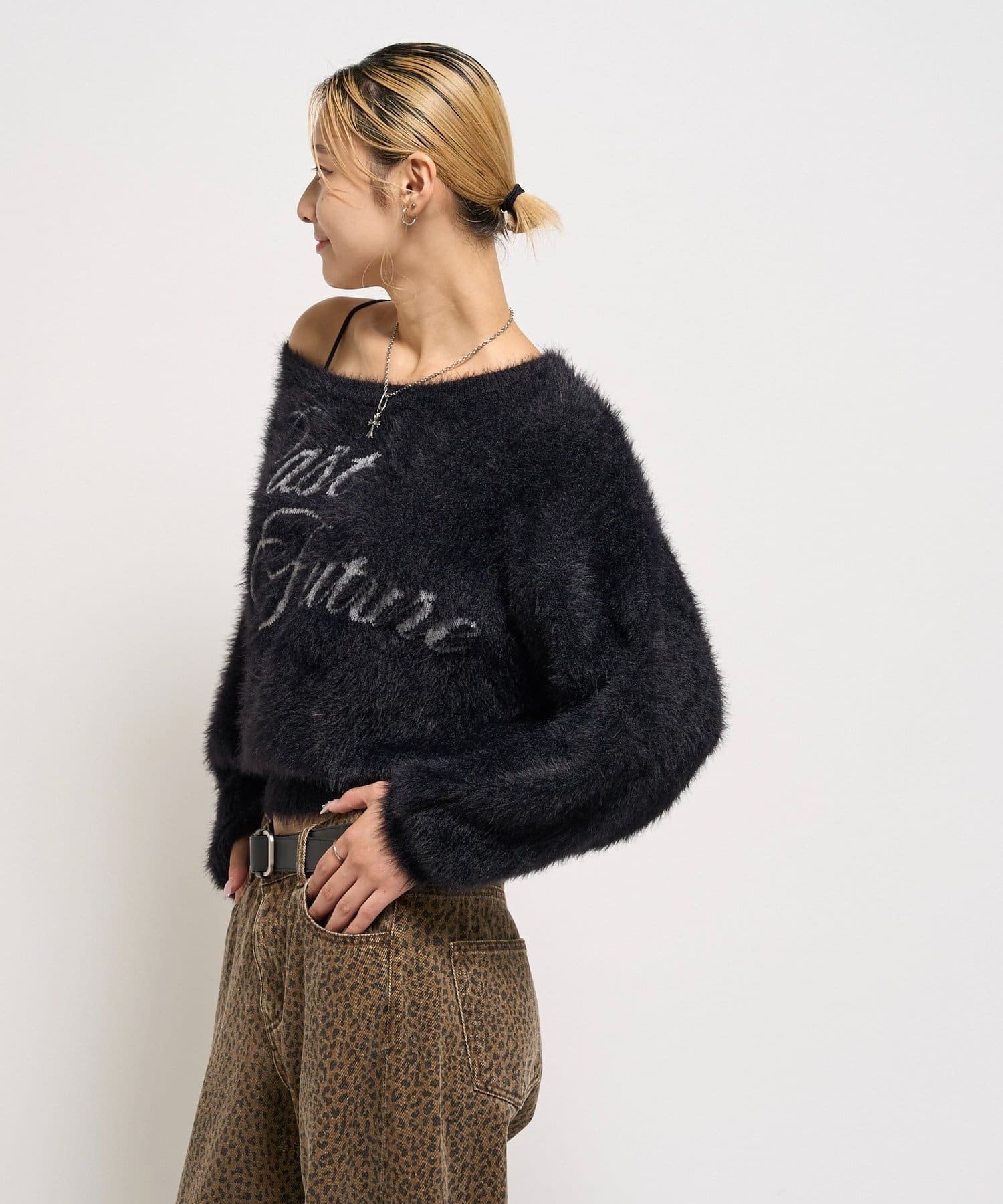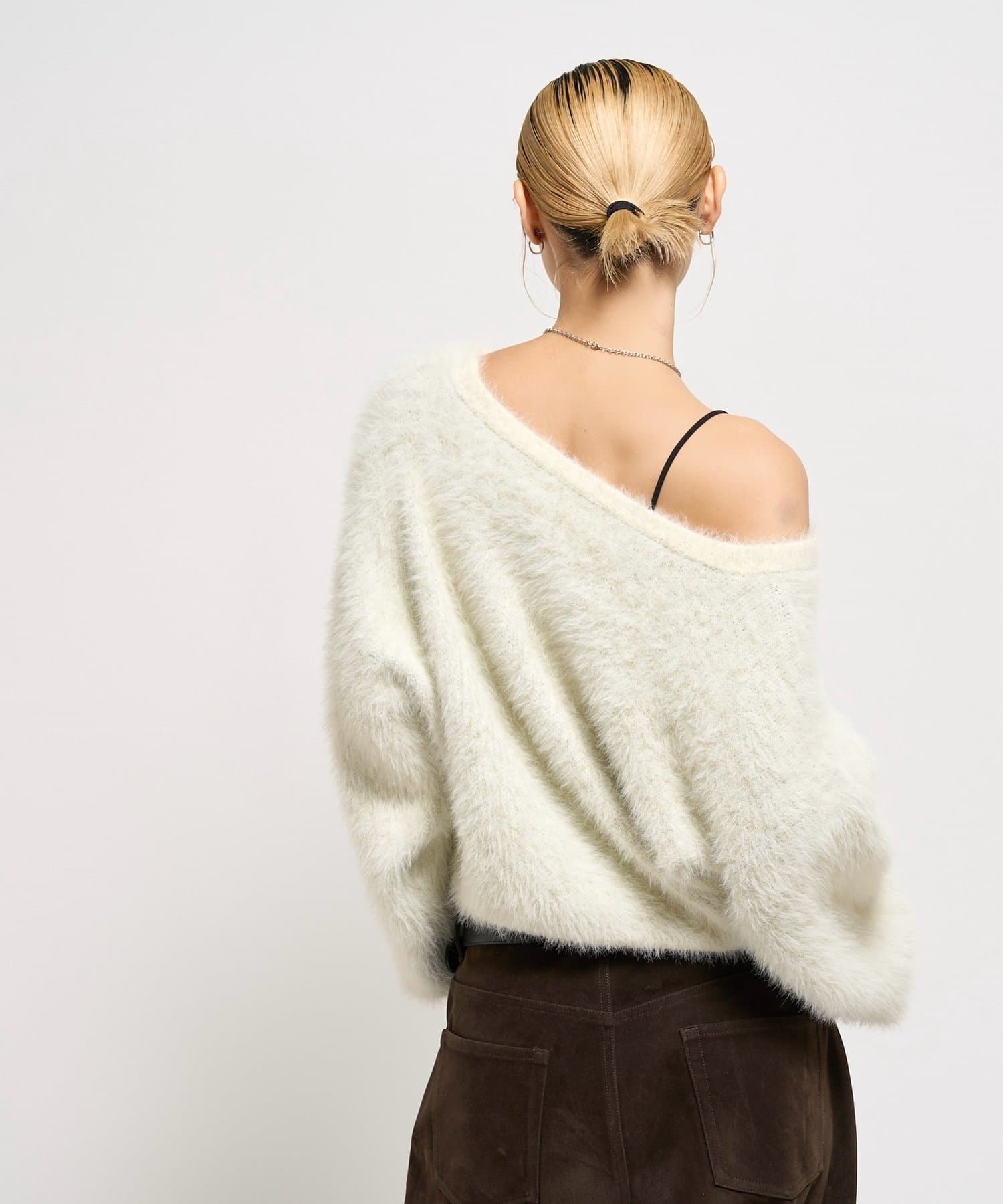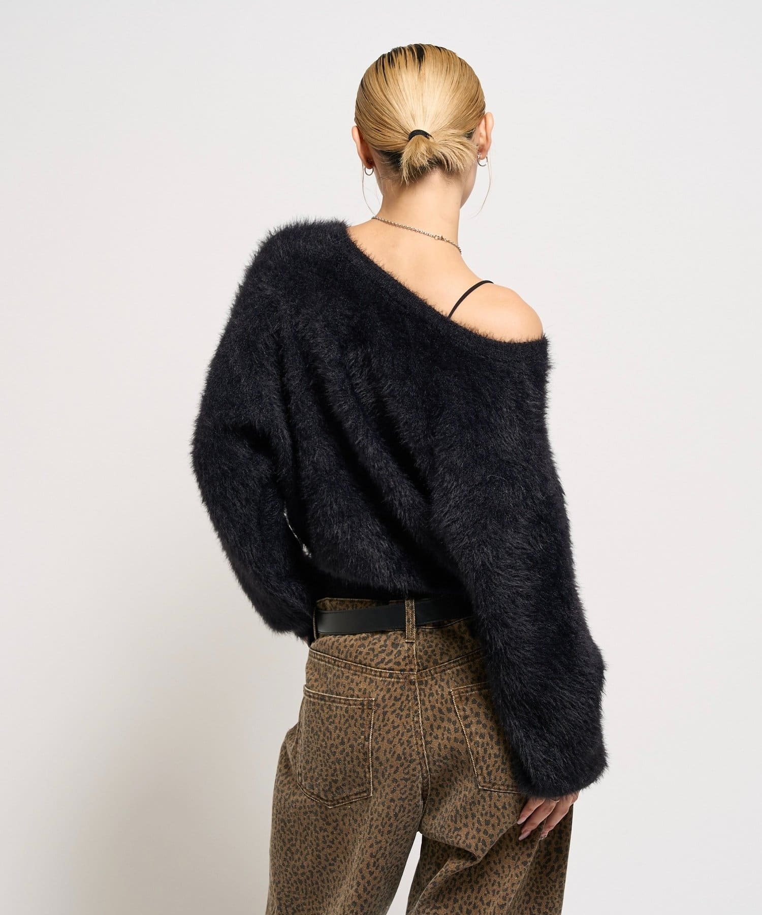 ふわふわシャギーが可愛い!秋冬活躍間違いなしの ロゴオフショルニット。