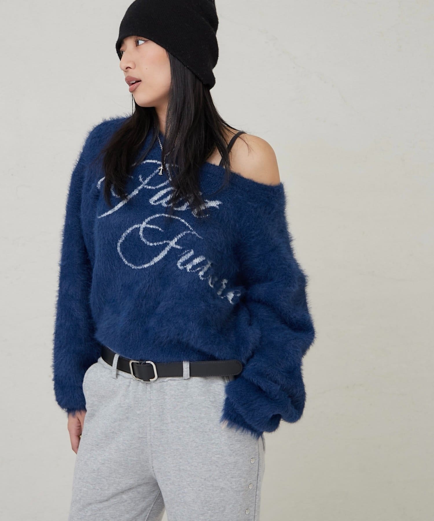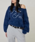 ふわふわシャギーが可愛い!秋冬活躍間違いなしの ロゴオフショルニット。