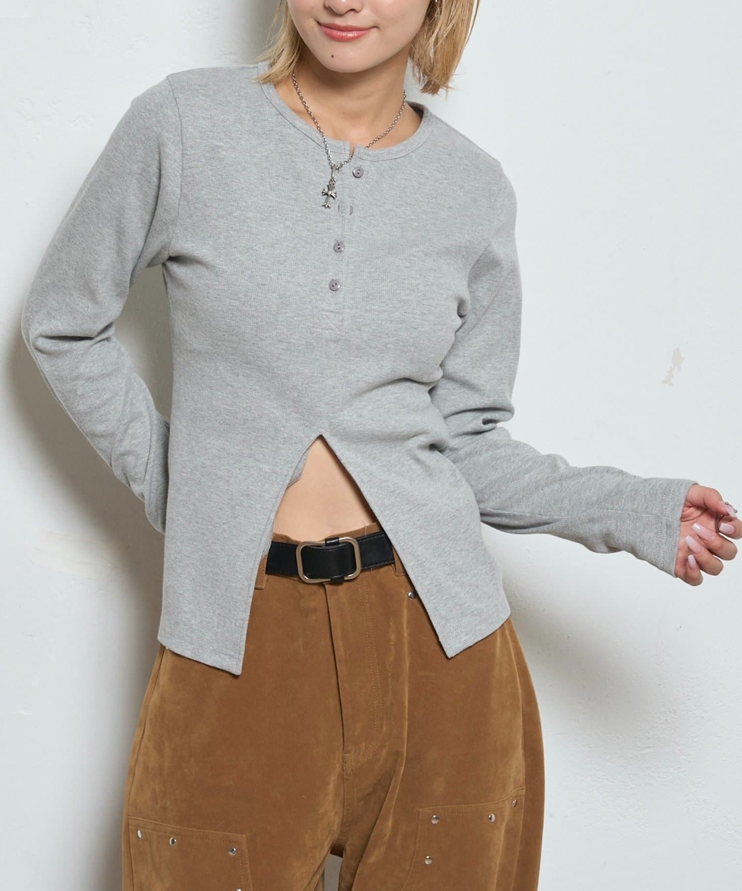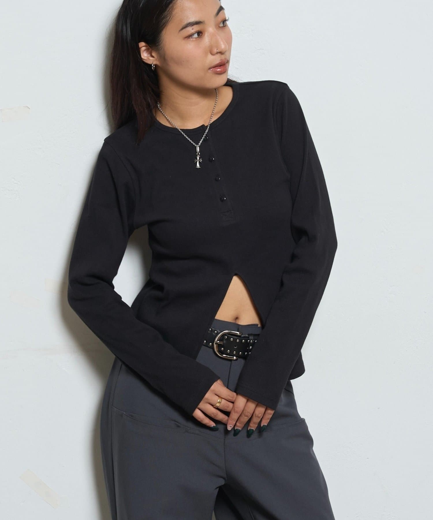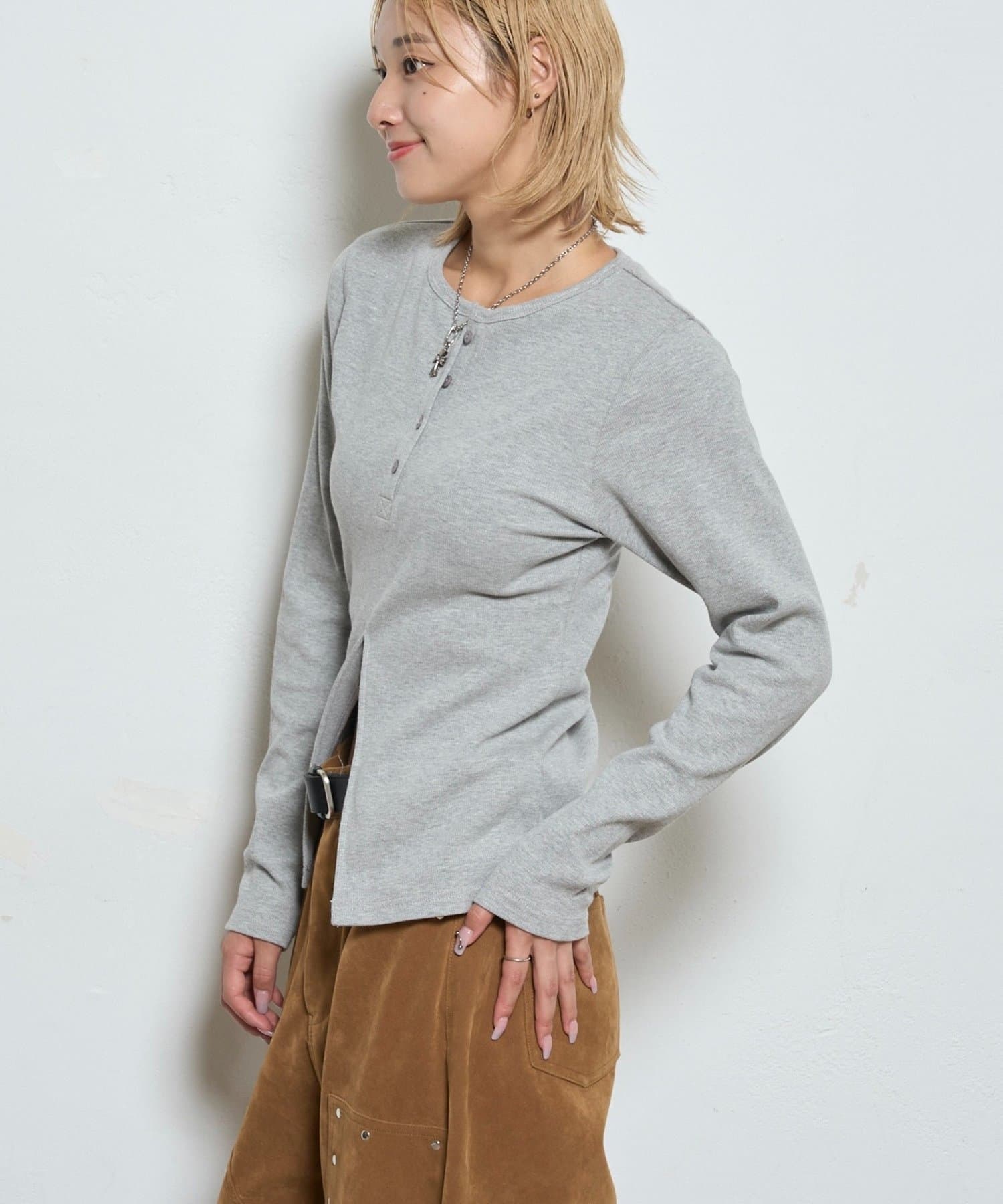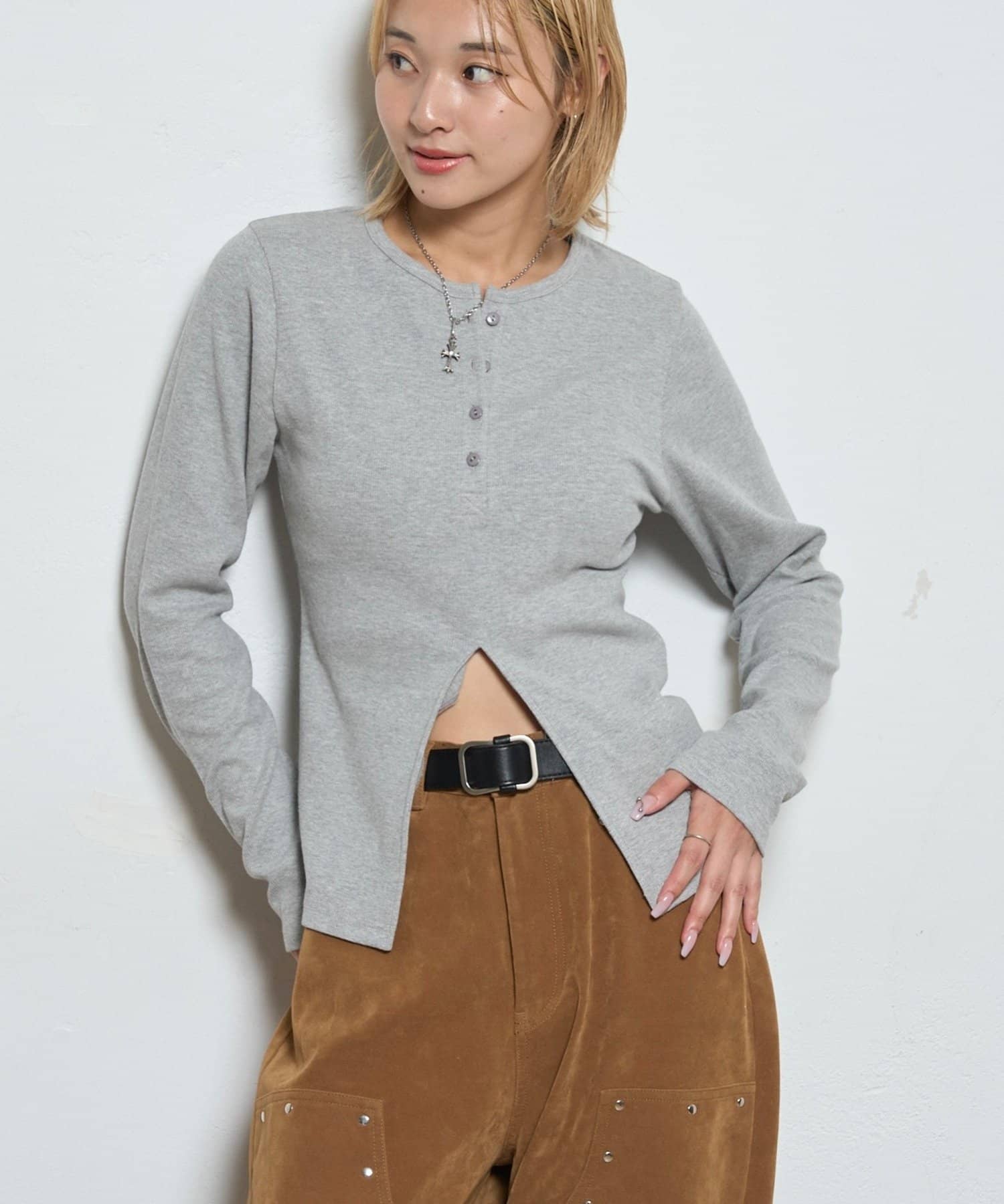 カジュアルながらも女性らしい着こなしが出来るスリットヘンリートップス。