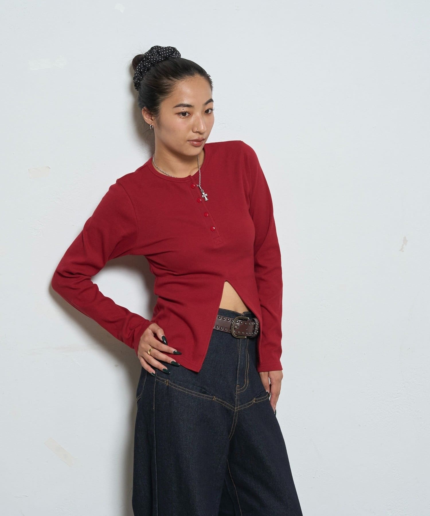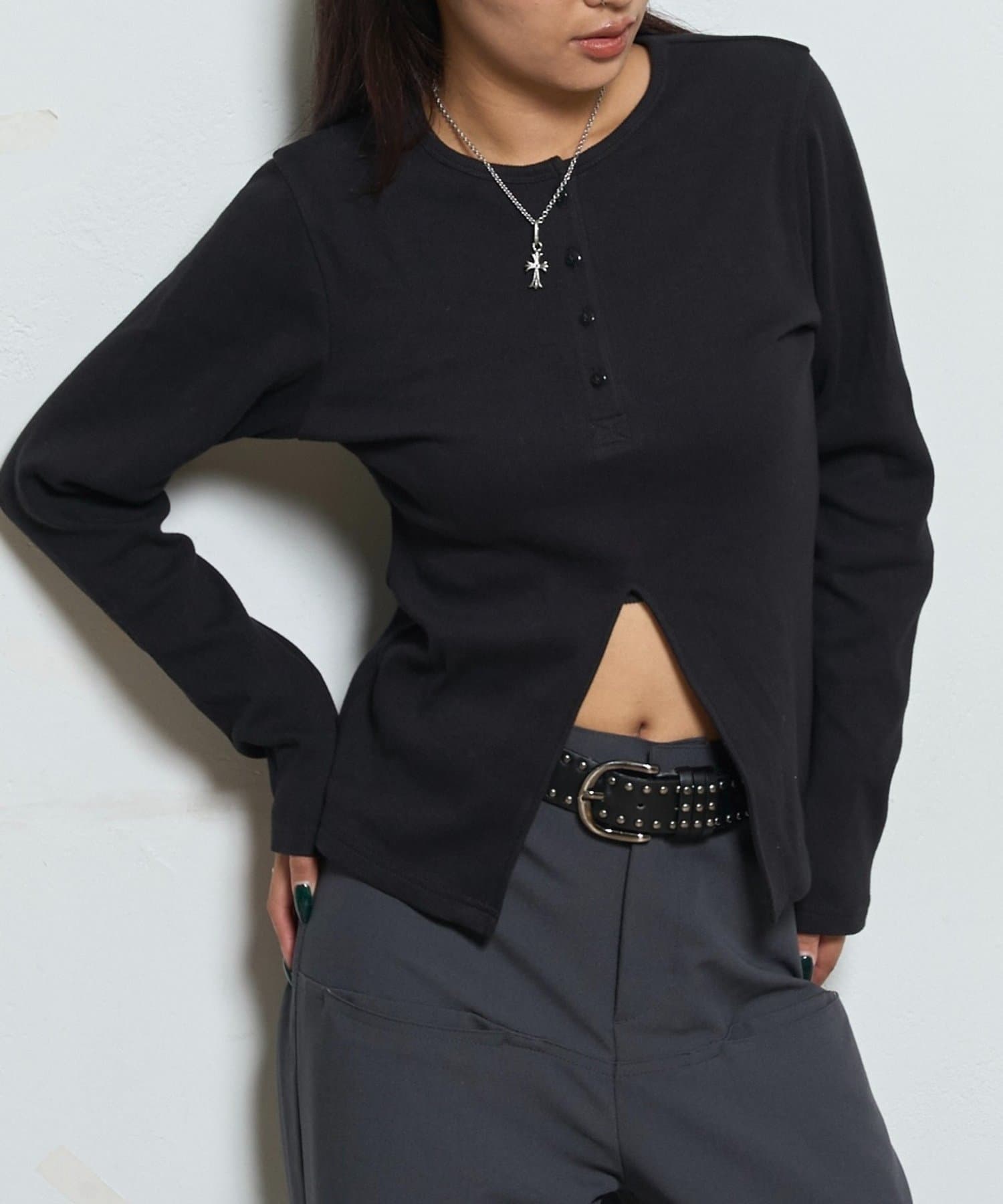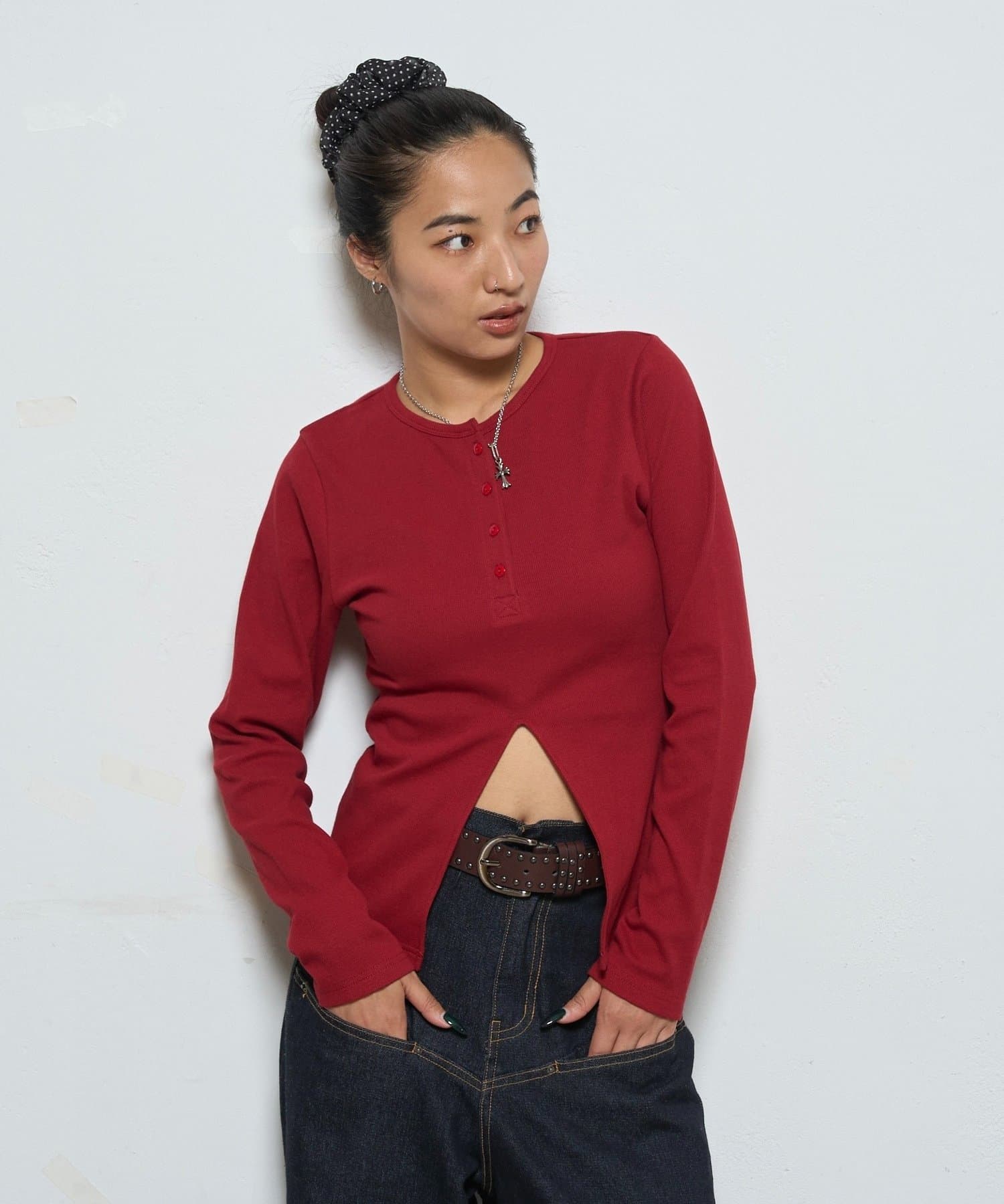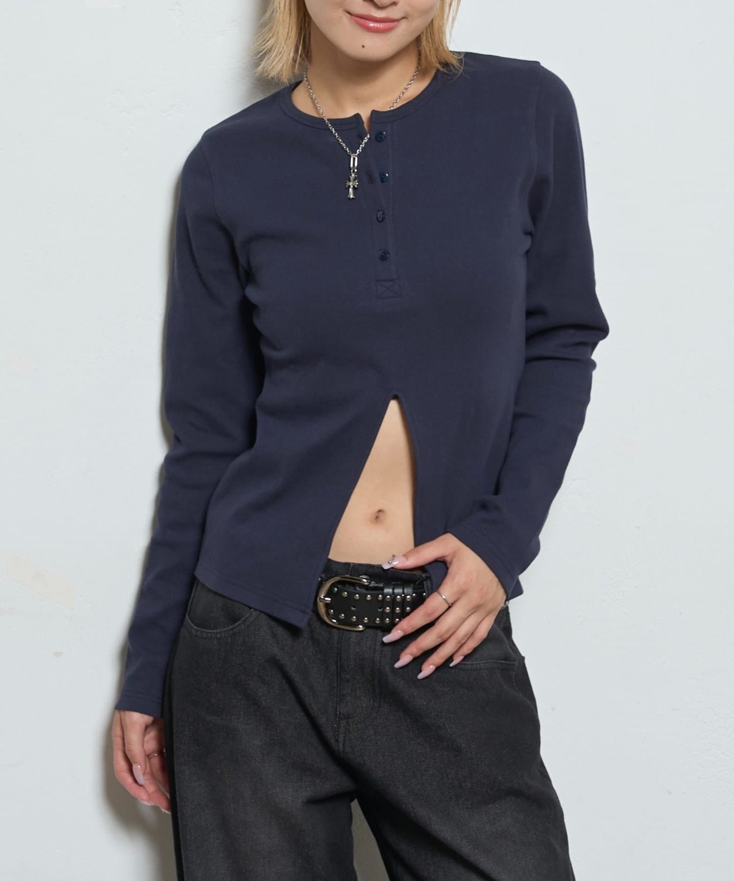 カジュアルながらも女性らしい着こなしが出来るスリットヘンリートップス。