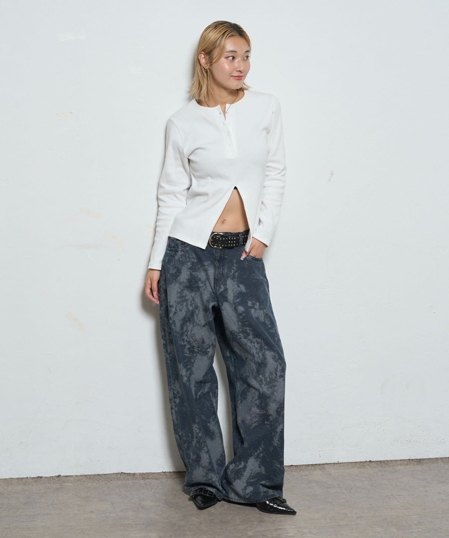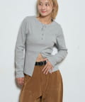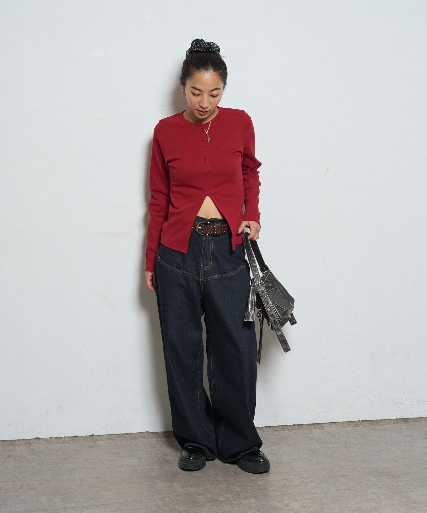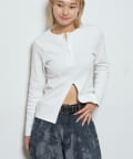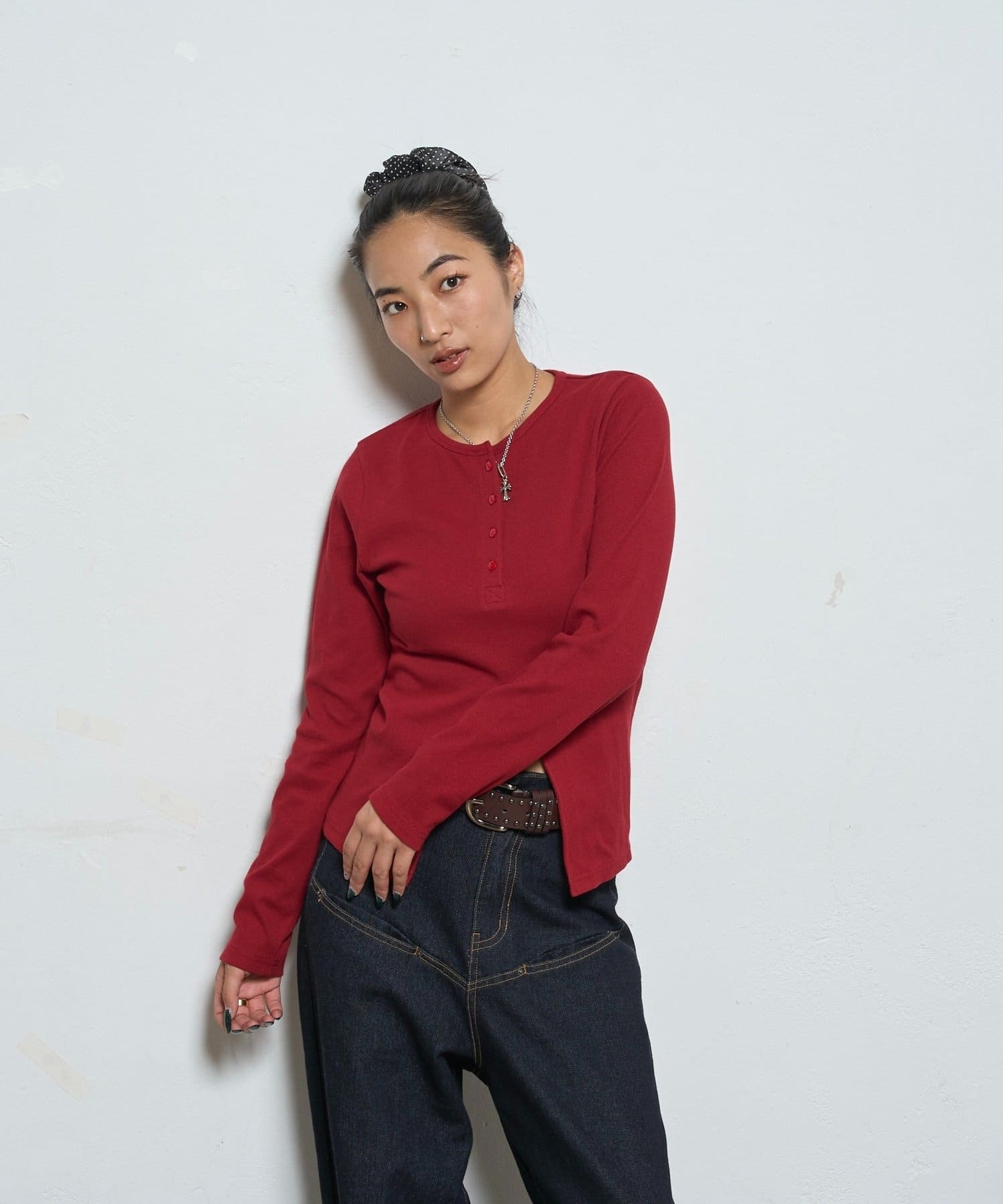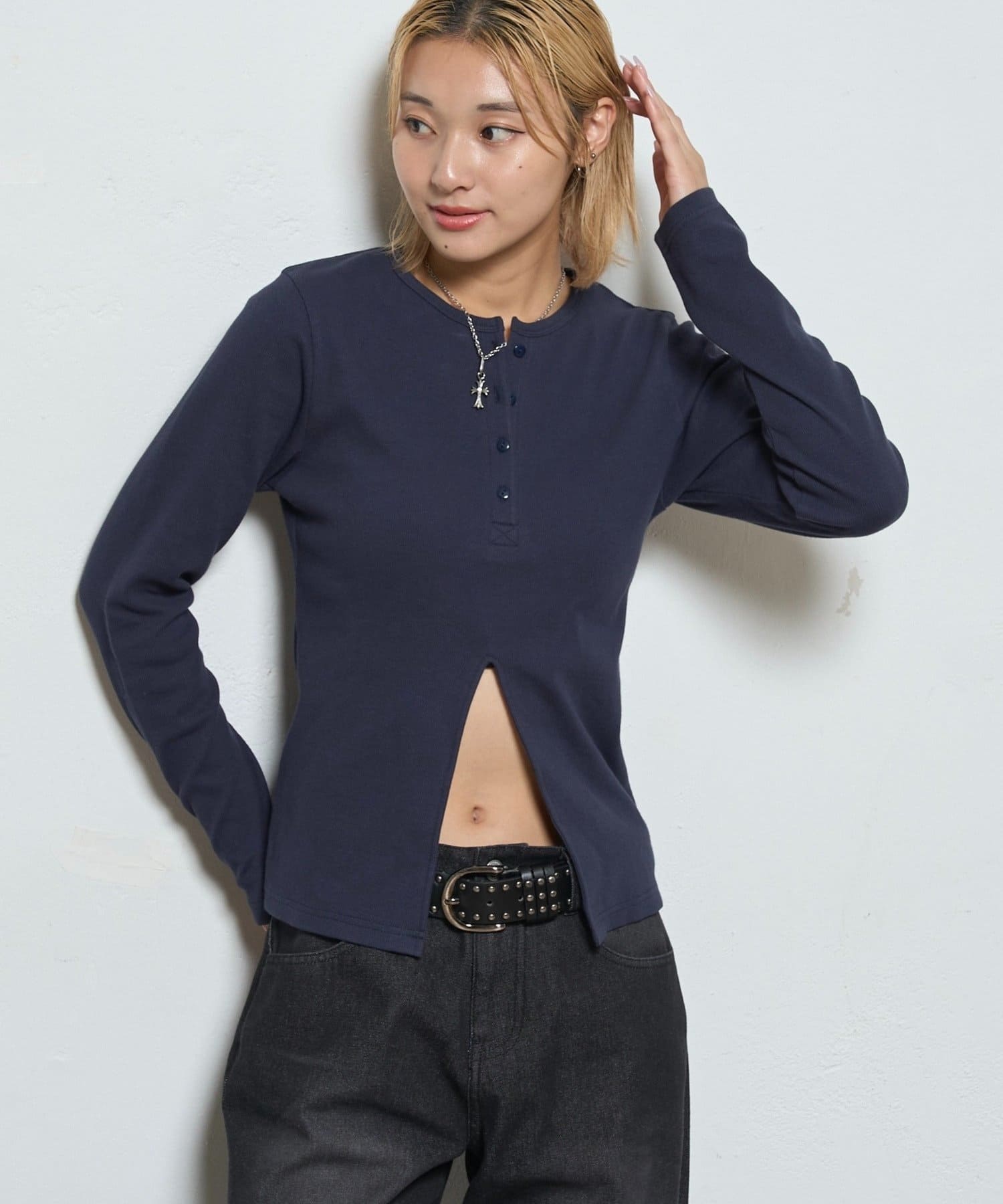 カジュアルながらも女性らしい着こなしが出来るスリットヘンリートップス。