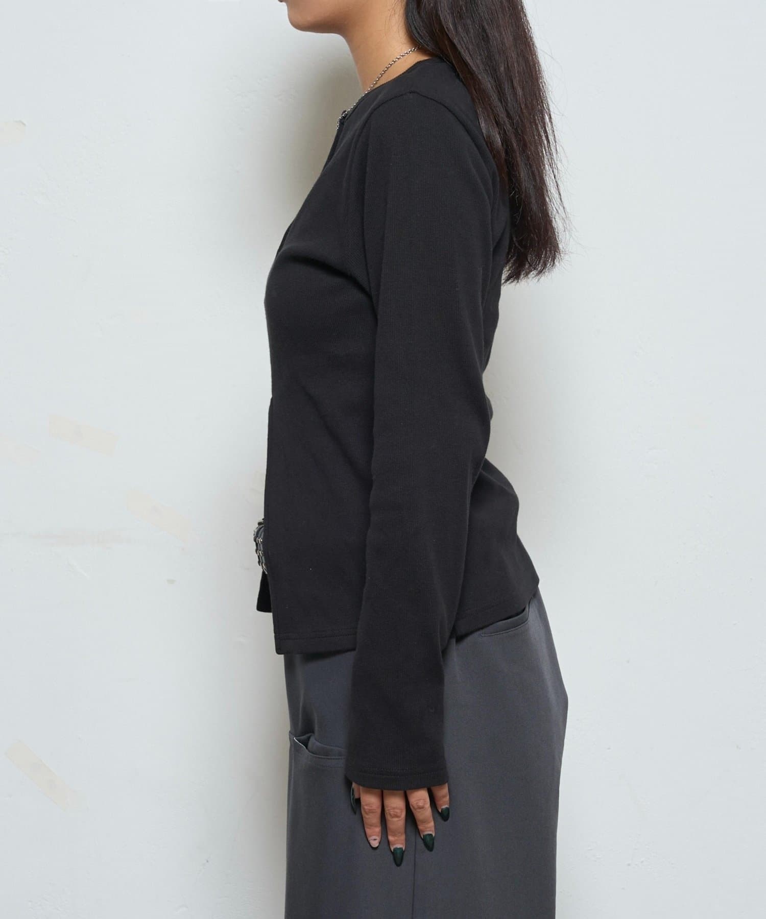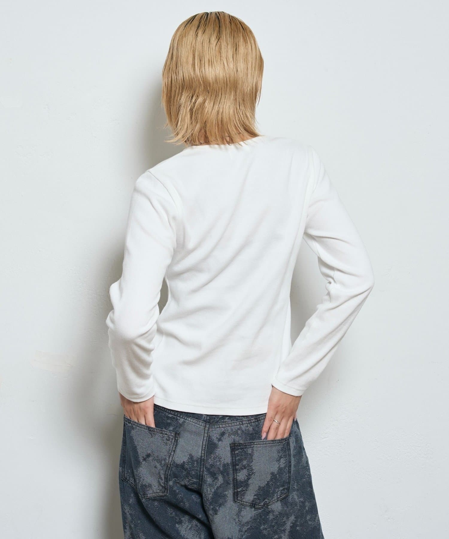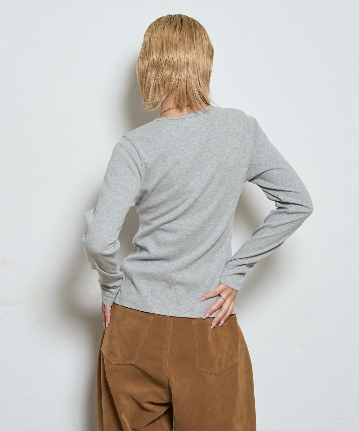 ・胸元のヘンリーネックデザインが、さりげないアクセントをプラス。