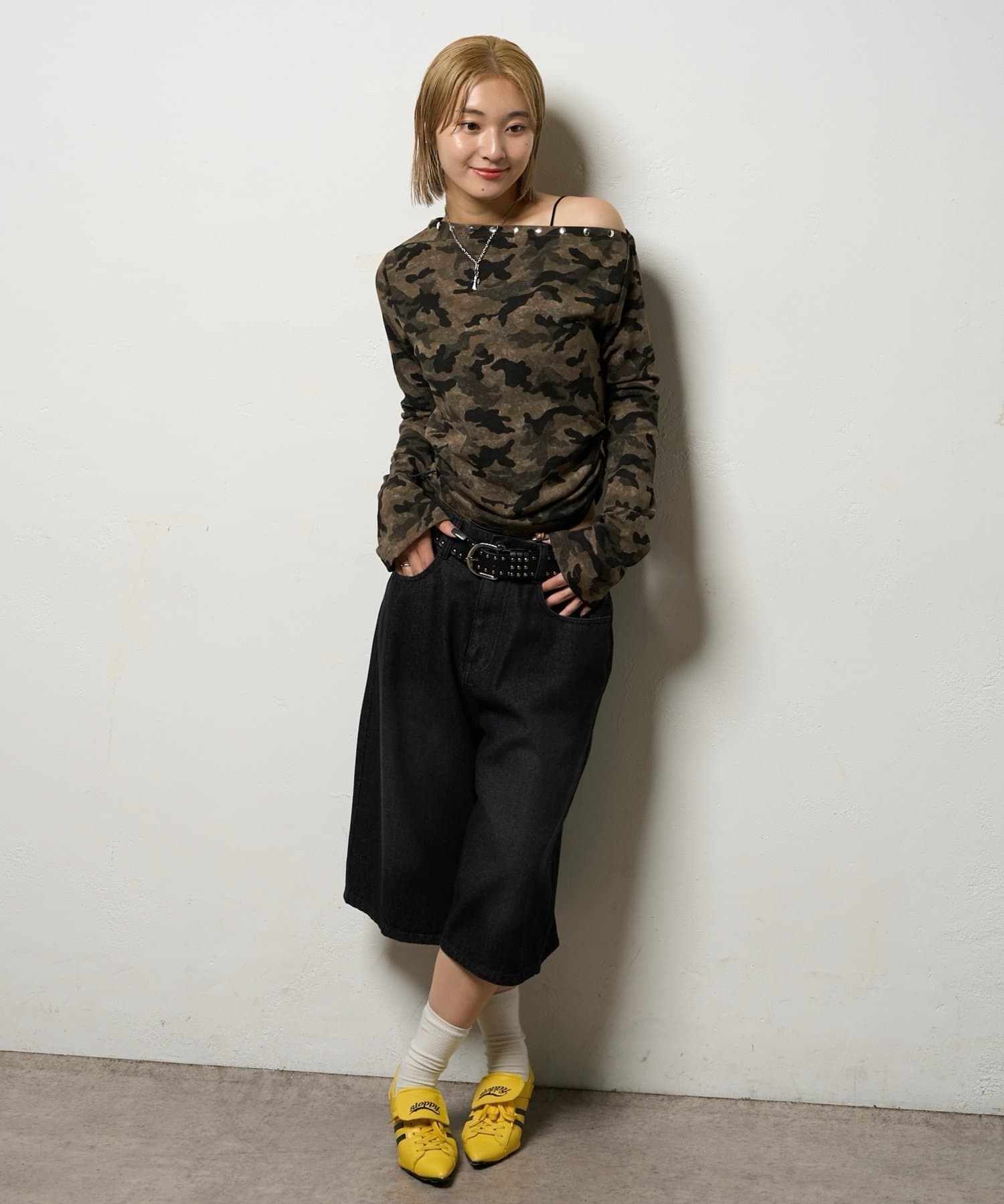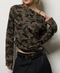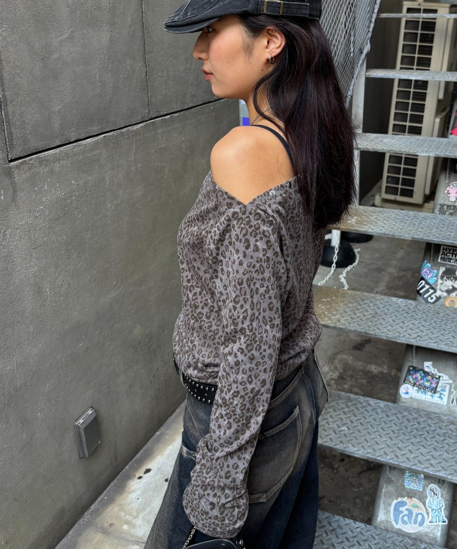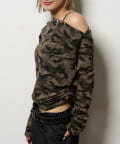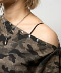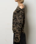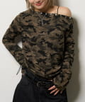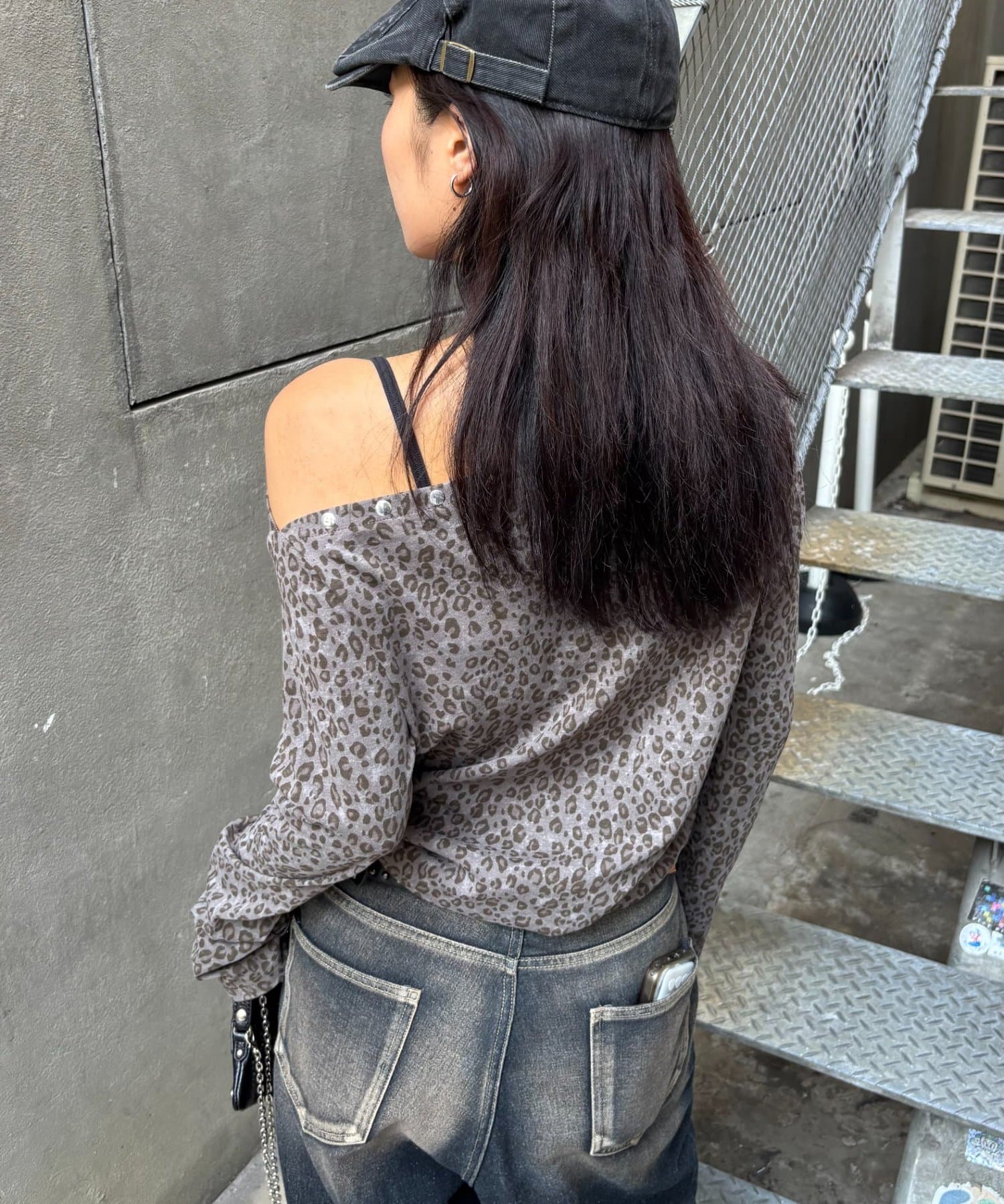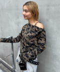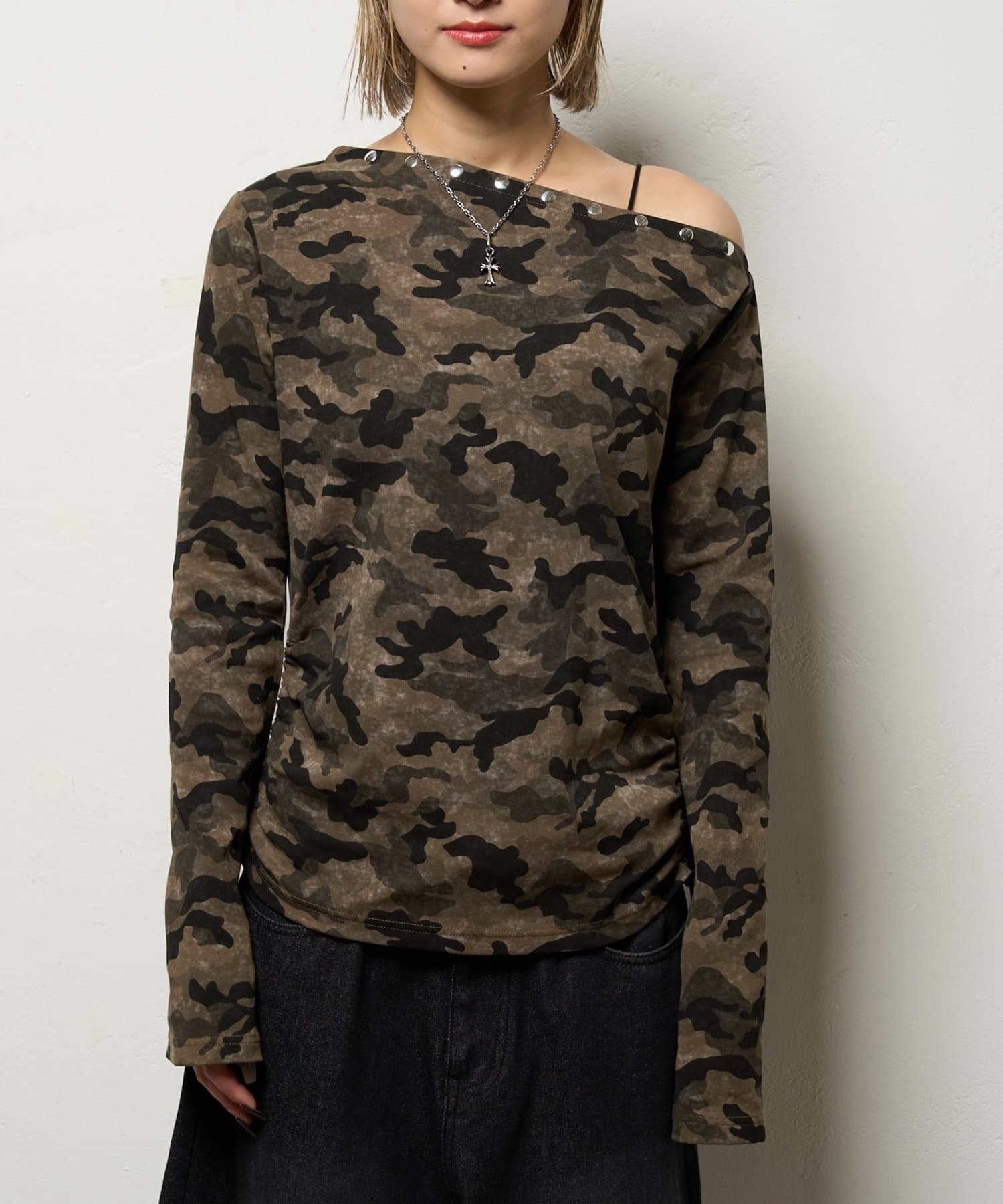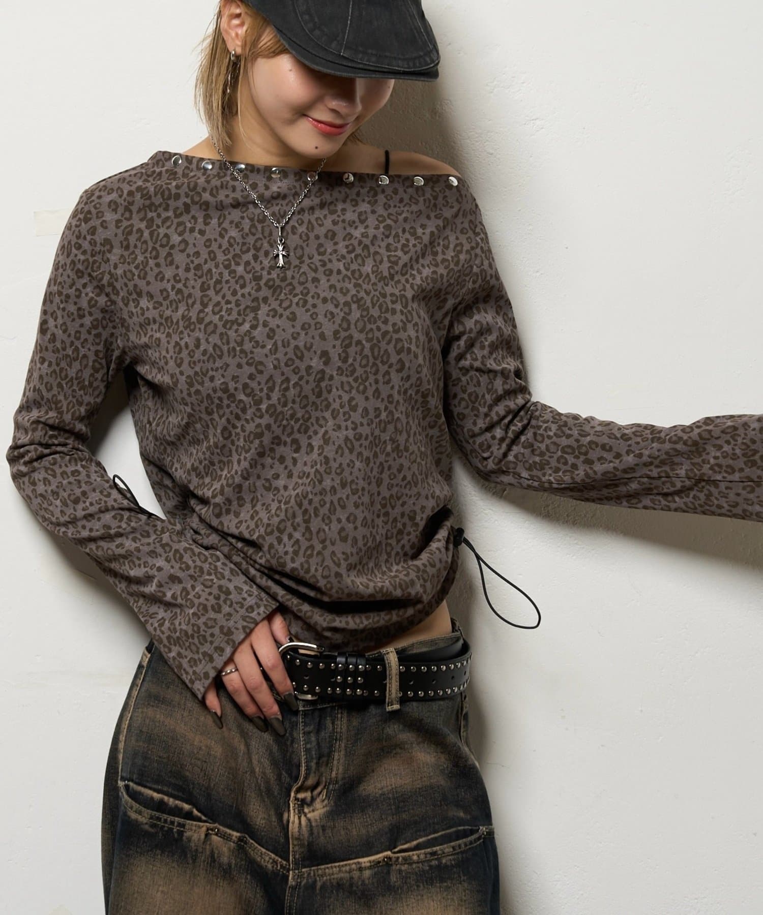 カモ柄(迷彩)、ヒョウ柄(レオパード)とトレンド感満載のスタッズワンショルトップス。