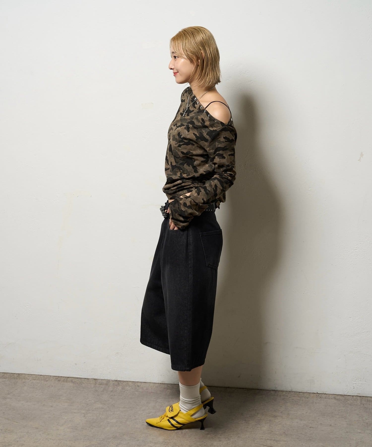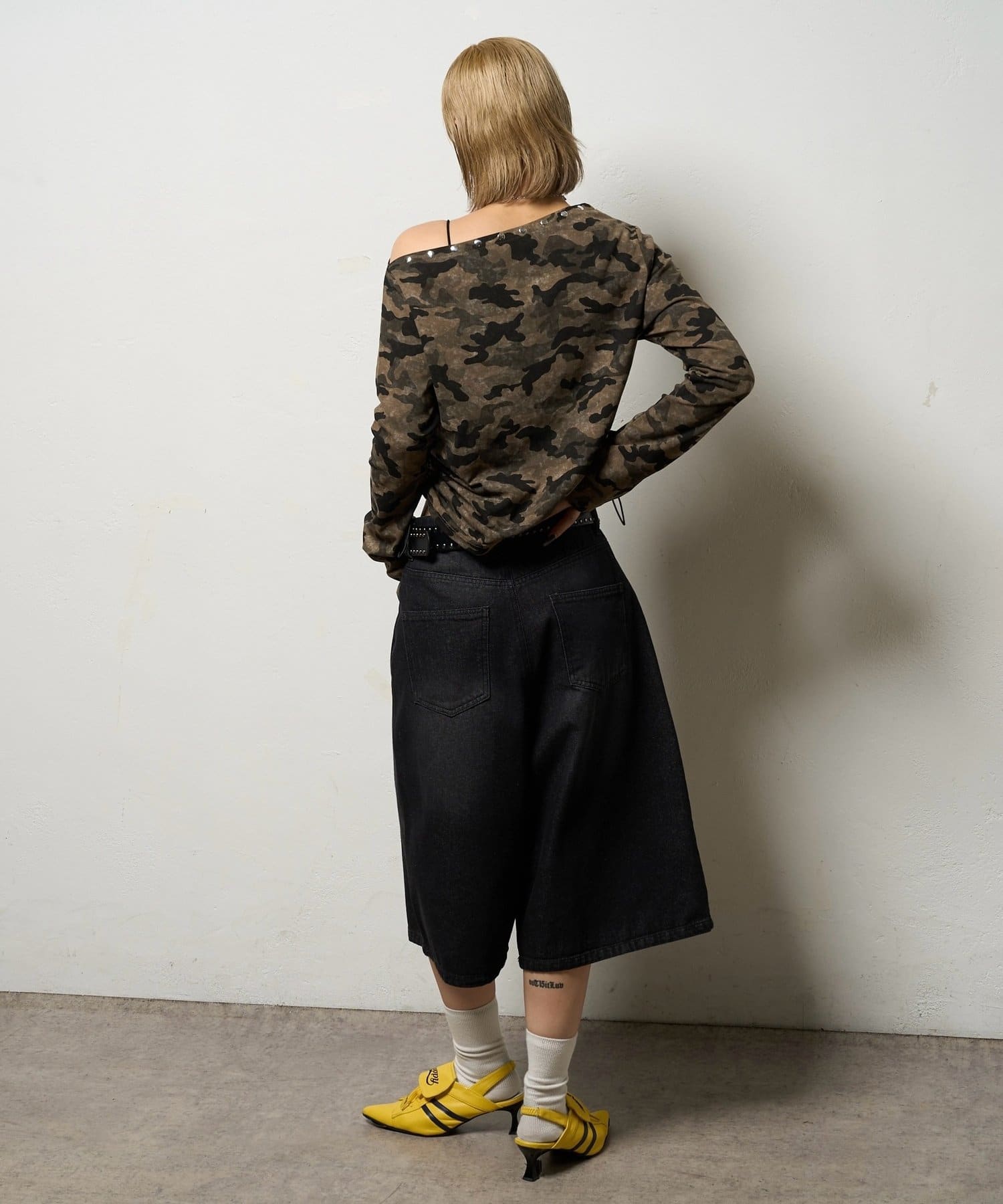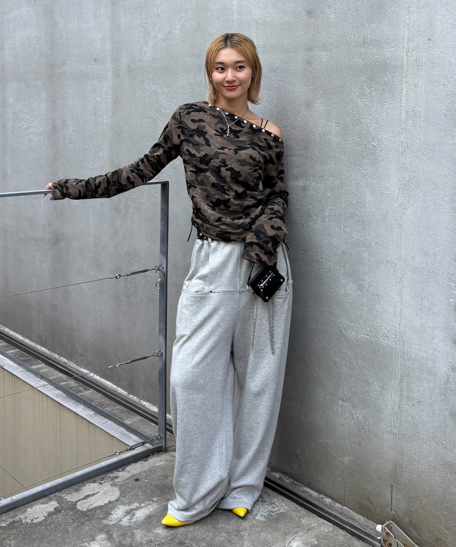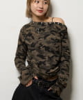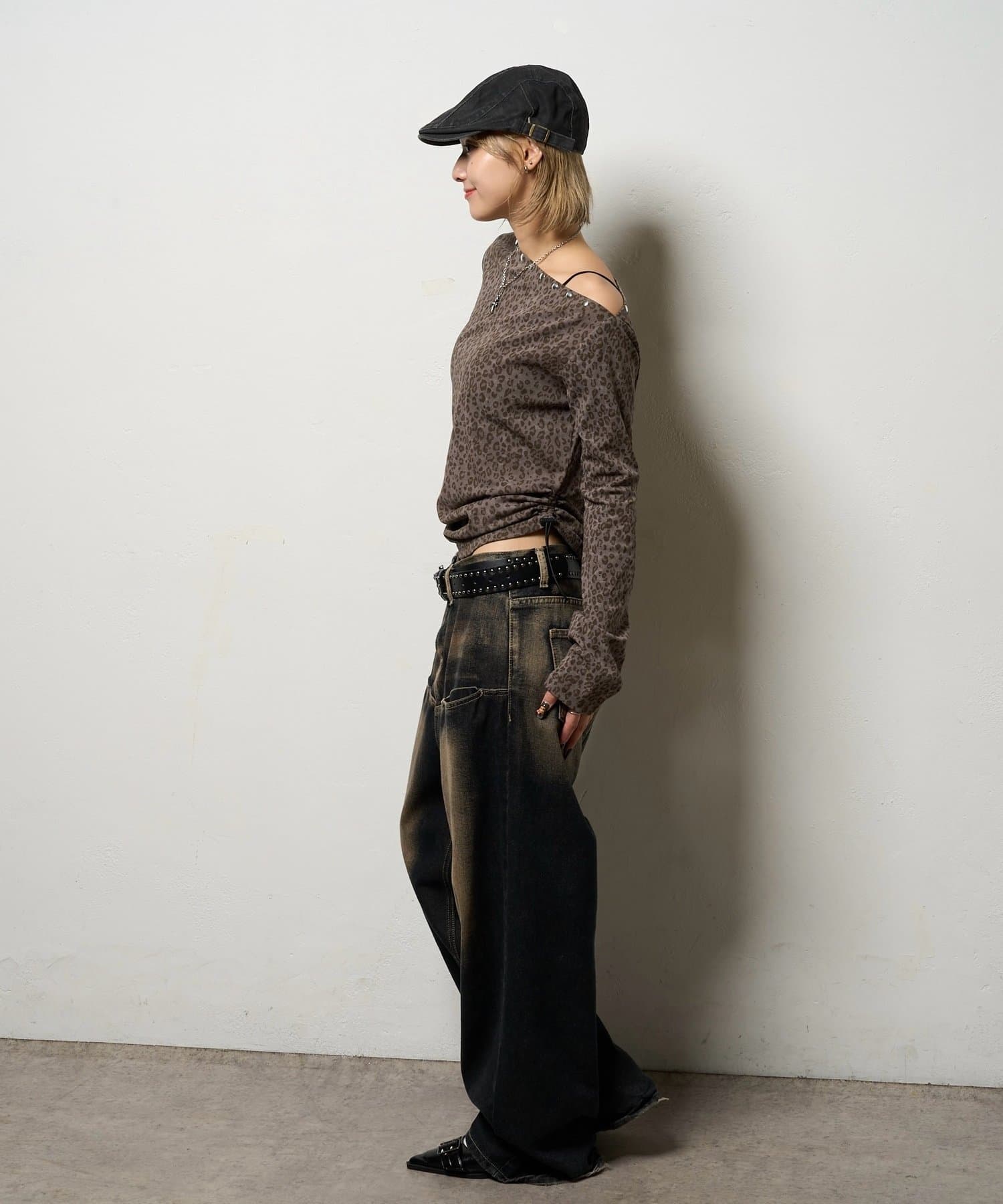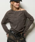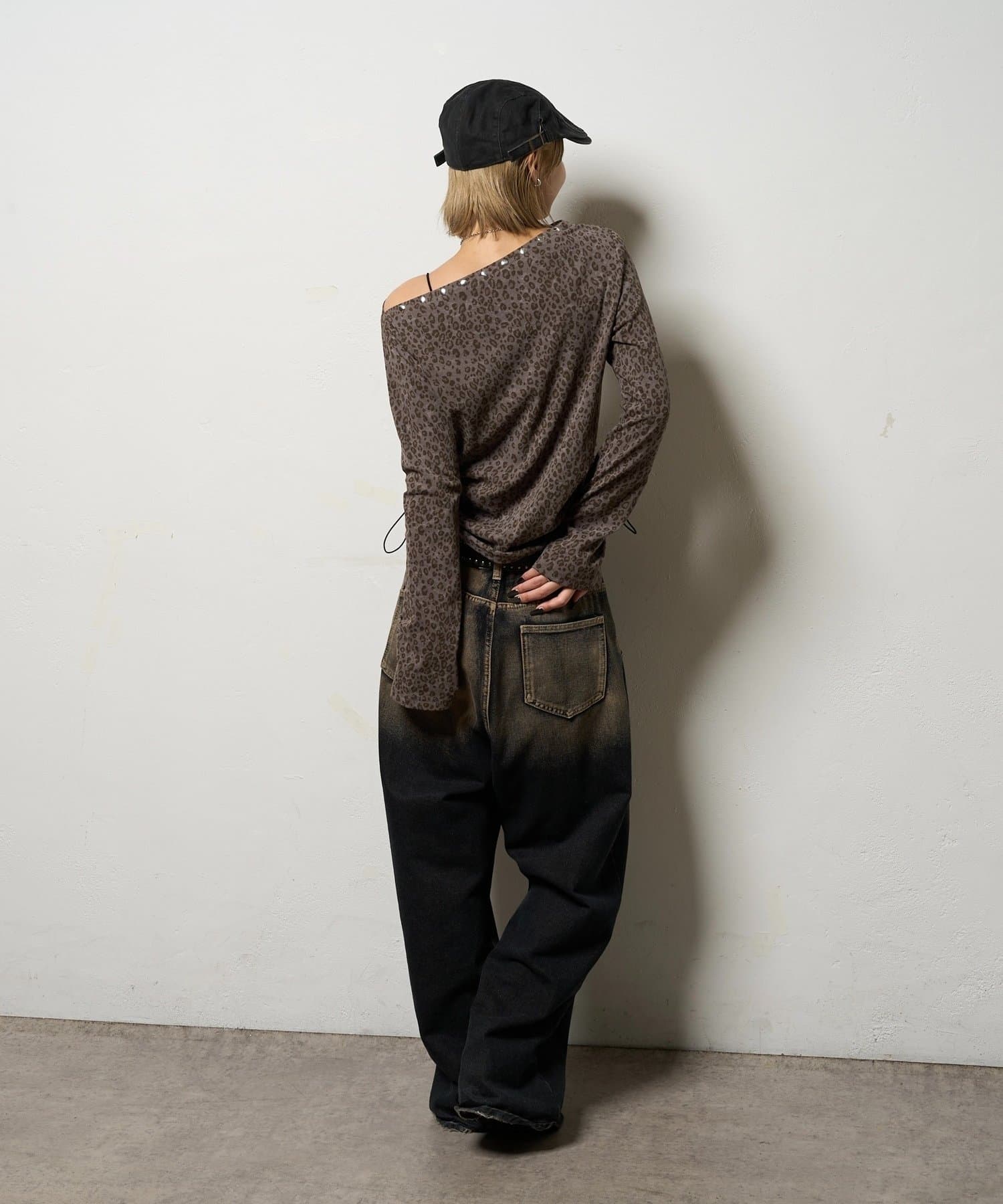 カモ柄(迷彩)、ヒョウ柄(レオパード)とトレンド感満載のスタッズワンショルトップス。