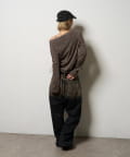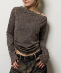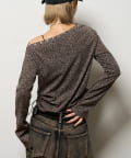 ・首元のスタッズのかっこ良さと、ワンショルダーの女性らしさ両方を兼ね備えたトップス。