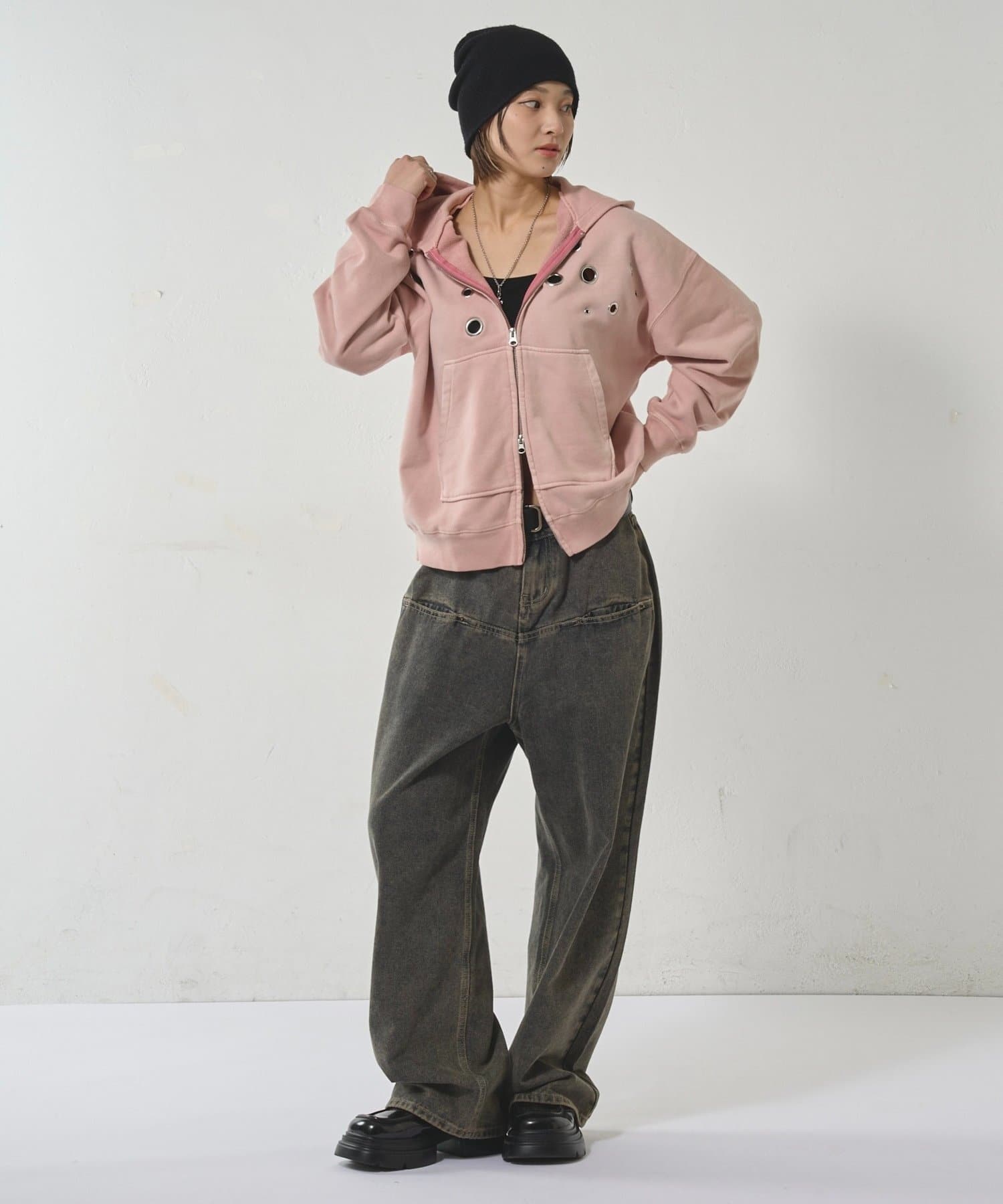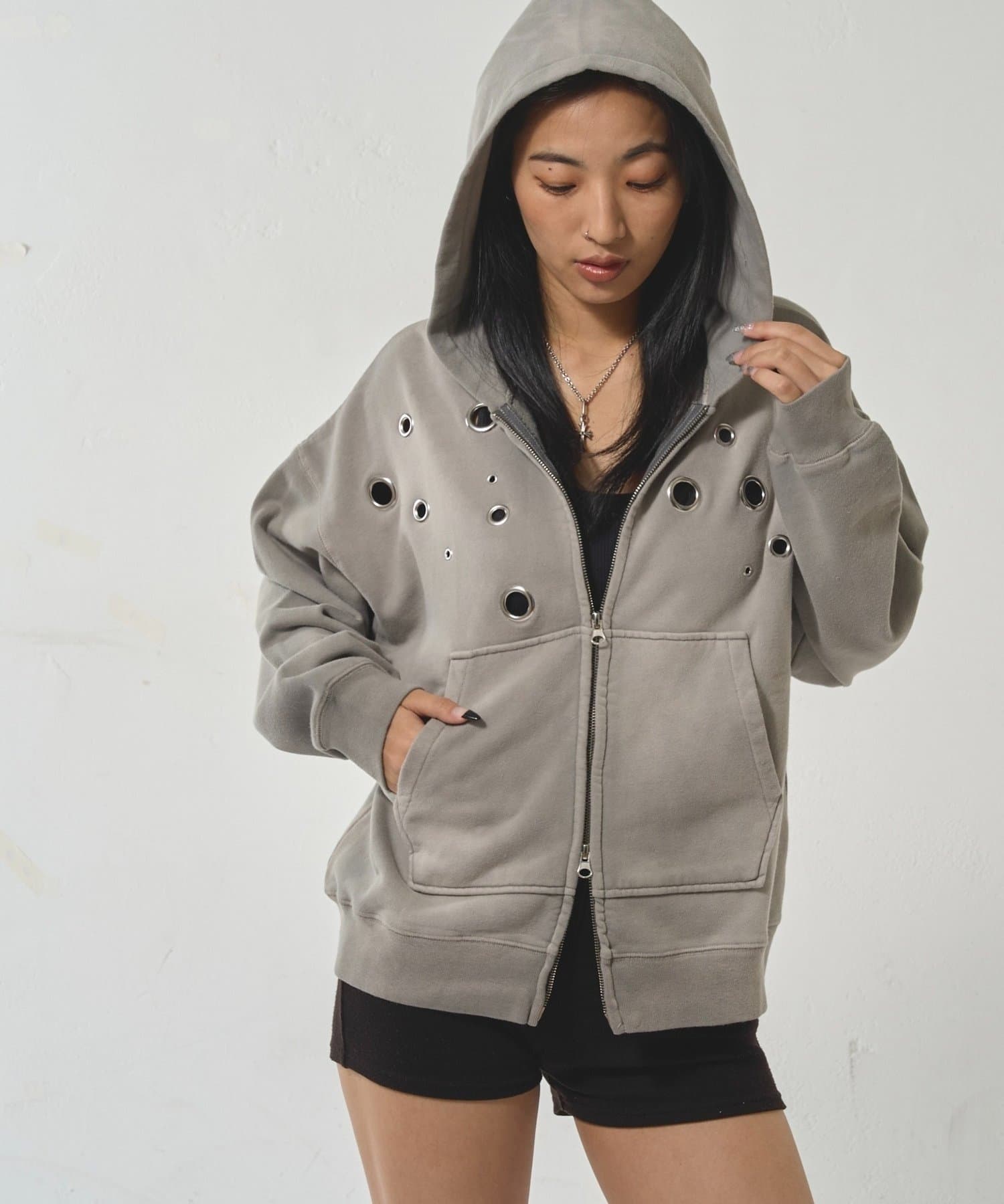 【EYELET ZIP HOODIE/アイレットジップパーカー】
