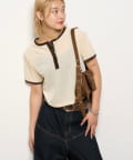 ・首元と袖口のリンガーデザインが、さりげないアクセントになっています。