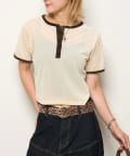 ・ヘンリーネックで、着こなしのアレンジが楽しめる。